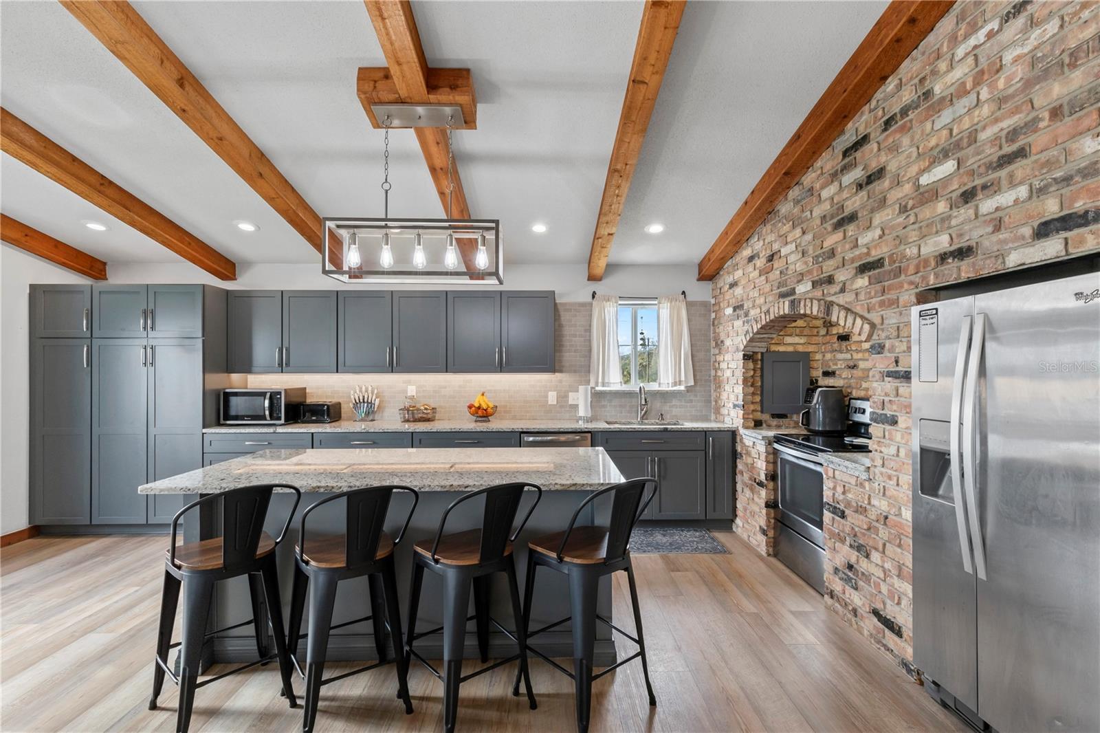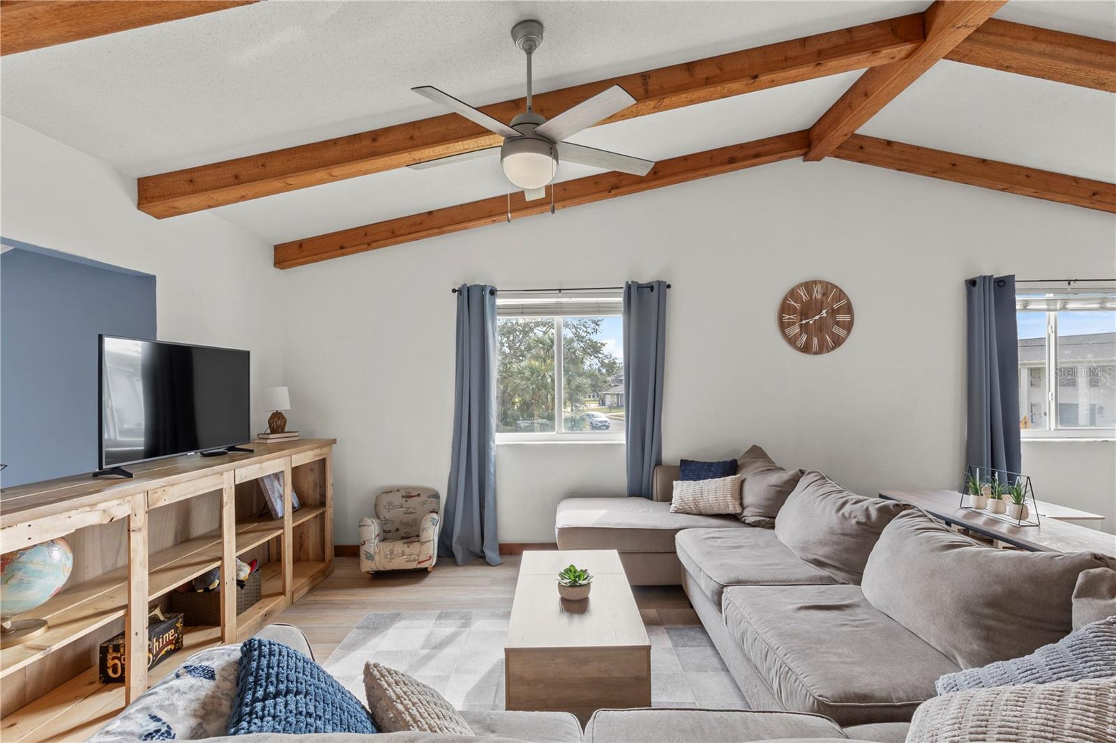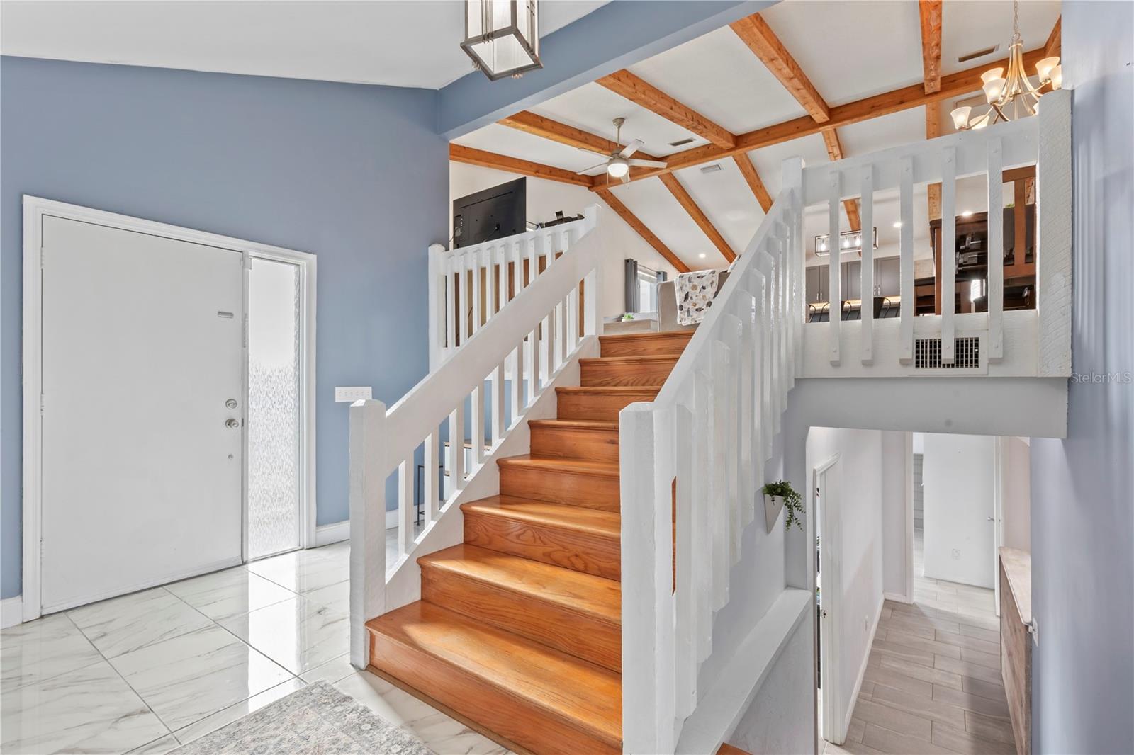 Just a short stroll to the beach, this beautifully updated home offers the perfect blend of modern living and coastal charm. The kitchen was fully remodeled in 2022, featuring sleek finishes and a bright, open design. In 2022 the upstairs A/C was replaced, and the newly installed vinyl siding (2024) enhances curb appeal and durability. Roof is from 2018. Step inside to discover soaring high ceilings with exposed beams, creating a spacious and inviting atmosphere throughout. Relax by the cozy wood-burning fireplace in the bonus area downstairs that is perfect for a game/playroom, mancave, office or extra entertainment area. The oversized garage is perfect for all your storage needs and has its own half bathroom for convenience. Ideally located just a short distance from Ormond's main street, this home offers easy access to all the shops, dining, and local attractions the city has to offer without being in an HOA! Don’t miss this opportunity to live the beachside lifestyle you've been dreaming of!