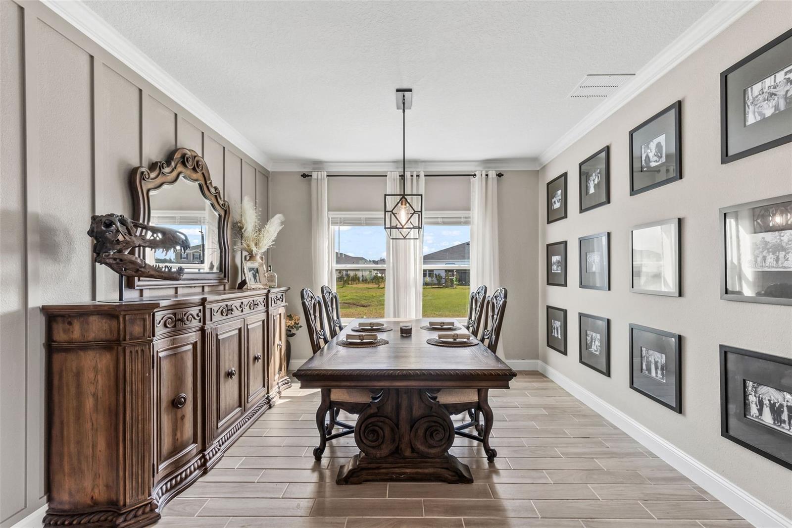 Step into this stunningly beautiful and nearly new Wexford Reserve home built in 2023 by Lennar. This home features comfort and elegance in every corner, beginning with the beautiful wood-look tile flooring throughout the home, striking light fixtures in the dining, kitchen, living and bath areas, and the spectacular wainscoting/custom paneling that is accenting the dining, breakfast area, and living area walls. This four bedroom, three bathroom home features an elevated, expanded kitchen that is huge, with a large island, solid surface counters, double ovens, stainless appliances, tons of cabinet space, an amazing subway tile backsplash, and a gorgeous sink - all perfect for entertaining guests or just for staying close to home and cooking the family dinner. This home offers a spacious primary bedroom retreat, with a large, walk-in, tiled shower, and an enormous walk-in closet. This neighborhood is excellent, with mutiple lakes throughout and plenty of green spaces. This home has a screened back porch overlooking a peaceful lake, and you will have no neighbors behind you or beside you on one side of the home, allowing for extra privacy. Add to this a three-car garage with a workshop area and you have the perfect family home in a quiet neighborhood close to the conveniences of both Flagler Beach and Ormond. You are just five minutes to Publix, restaurants, gas stations, banks and I-95 . All information taken from the tax record, and while deemed reliable, cannot be guaranteed.