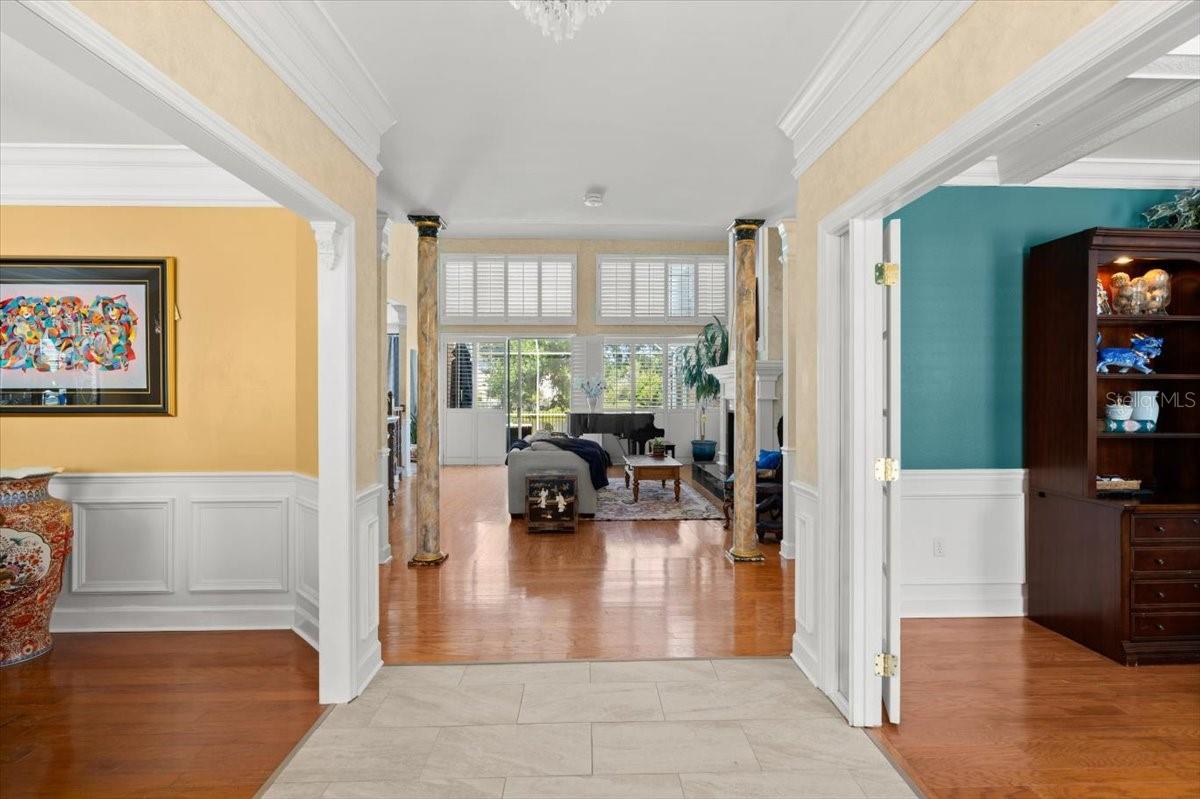 Timeless Elegance Meets Modern Comfort in Hunters Ridge. Welcome to this exquisite 5-bedroom, 4.5-bathroom estate home nestled in the heart of the desirable Hunters Ridge community. Boasting over 4,100 square feet of refined living space, this traditional beauty offers a perfect blend of classic design and thoughtful functionality. Step inside and be greeted by soaring 18-foot ceilings and a dramatic wood-burning fireplace that anchors the expansive family room—a true showstopper for cozy nights or entertaining guests. The dedicated office, complete with custom built-ins, provides the ideal space for remote work or creative pursuits. A formal dining room adds elegance for dinner parties and holidays, while the home’s layout offers both openness and privacy in all the right places. The spacious first-floor primary suite is a true retreat, offering privacy, comfort, and room to unwind. Upstairs, you’ll find generous bedrooms, 2 that share a Jack and Jill bathroom and the other with its own private bathroom. Designed for entertaining, the indoor spaces flow seamlessly to a sparkling pool overlooking a tranquil water view, where ducks, herons, and the occasional deer add a touch of nature’s charm to your everyday. Enjoy peaceful mornings with birdsong and evenings lit by Florida sunsets. The oversized driveway easily accommodates multiple vehicles, perfect for gatherings or visiting guests. And speaking of guests—the detached mother-in-law suite/guest apartment above the garage offers privacy, its own entrance, and endless possibilities for multigenerational living, a home business, or short-term visitors. Set in a quiet, friendly neighborhood where neighbors still wave hello and the sense of community is alive and well, this home is centrally located for convenience without sacrificing serenity. Don’t miss your chance to own one of the most impressive homes in Hunters Ridge—where comfort, space, and nature meet in perfect harmony. All information taken from the tax record, and while deemed reliable, cannot be guaranteed.