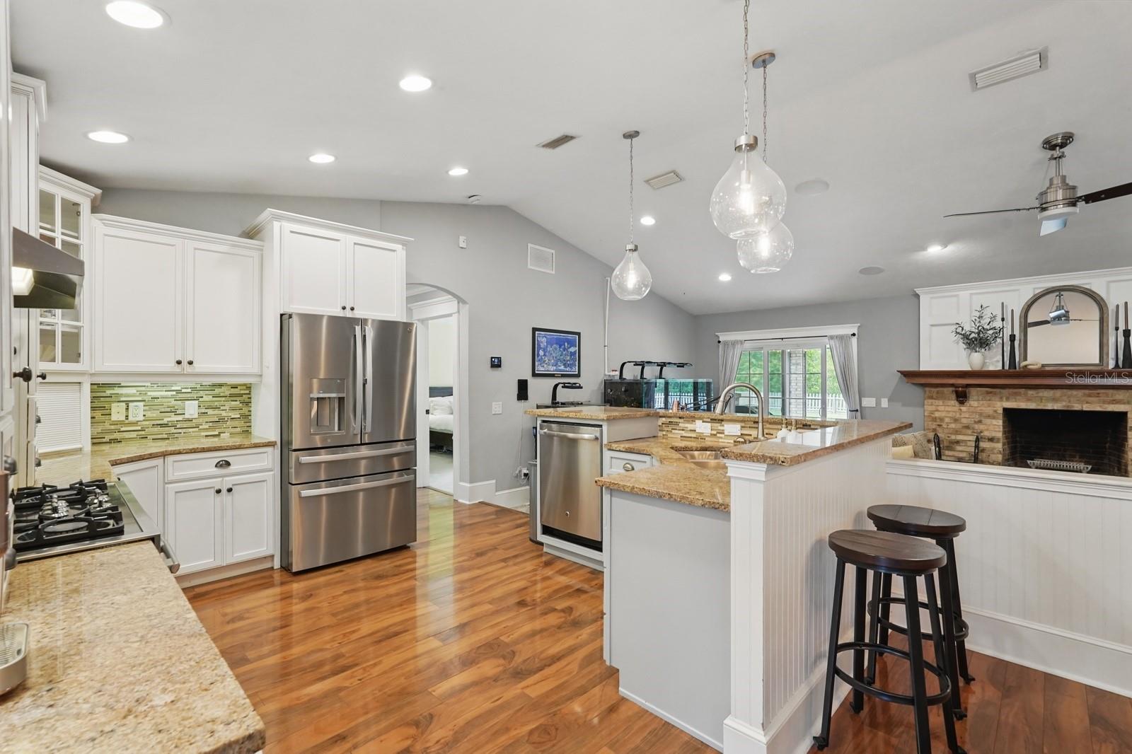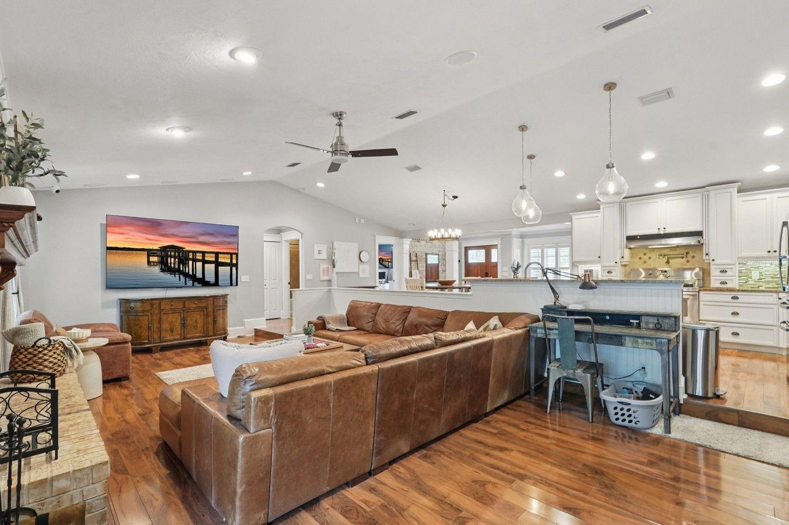 Welcome to your private oasis in the highly sought-after Riverbend Acres—where luxury, comfort, and convenience meet on 1.47 acres of beautifully maintained land. This beautifully updated 3-bedroom, 3-bath home also features a dedicated flex room currently used as a home office, complete with custom cabinetry and a built-in Murphy bed—ideal for remote work or accommodating guests. Inside, you’ll find an open floor plan with a gourmet kitchen featuring double ovens, a pot filler, raised dishwasher, and a walk-in pantry and dedicated laundry room. The spacious primary suite is a true retreat, offering its own gas fireplace, dual vanities, and oversized his and hers walk-in closets. Elevated with thoughtful improvements throughout, this home includes a new roof, remodeled bathroom, blown-in insulation, screened-in porch, epoxy garage flooring, and a high-efficiency inverter A/C system. It’s also equipped with a Generac generator, Control4 Smart Home system, custom trim lighting, surround sound, and Low-E windows. Step outside to enjoy expansive front and back porches, beautiful landscaping, and room to add a pool. A custom mailbox, pole barn with electric and lighting, and a detached outbuilding with a 12x12 air-conditioned finished office/workshop or perfect man cave round out this exceptional property. With every detail expertly curated, this home delivers elevated living in one of the most sought-after neighborhoods. Your dream home is waiting.