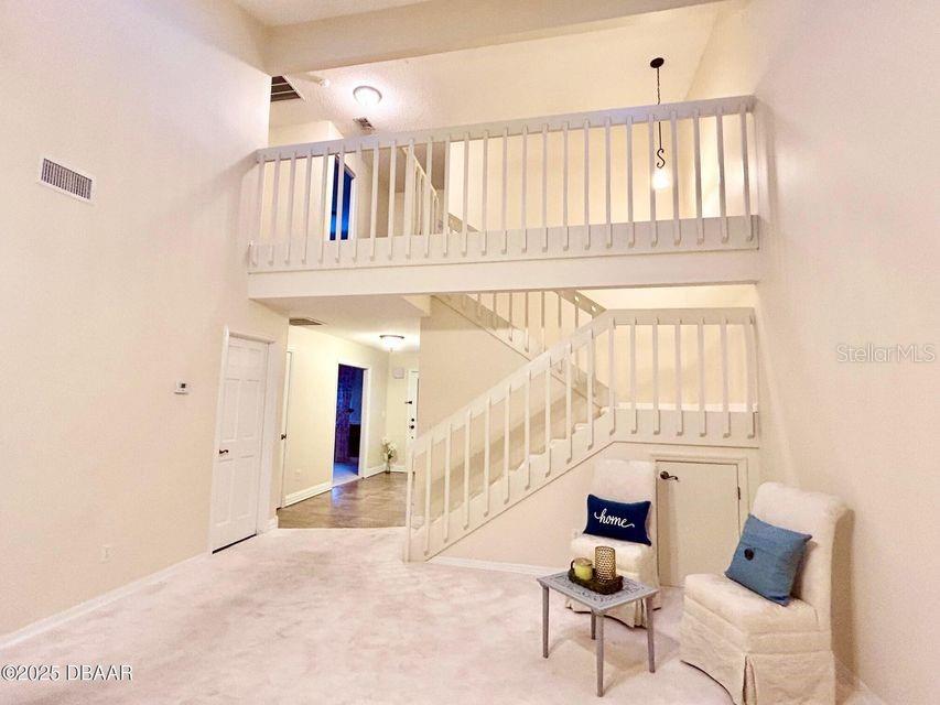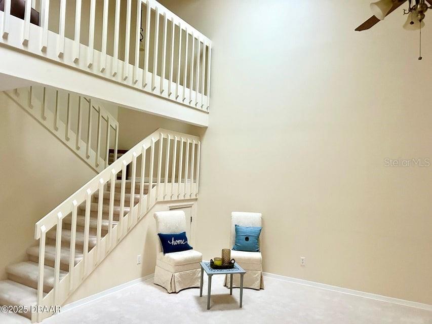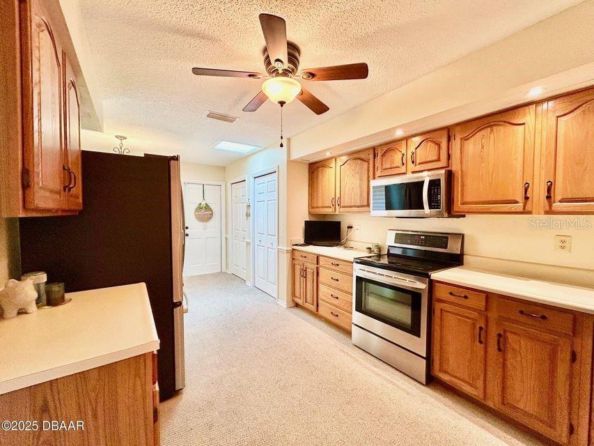 BEAUTIFUL AND SPACIOUS!!! - HUGE townhome with 2-car garage and 2,570 living square feet! This open 2-story unit features 4 bedrooms, 2.5 baths with accented stone fireplace and skylights. In one of Ormond Beach's top communities, the courtyard entrance is inviting! Kitchen has newer stainless appliances, a breakfast nook with 2 pantries. First level master suite highlights double vanity, lots of closet space with ambience views of patio and green space. Exterior Paint 2024. Roof 2018. Hurricane protected home with accordion and hand crank hurricane shutters. Washer and dryer included. Community amenities: pool, clubhouse, tennis and pickleball! Bring your dogs and cats! Seller is motivated with the lowest priced 4-bedroom unit available!! Reasonable HOA fees, great unit and super location! Come check it out!!