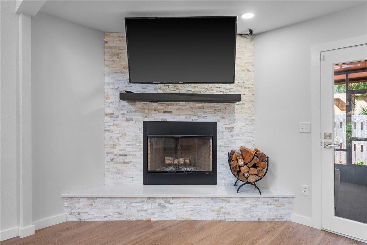 Centrally located and fully renovated 3BR/2.5BA townhome just 10 mins from Beach St. & the shores of Ormond Beach! 2023 upgrades include NEW roof, windows, gutters, HVAC, garage door, insulation, electrical, luxury flooring, paint, ceiling fans, kitchen, and all bathrooms. Modern and beautiful! Be a beachside homeowner WITHOUT all the maintenance! Enjoy a private fenced entry, large driveway, 2-car garage with epoxy floors, and tons of natural light from floor-to-ceiling windows. Open, functional and spacious floor plan. Modern kitchen features white shaker cabinets, quartz countertops, SS appliances & breakfast nook. Primary suite on main level with walk-in closet, en-suite bath & French doors to back patio. Cozy living room with stone wood-burning fireplace, separate dining room, and laundry with high-end W/D. Upstairs offers a bright loft and 2 bedrooms (one with huge walk-in closet) joined by updated Jack-and-Jill bath. Tennis courts, community pool, and more for you to enjoy. Close to schools, shopping, dining, parks & the beach—this Ormond Beach oasis is move-in ready!