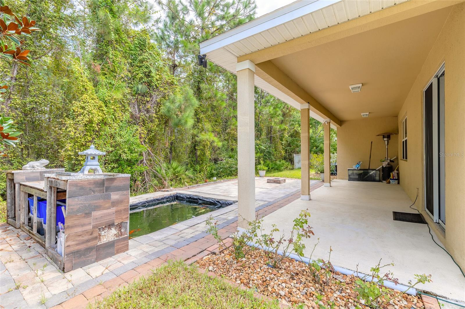 Exceptional Home in Hunters Ridge, within walking distance to highly rated Pathways Elementary School (14:1 student–teacher ratio), this 2,672 sq ft custom home in the Deer Creek section blends elegance, functionality, and privacy in one of Ormond Beach’s most desirable communities. Soaring ceilings & a dramatic chandelier welcome you into a spacious layout featuring a versatile Dining/bonus room & a flex guest bdrm/den/office with French doors. The open-concept living, dining, and chef’s kitchen—with granite counters, large island, stainless appliances, and custom backsplash—flow seamlessly together. The family room is anchored by a striking stone entertainment wall. The split-bedroom design includes 3 BRs & 2 BAs. The primary suite offers a walk-in closet, double quartz vanities, spa tub, and glass shower. An interior laundry and abundant storage add convenience. Step outside to your private oasis with covered porch, custom pavers, tranquil Koi pond, and peaceful conservation views—no rear neighbors. Hunters Ridge amenities include a clubhouse, two pools, tennis and basketball courts, ballfields, parks, a fishing pier, and canoe launch. Just 3 miles from I-95 and minutes to shopping, dining, and Tanger Outlets.