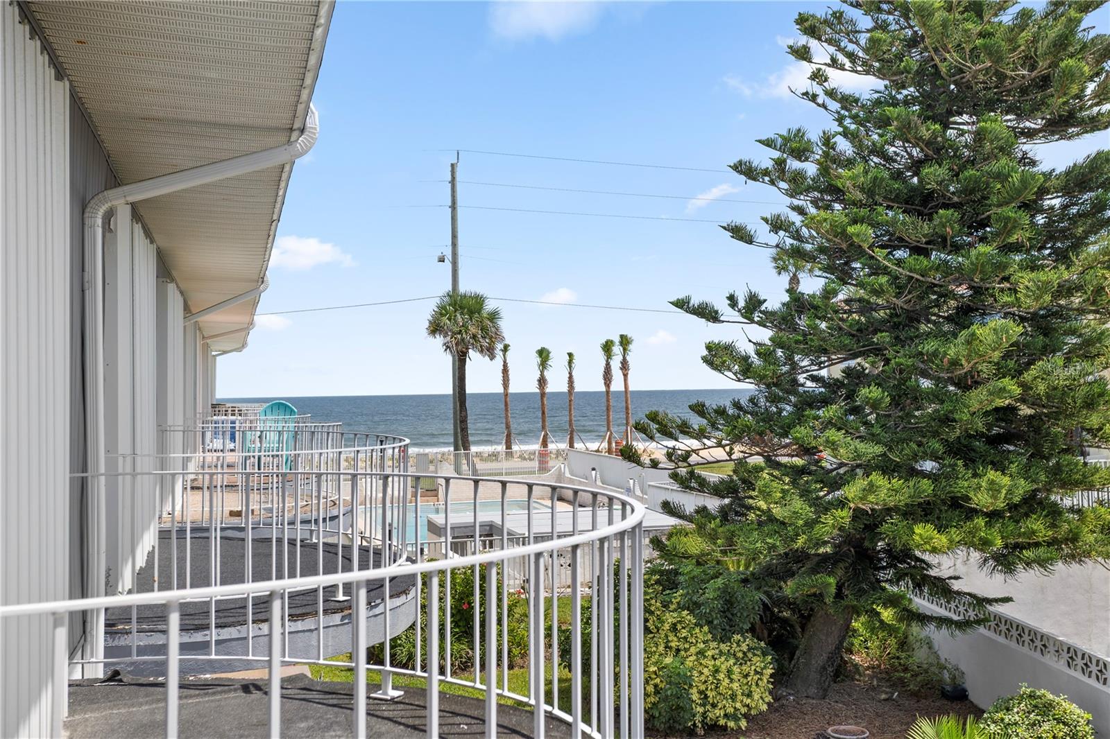 Enter coastal living at its best! Less than 150 feet to AIA and the beach, with nothing between your building and the beach and a nearby beach walkover, this beautifully updated home captures ocean views from both upstairs bedrooms. One bedroom offers a private balcony and large double closet, making it a spot to wake up with the sunrise. Both baths have been updated. A full bath with a shower/tub combo serves the upstairs, while a second full bath with an upgraded shower is conveniently downstairs. The custom kitchen is designed for entertaining with granite tiled countertops, stainless steel appliances, a tile backsplash and an inviting eat-in bar. Tile floors flow through the downstairs for easy care, while the upstairs is finished with warm laminate flooring. A rare garage with attached driveway provides plenty of space for two to three cars, bikes and beach gear, and hurricane-rated shutters on all windows and sliding doors and updated windows and sliders give added security and peace of mind. Offered fully furnished, including artwork, furniture, kitchenware, linens and garage contents, this home is move-in ready. Major updates include a new roof (2022), air conditioner condenser (2023), and air handler (2018), new garage door and opener (2025). Whether you're looking for a full-time residence, a vacation getaway or an investment, this ocean-view home delivers a blend of comfort, convenience and beachside lifestyle. Minimum 30-day rentals allowed and two pets under 25 pounds are OK. By appointment only so call today.