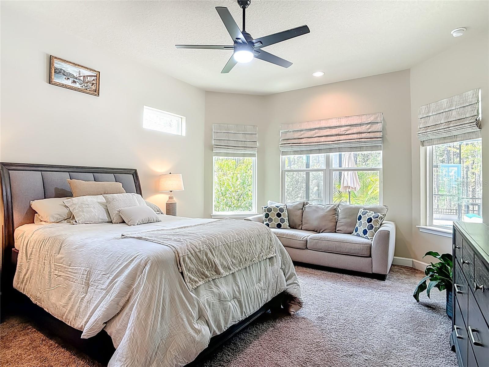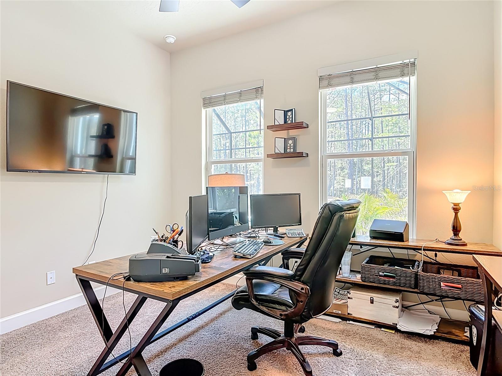 Gated access, lakes, preserves and unlimited amenities that you choose to use, including the new world class Golf Country Club facility. The Stirling Bridge Sub Community boasts the newest luxury homes meeting the demands of today's buyer trends, and this home will not disappoint you! This 2024 Custom Built Pool home offers unlimited upgraded features down to the finest detail! Positioned on a private wood preserve, extensive transom windows added to this design pour natural light and nature into the living spaces. Built-in features make this home a one of a kind! The kitchen has a nine foot, 3-inch-thick waterfall quarts island, custom wood hood vent and extended display lit cabinetry accentuating the soaring ceilings of the home. The open floor plan has double tray crown molding ceilings in living area with stone wall/shelving and triple sliding pocket doors out to the pool. The split plan primary suit has double walk-in closets with barn door sliders, sitting area, and stunning walk-in shower for a home spa feel. This four-bedroom home has a large fenced-in yard for the two- and four-legged family members, and over 1400 SF Lania enclosing the travertine patio, pool, spa, as well as the 19 X 11 ft covered patio area. Love where you live! Just a short drive to the beaches of Flagler and Volusia County!