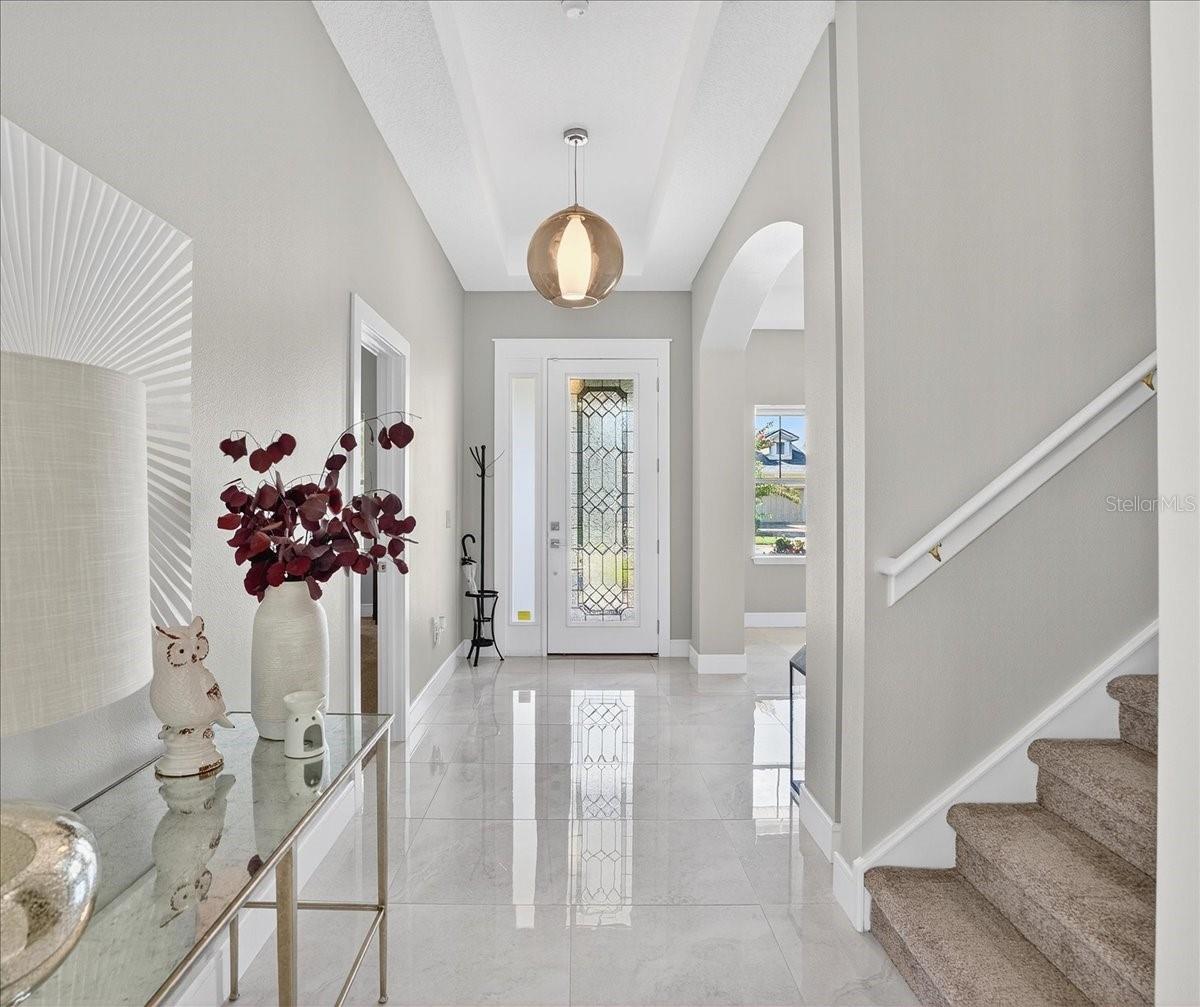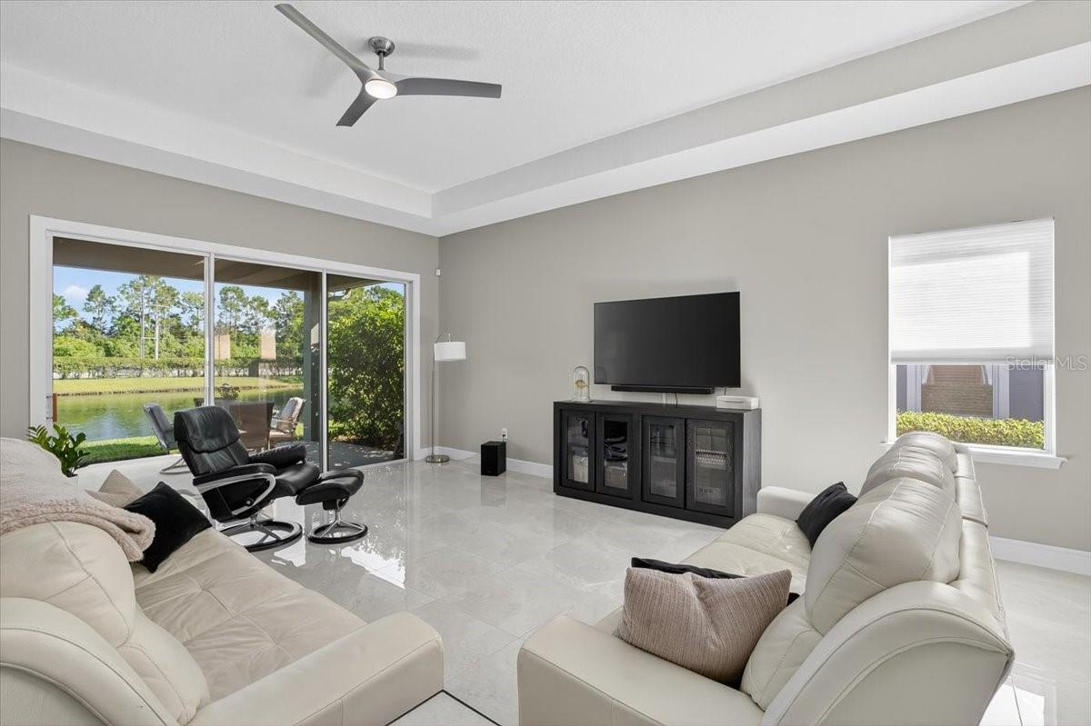 Welcome to Chelsea Place, one of Ormond Beach's most coveted gated communities, where luxury, comfort, and serenity meet. This beautifully renovated five-bedroom, three-bath residence is a rare find offering not only generous living space, but also a dedicated office and a large upstairs bonus/game room, making it ideal for multi-generational households, professionals who work from home, or families who love to entertain. From the moment you arrive, the home's curb appeal draws you in. Nestled on a picturesque lot with serene pond views, the property invites a sense of calm. Step through the front door and you're greeted by soaring vaulted and tray ceilings, gleaming new tile flooring, and a bright, open layout designed to flow effortlessly from one space to the next. At the heart of the home, the centrally located kitchen offers ample storage, GE Cafe appliances and generous counter space, perfect for everything from intimate gatherings to lively celebrations. Large windows and glass doors frame the tranquil water, inviting you to step outside to the covered lanai for morning coffee or unwind on the private balcony in the evenings with the soothing sound of the fountain. The primary suite is a luxurious retreat with a spacious walk-in closet and an elegant ensuite bath featuring dual vanities, a walk-in shower, and a private water closet. The remaining bedrooms are thoughtfully positioned for privacy, ensuring comfort for family and guests alike. The upstairs bonus room offers endless possibilities, whether you envision it as a media space, game room, or second home office. This home has been meticulously updated for peace of mind: a brand-new roof, new A/C, fresh interior and exterior paint, new flooring and baseboards, upgraded window treatments, and a state-of-the-art security system ensure its move-in ready. Living in Chelsea Place means more than just owning a beautiful home it's a lifestyle. The HOA takes care of lawn maintenance, cable, high-speed internet, irrigation, and more, allowing you to fully enjoy the community's resort-style pool, clubhouse, fitness center, playground, scenic lakes, and secure gated entry. All of this is just minutes from Ormond Beach's best shopping, dining, the Halifax River, and the Atlantic coastline. If you've been searching for a home that blends elegance, functionality, and a tranquil setting, this Chelsea Place gem is ready to welcome you. Schedule your private showing today and experience lakefront living at its finest.