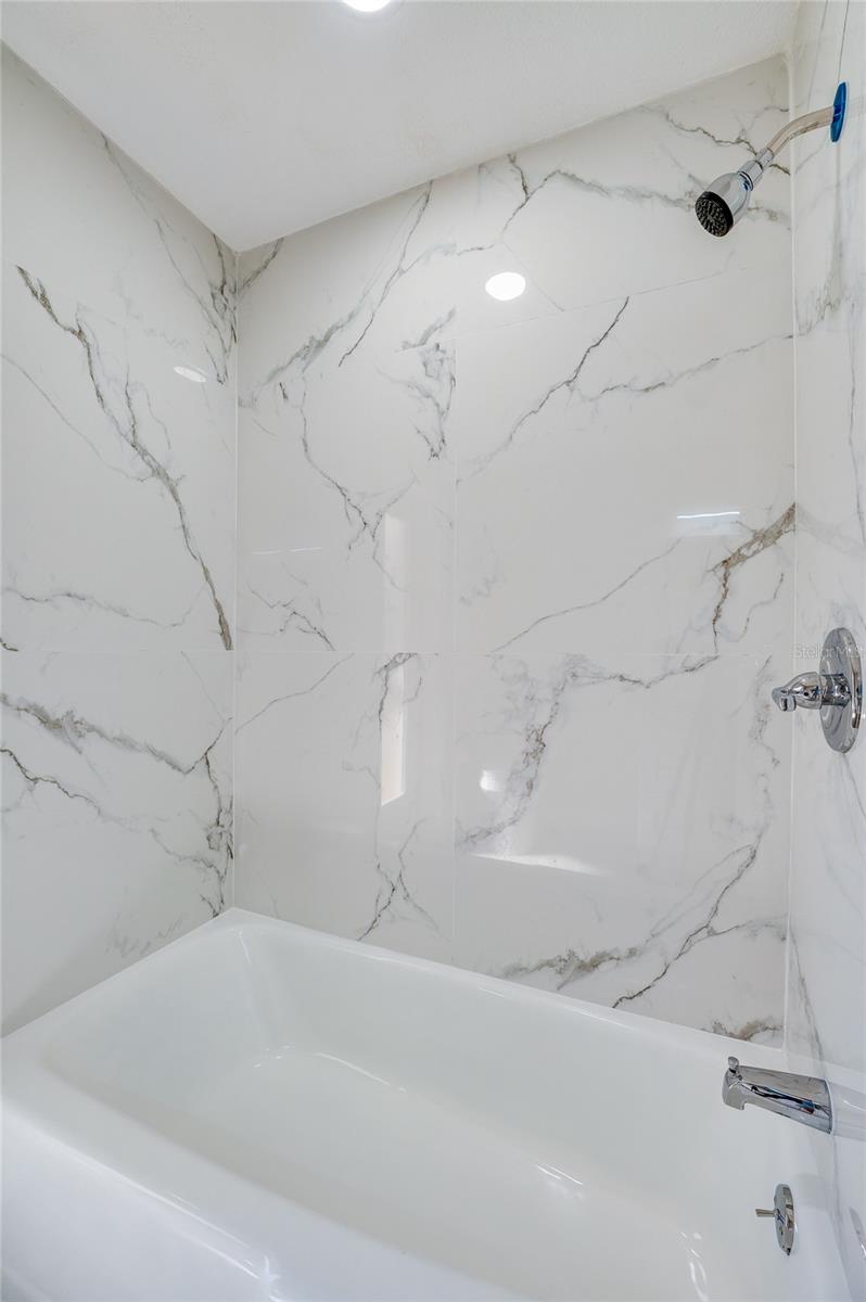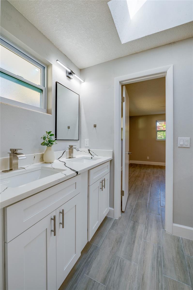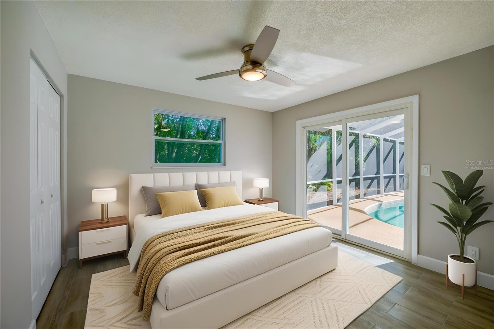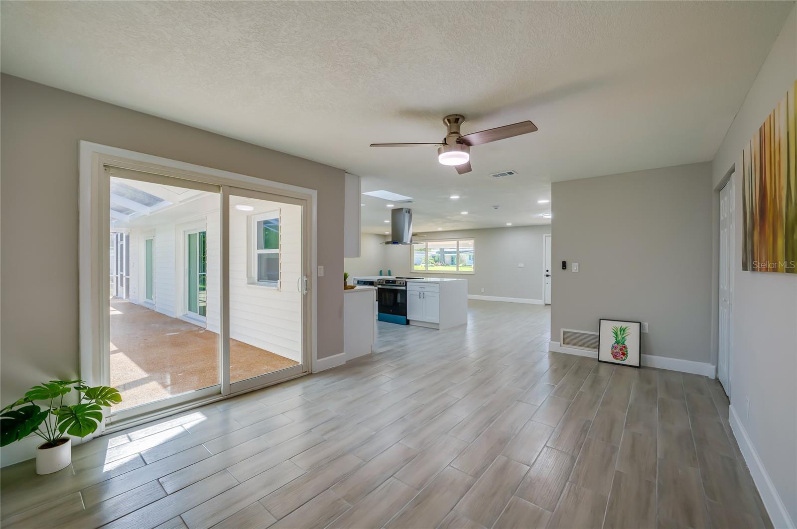 One or more photo(s) has been virtually staged. This beautifully remodeled 4-bedroom, 3-bathroom pool home in the Tomoka Oaks Country Club Estates offers nearly 2,500 square feet of stylish, move-in ready living. Nestled on a spacious lot with mature trees and a circular driveway, this residence combines classic ranch-style charm with modern functionality - including a brand-new roof and a 3-car garage. Inside, wood-look tile flooring flows throughout the open-concept layout, where the spacious living area and modern kitchen create a seamless environment for daily living and entertaining. The kitchen features a central island with a built-in range and statement hood, granite counters, stainless steel appliances, and skylights that fill the space with natural light. A cheerful breakfast nook and multiple sliding doors provide easy access to the pool, blending indoor and outdoor living with ease. The separate family room offers a cozy and stylish retreat, centered around a gas fireplace with a whitewashed brick surround, wood mantel, and dramatic black accent walls all bathed in natural light. The thoughtfully designed bedroom layout includes a private primary suite with dual closets, direct pool access, and a spa-inspired en-suite featuring a double sink vanity and a frameless walk-in shower with rain showerhead and mosaic tile flooring. A Jack and Jill bathroom connects two additional bedrooms, each offering ceiling fans, ample storage, and flexible use. A fourth bedroom opens directly to the pool, ideal for guests or a home office. A third full bath also provides direct outdoor access for added convenience. Enjoy year-round outdoor living in the fully screened pool with a spacious deck, surrounded by peaceful wooded views and generous green space. The 3-car garage offers abundant room for vehicles, storage, or workspace, while the extended driveway allows for guest or recreational parking. With no HOA, you’ll have the flexibility to enjoy your space with fewer restrictions - ideal for storing recreational vehicles or simply having more freedom. This premium location is just steps from the Tomoka River and close to fine dining, shopping, entertainment and the beach. All information recorded in the MLS is intended to be accurate but cannot be guaranteed.