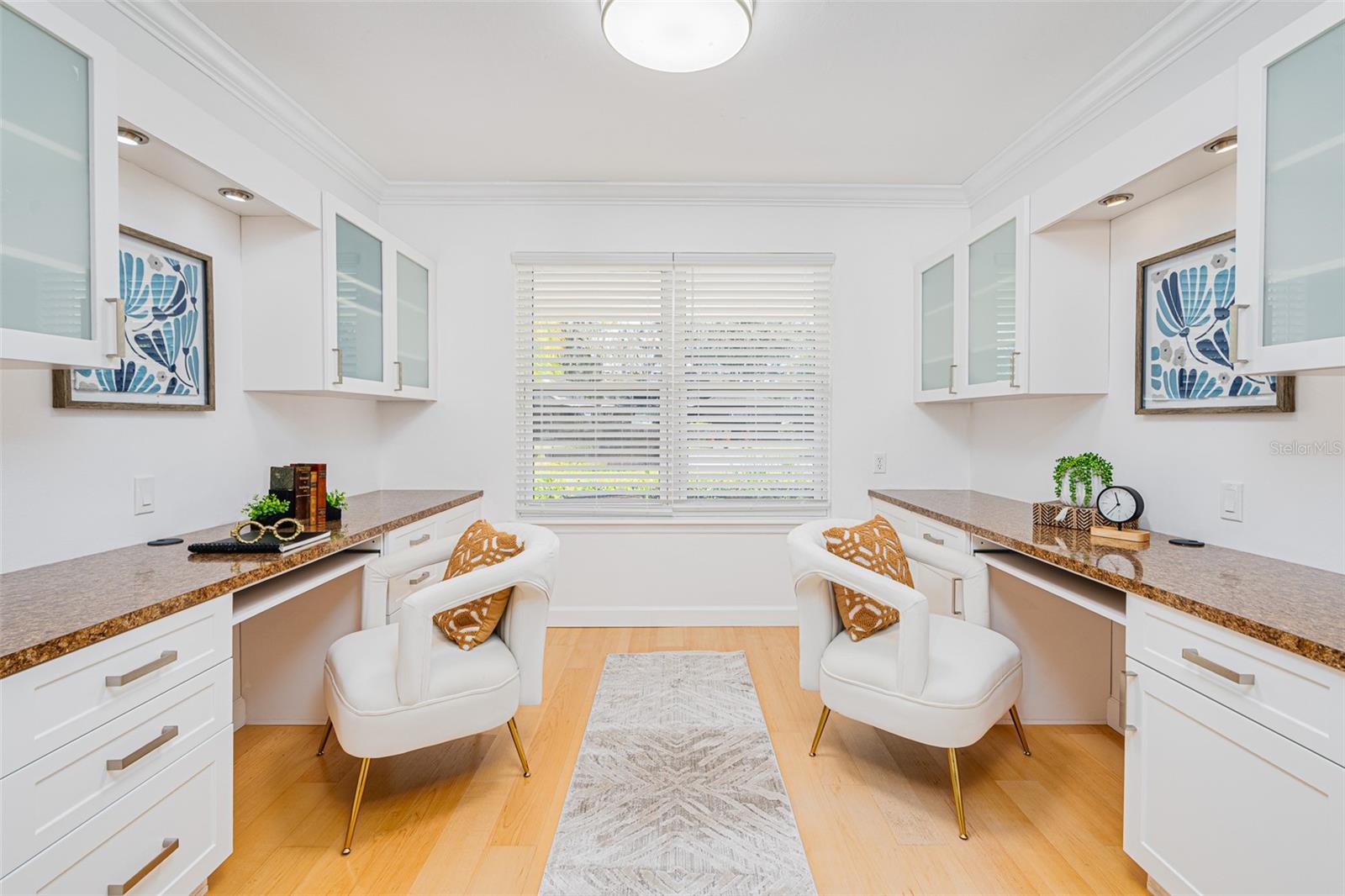 Welcome to 543 Sandy Oaks Blvd, Ormond Beach, a well-appointed 3-bedroom, 2-bath ranch-style home, perfectly situated on a quiet cul-de-sac in one of Ormond Beach's most convenient locations, just minutes from I-95, major shopping, top-rated schools, and a short 10-minute drive to the beach. Offering 1,788 sq ft of thoughtfully designed living space, this move-in-ready home blends comfort, functionality, and timeless charm. This residence features an EIFS (Exterior Insulation and Finish System) exterior, a modern, multi-layer wall system designed for enhanced energy efficiency and durability. Unlike traditional solid cement stucco, EIFS consists of rigid foam insulation board, a reinforced base coat with embedded mesh for added strength, and a beautifully textured finish coat, delivering both performance and refined curb appeal. Step inside to an inviting open floor plan enhanced by vaulted ceilings, skylights, and a stunning wood-burning brick fireplace topped with a cypress beam. A striking pecky cypress accent wall adds warmth and architectural character to the family room, while double doors lead to the enclosed rear porch, the perfect place to unwind year-round, or to utilize as a relaxation or yoga space. The remodeled kitchen boasts abundant cabinetry, a generous island, a breakfast bar, and extensive solid-surface counter space. Tile flooring flows through the kitchen, baths, and laundry, with laminate flooring throughout the remaining living areas for easy maintenance. A unique highlight of this home is the expansive two-person office, complete with built-in desks, storage, and filing drawers, ideal for remote work, homeschoolers, creative projects, or a study space. The property is equipped with high-impact hurricane windows (2005), 2017 HVAC, 2018 architectural shingle roof, and a 22KW Generac whole-house generator connected to an in-ground propane tank, ensuring peace of mind during any weather. Additional upgrades include ceiling fans throughout, a termite bond, and 200+ amp electrical service. The vinyl-fenced backyard offers privacy and plenty of space for pets, with gates on both sides of the home and a convenient dog door from the rear porch. An irrigation system on a well helps keep landscaping lush year-round. The attached garage provides attic storage, and the property also includes a shed for additional flexibility. With its thoughtful upgrades, flexible living spaces, and peaceful cul-de-sac setting, this well-maintained home offers the perfect blend of comfort, convenience, and classic Ormond Beach charm. Move-in ready and beautifully cared for, it's a property you'll be proud to call home.
