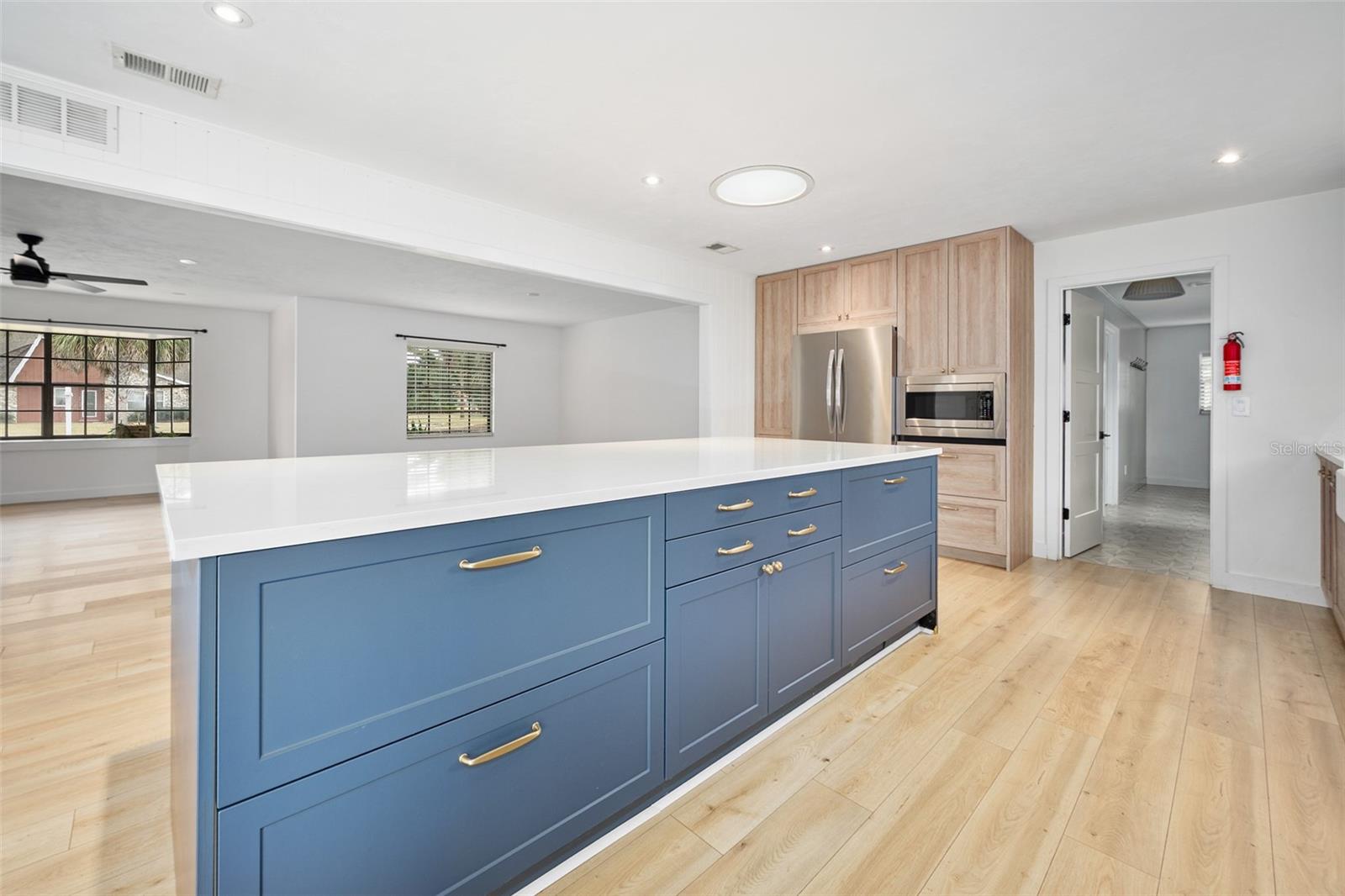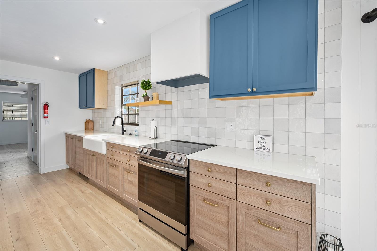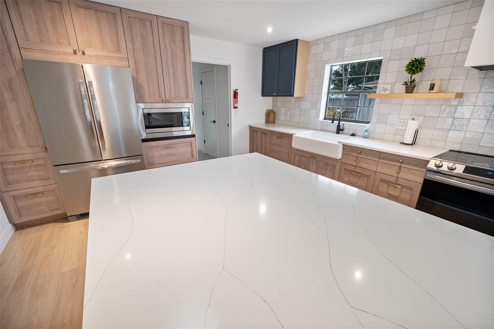 Experience refined living in a home where every detail has been elevated. This residence trades standard finishes for true craftsmanship, featuring luxury plank flooring and custom tile work throughout. The heart of the home is a chef's sanctuary, defined by a dramatic floor-to-ceiling backsplash, quartz surfaces, and a massive dual-sided island designed for those who love to host. Beyond the kitchen, the layout transitions into airy, sun-drenched gathering spaces anchored by a picturesque bay window and built-in reading nook. The primary bedroom is generous sized and leads to a spa-like ensuite with an elegant cabinet with dual sinks, stunning tile floors, and tiled walk-in shower. The oversized laundry room can double as a mud room, complete with a slop sink. Outdoor enthusiasts will appreciate the oversized corner lot, offering a sprawling backyard with room for a pool. The double-gate side entry is a standout feature, providing effortless storage for your toys. This home is located on a beautiful tree-lined street, minutes away from Tomoka State Park, which is situated between two highway exits, giving you more than one way to your home. The beach, restaurants, and shopping are just a short 10 minute drive.