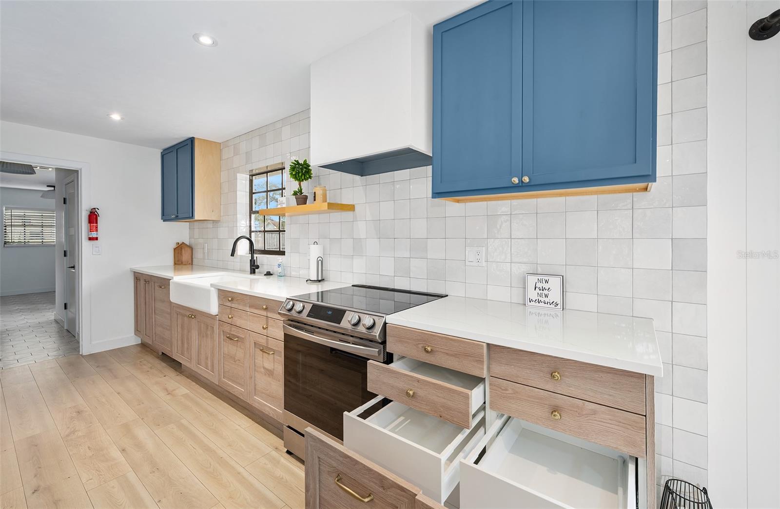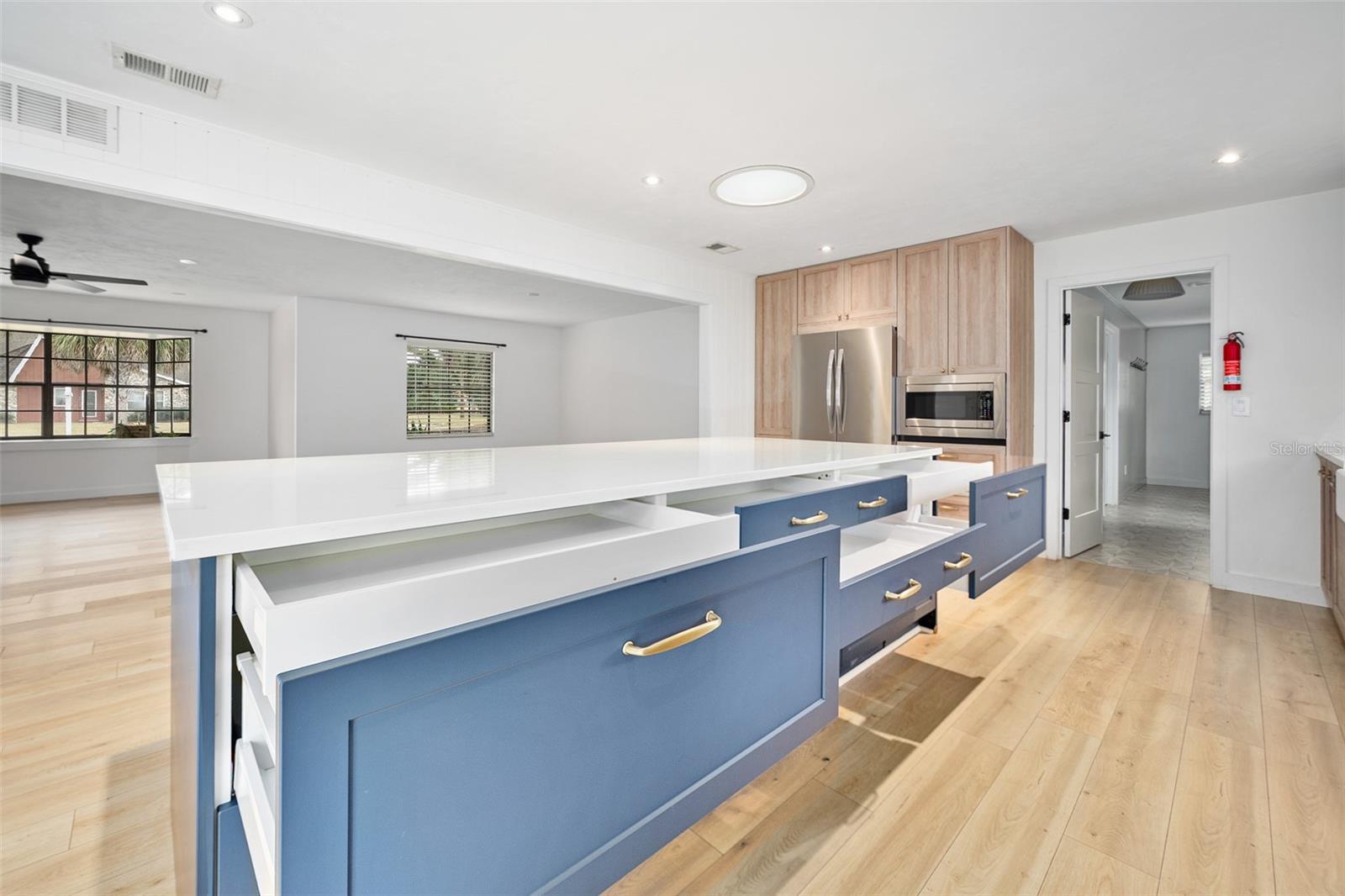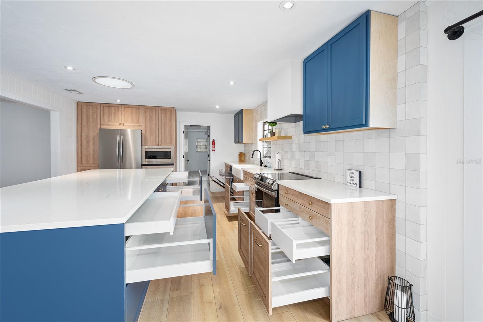 Experience refined living in a home where every detail has been elevated. This residence trades standard finishes for true craftsmanship, featuring luxury plank flooring and custom tile work throughout. The heart of the home is a chef's sanctuary, defined by a dramatic floor-to-ceiling backsplash, quartz surfaces, and a massive dual-sided island designed for those who love to host. Beyond the kitchen, the layout transitions into airy, sun-drenched gathering spaces anchored by a picturesque bay window and built-in reading nook. The primary bedroom is generous sized and leads to a spa-like ensuite with an elegant cabinet with dual sinks, stunning tile floors, and tiled walk-in shower. The oversized laundry room can double as a mud room, complete with a slop sink. Outdoor enthusiasts will appreciate the oversized corner lot, offering a sprawling backyard with room for a pool. The double-gate side entry is a standout feature, providing effortless storage for your toys. This home is located on a beautiful tree-lined street, minutes away from Tomoka State Park, which is situated between two highway exits, giving you more than one way to your home. The beach, restaurants, and shopping are just a short 10 minute drive.