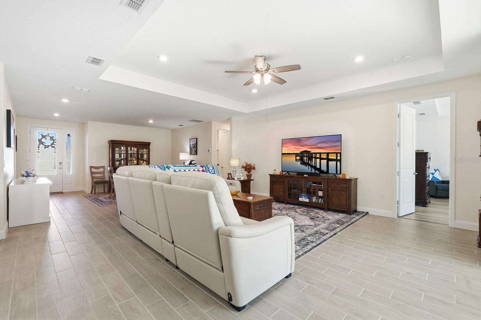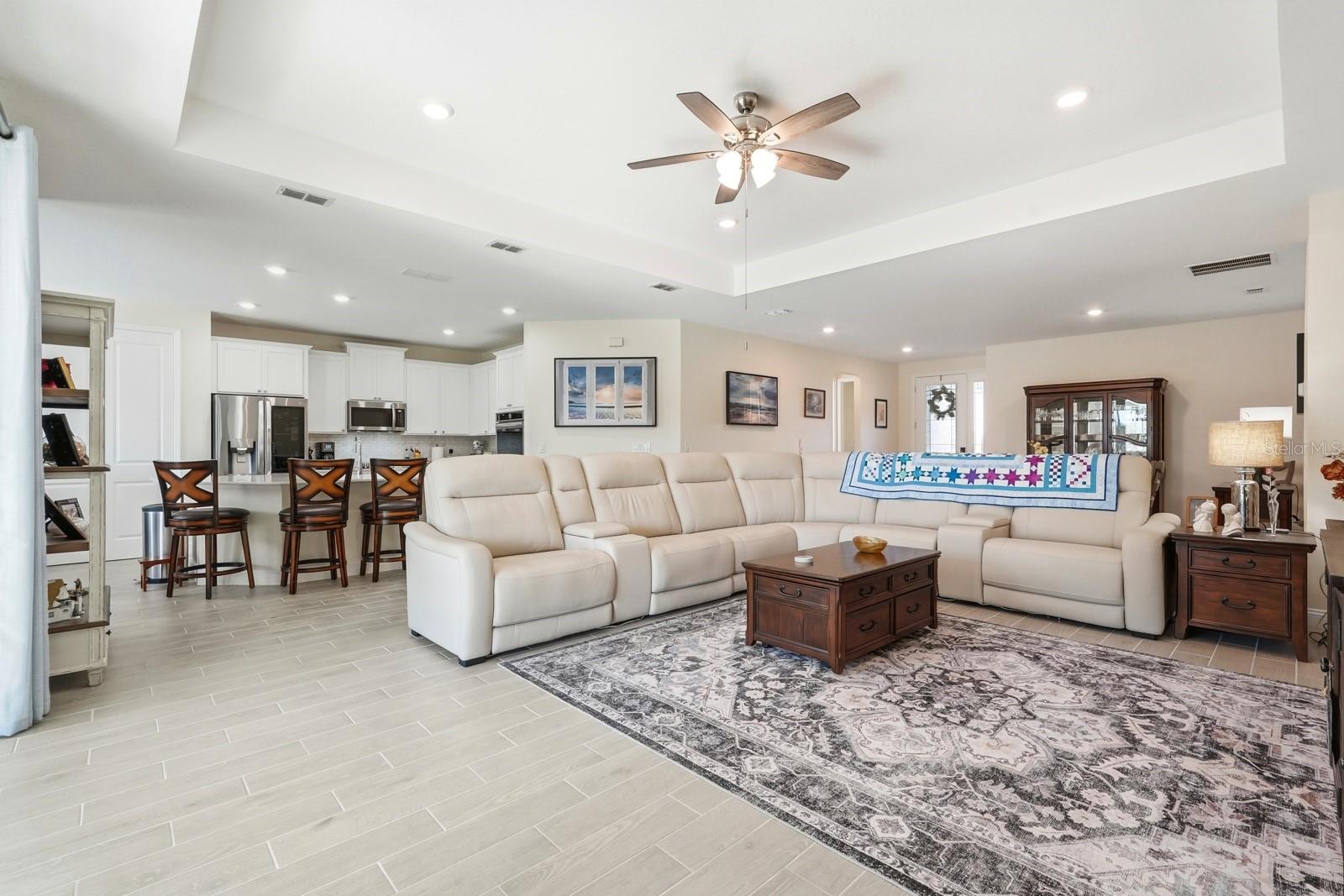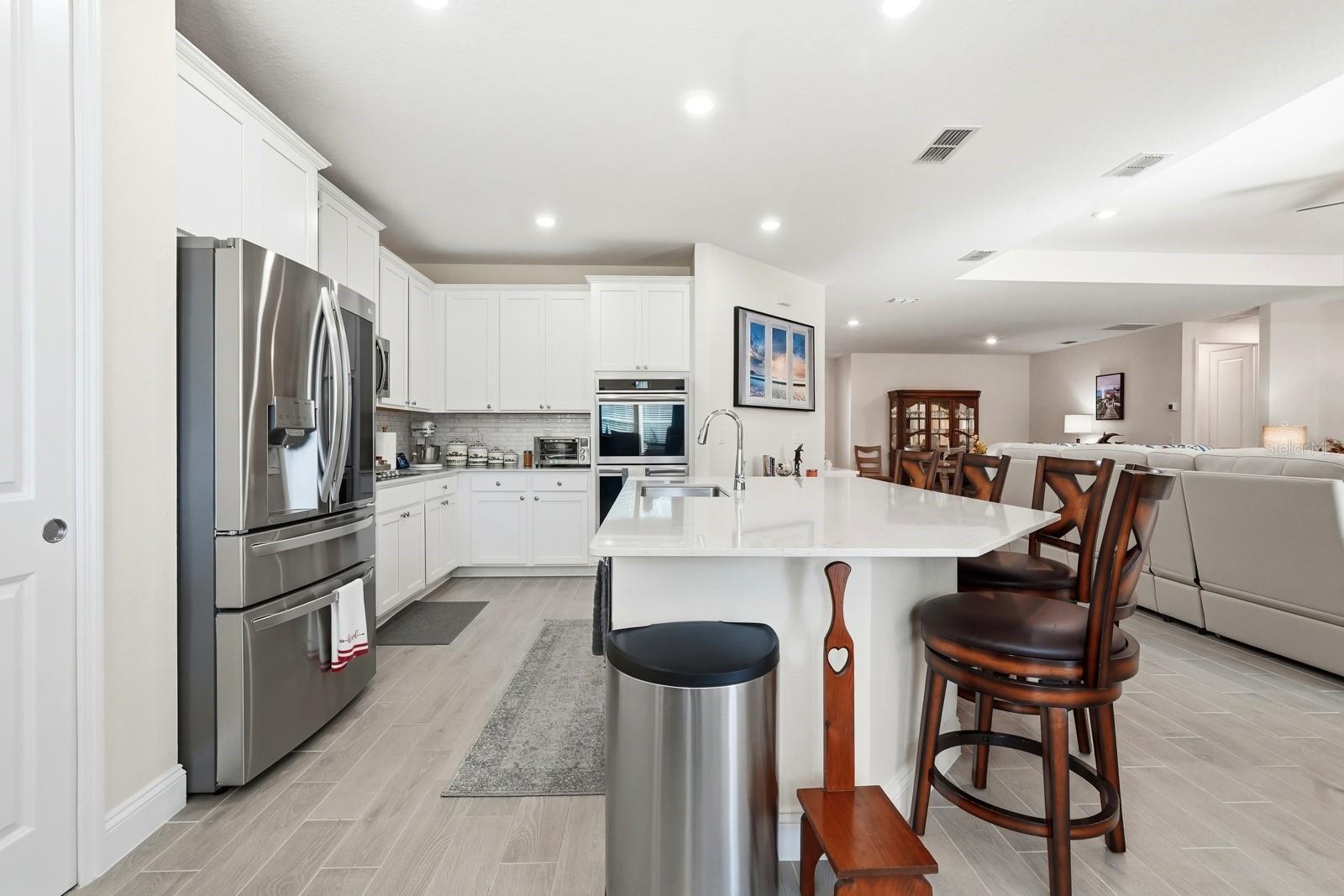 Welcome to Wexford Reserve. Pride and ownership is apparent from the moment you walk into this well-thought-out Princeton model floor plan. The light filled open concept living area offers space for all with 4 bedroom areas for privacy off of the main living. Low maintenance plank tile flooring carries throughout the home. The well-equipped kitchen offers double wall ovens, cooktop, high-end refrigerator and microwave. All laid out around a massive center quartz island, perfect for entertaining and food prep. Large sliders lead you seamlessly from the inside to outside taking advantage of the rear lanai overlooking the breathtaking preserves from your fully fenced backyard. 8 foot doors throughout the home paired with volume ceilings with tray details in the living room as well as the owner’s suite adds to the custom feel. Preparing for your day will be an enjoyable one, waking up with gorgeous views of the preserve from the bedroom. Grab your outfit from the spacious walk-in closet and enter the ensuite bath with double sink vanity and massive walk-in shower. The three car garage offers tons of flexibility for extra vehicles, golf cart, workout area, or hobby shop. Regardless, how you choose to use it, you will certainly enjoy the shark coating epoxy floor that was recently installed in the garage as well as the covered lanai area and the covered front porch. Additional bonus features include a deep irrigation well for gardening, ring cameras and smart thermostat.