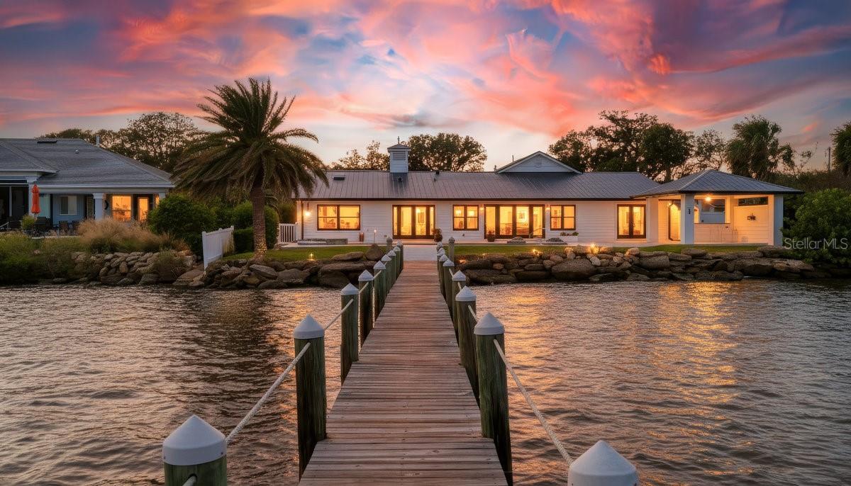 Following a major renovation, this striking waterfront pool home presents an exceptional opportunity to enjoy refined coastal living across more than 3,500 square feet. Designed for both comfort and entertaining, the residence blends expansive interior spaces with resort-style outdoor living and sweeping river views throughout. The heart of the home is an impressive great room where floor-to-ceiling water views set the backdrop for the living and dining areas, all centered around a chef's kitchen. This beautifully redesigned kitchen is outfitted with quartz countertops, custom solid-wood cabinetry, and top-tier appliances, highlighted by a 48-inch gas range with pot filler and a commercial-grade copper vent hood. Architectural tongue-and-groove vaulted ceilings enhance the space, while a generous pantry, wine refrigeration, and a porcelain farmhouse sink overlooking the river complete this chef-inspired environment. Square footage received from tax rolls. All information recorded in the MLS intended to be accurate but cannot be guaranteed.