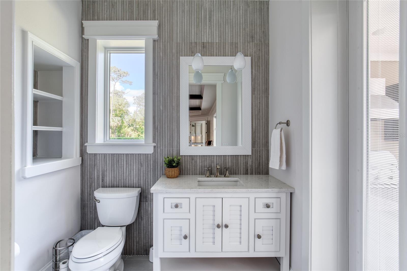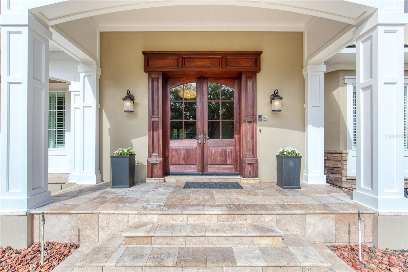 Timeless elegance discreetly nestled in the heart of Ormond Beach! This exceptional 5-bedroom, 6 bathroom estate, complete with a 4-plus-car garage & private saltwater pool & spa, offers both convenience & seclusion. Situated in a tucked-away community of one-acre parcels just minutes from shopping, dining, cultural venues & the beach, this home comes with the option to purchase an additional adjacent acre to further enhance privacy. Constructed in 2009 with uncompromising attention to quality, no expense was spared in creating this enduring & sophisticated family estate. Encompassing just under 10,500 square feet of combined indoor & outdoor living space, the residence is ideally suited to accommodate a growing family or multi-generational household. The oversized 4-plus-car garage features 2 double-width doors, one of increased height to accommodate a recreational vehicle or boat. The moment the residence comes into view, its circular driveway, majestic oak trees, stone-lined raised landscape beds, & stone-tiled front porch with stacked-stone apron set a tone of grandeur. Additional architectural details including the metal & tile roof, framed windows, shiplap siding, decorative millwork, & stately double wood & glass entry doors further underscore the home’s refined character. Upon entry, a formal foyer welcomes guests with the main staircase to the right & the formal dining room to the left. Rich Brazilian walnut hardwood flooring extends throughout. Ahead, the impressive great room featuring soaring 23-foot ceilings & a gas-burning fireplace serves as the heart of the home. Double French doors flanking the fireplace open to a covered rear lanai overlooking the private 18' x 27' saltwater pool & 8-person waterfall spa. The chef’s kitchen is appointed with bull-nose granite countertops, Monogram appliances including a four-burner gas range with center grill & convection oven, 2 dishwashers & an expansive 9' x 6' walk-in pantry. The large center island incorporates a prep sink, warming drawer, one dishwasher & bar seating. The outdoor summer kitchen provides a 2nd cooking arena. Adjacent to the eat-in kitchen is a formal game room featuring a fully equipped bar with beverage cooler, ice maker & dual taps. This room is home to a full-sized pool table, tabletop shuffleboard, game table, & large flat-screen television. Built-in cabinetry houses the home’s comprehensive security & audio systems. The main level also includes the primary suite with French doors leading to the outdoor living space. The en-suite bathroom features a glass-enclosed walk-in shower, soaking tub, dual vanities, & 2 spacious walk-in closets with custom organizers. Additional main-floor amenities include an office, laundry room, service entrance, & 2 half baths. The upper level offers 4 additional bedrooms, each with an en-suite bathroom & custom cabinetry, a 2nd laundry room, an art room/library, & an 2nd great room with 2 walk-in closets potentially suitable as an additional primary suite. This level is also home to an expansive covered balcony with sweeping views of the backyard. Notable features throughout the home include volume ceilings with decorative tray details, recessed lighting, plantation shutters, a smart leak detection system, programmable thermostats, remotely controlled pool/spa equipment, & whole-house generator. Nearly every room is equipped with a flat-screen TV including the outdoor living area above the cozy wood-burning fireplace.