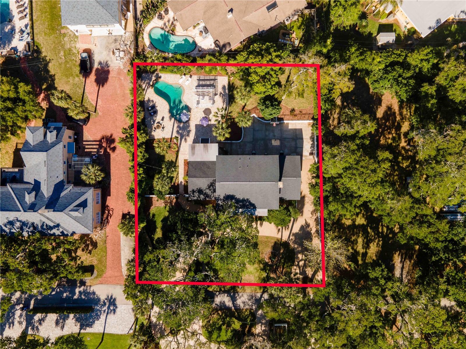 Discover this Stunning Estate perched on over half an acre in Ormond Beach ( the Adjacent 1/2 acre vacant lot is available with the sale of the home thru additional negotiations). Nestled on the sought after oak-lined one-way street in the heart of Ormond's beachside community. This home sits just 2 blocks to the Atlantic Ocean, steps to the Halifax River, and a stone's throw from The Casements, (what was Rockefeller's summer retreat, now affectionately called the ''Jewel of Ormond Beach''). Relative updates and features: Concrete Block Construction, Re-Roof in 2021, Gutters, Rear Porch addition 2022, Pool 2019, & HVAC 2021. The home effortlessly exudes a warm and welcoming atmosphere throughout, offering nearly 5,000 square feet of premier living. As you step inside, you're greeted by a grand foyer that leads to spacious living areas, where natural light floods through the wall of windows. Five bedrooms and five bathrooms, including three en-suites, provide ample space and privacy. The ground floor suite with private entrance, is the perfect flex space, providing opportunity for an additional Entertainment Room, Guest Room, In-Law Suite or Home Office. The Oversized 3 car Garage includes a huge workshop area, as well as a massive 16 x 26 storage room. Upstairs, The kitchen and the adjacent Family room provide open concept living, complimented by an expansive island and dining nook. Bask in the backyard outdoor oasis surrounded by lush landscaping and enjoy the perfect blend of Coastal Living and the Florida Lifestyle. The covered back porch overlooks the entire outdoor entertaining space. Featuring a summer kitchen, dining area, gas fire pit, and the pool. This unique property seamlessly blends timeless elegance with modern convenience. Whether you're looking to create lasting memories with family or entertain in style, this gem provides an unparalleled lifestyle along with Ormond Beach's rich history, making it a truly exceptional find. All information intended to be correct and accurate, is not guaranteed, taken from public records.