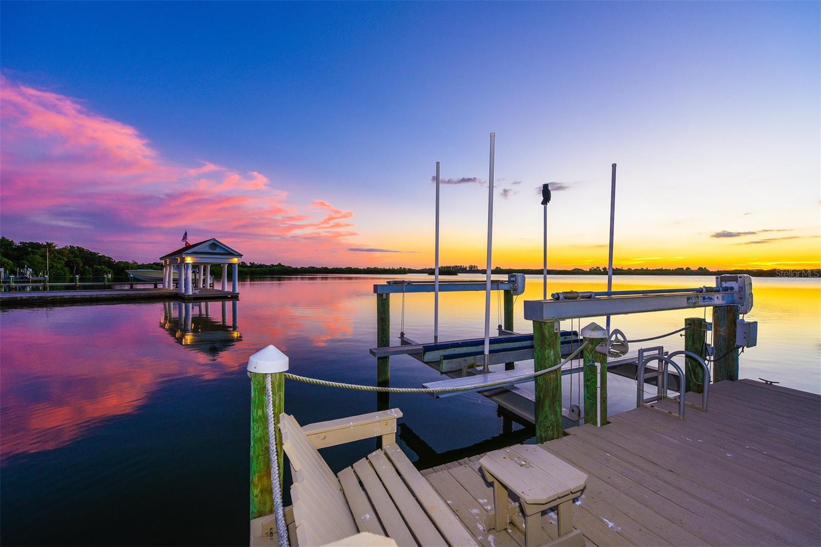 Price to Sell! ***NEW ROOF 11/07/2023*** Most desirable location in The Oaks Bayside Country club. Its Magical water view of Sarasota Bay is truly a Boaters Dream! Featuring your own Private Dock with 3 power lifts...12,000/ 16,000. Driving through this Private Gated Community you are surrounded by Mature Oak trees. The Grand circular driveway leads into a Double Grand stairway to the double doors. The Ambiance of the custom 22+ft. ceilings with 4 Custom Fireplaces, Custom Designer Kitchen with all new hardwood floors threw out. 1 million in custom renovations. Extra-large master Suite with incredible Sunsets. Perfect for Entertaining to Comfort Living. 5+ car garage plus large non-conforming In-Law Suite. The Oaks is a Five Star Platinum Club.