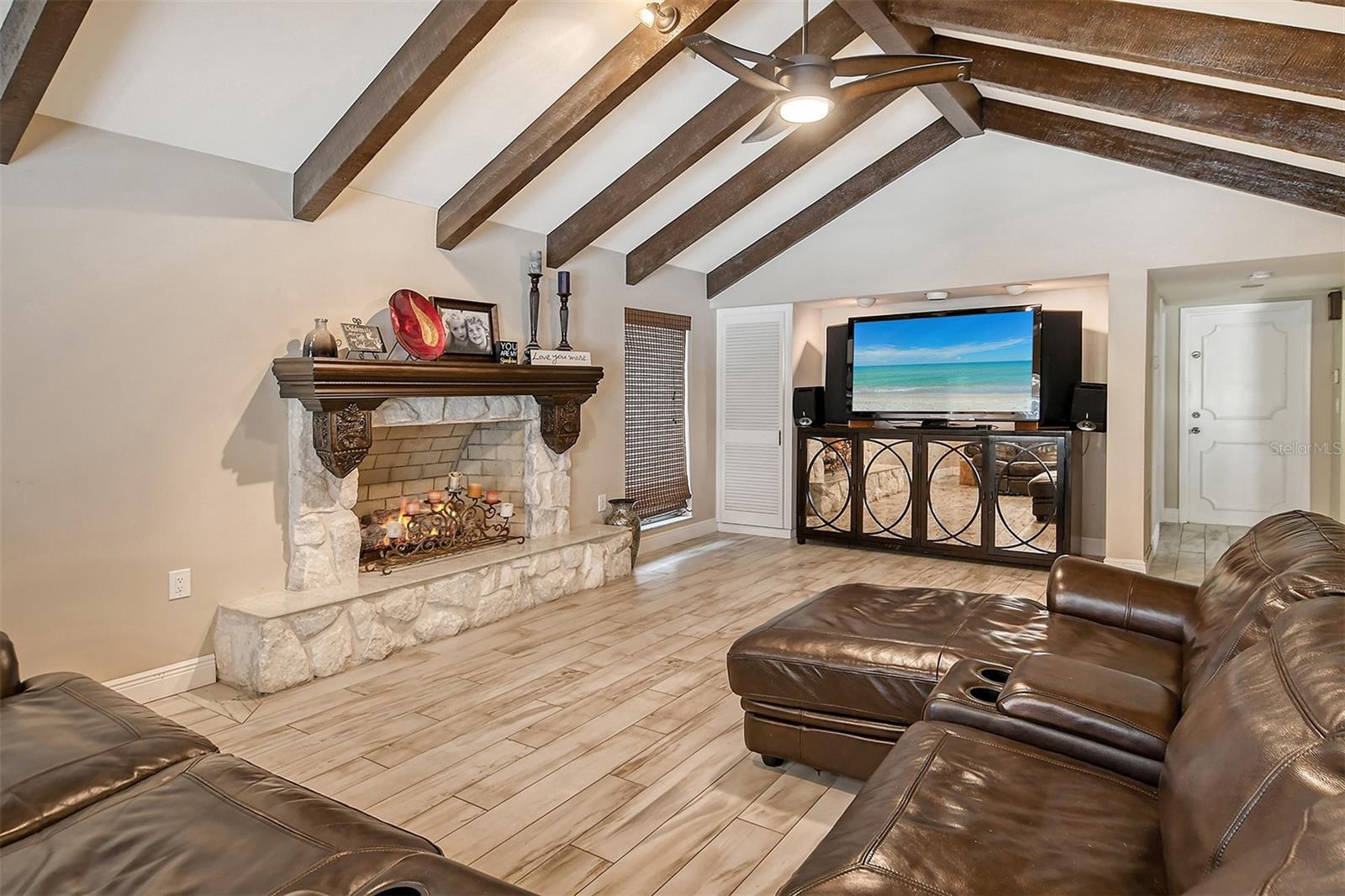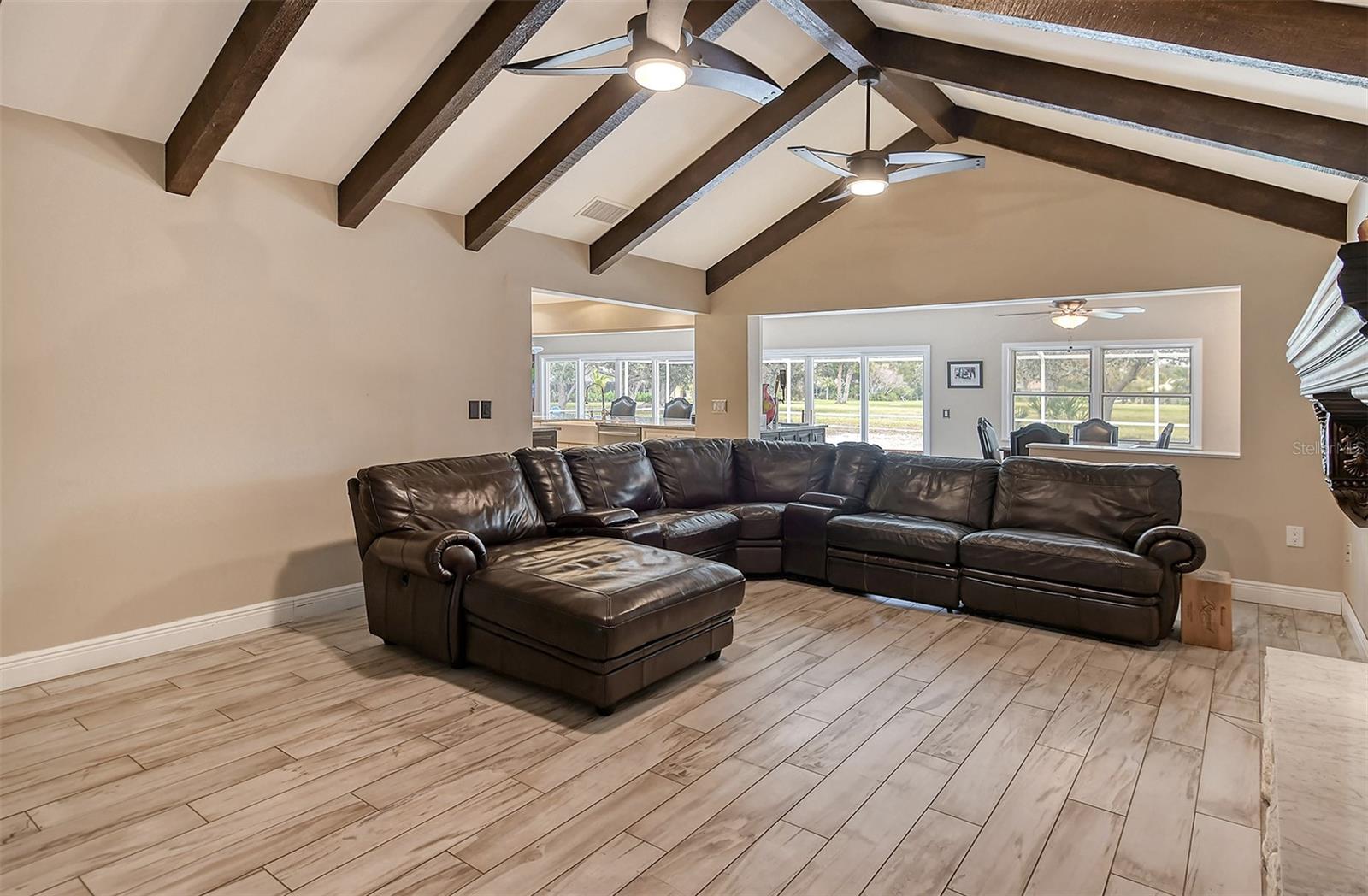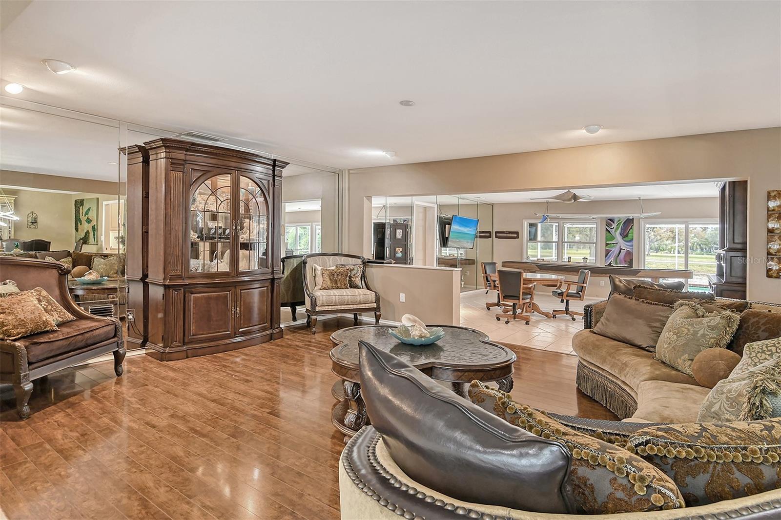 BRAND NEW ROOF AND GUTTERS just installed to complement the new/newer kitchen, A/C units and water heaters. Opportunity for buyer to update bathrooms and other aspects of this substantial home, located in a highly desirable waterfront community. Embrace an active lifestyle and secure the perfect haven for your boat with this spacious residence nestled on 1/3 acre, complemented by 2 acres of park-like grounds to the rear. The heart of this home is the expansive and modern kitchen—a versatile hub for gatherings or a chef's sanctuary, providing panoramic views of the pool and seamless connections to the breakfast nook, family room, formal living and dining spaces, as well as the games room. The primary bedroom suite and a guest bedroom/office with murphy bed create a tranquil retreat in their own downstairs corner of the home. Upstairs, discover ample space with two bedrooms, a bathroom, and walk-in storage—perfect to adapt to meet your work-from-home or hobby needs. Impact windows to the front and sides, and a recently rescreened pool cage offer comfort and practicality. Opportunities for further updates abound, allowing you to customize this home to your own preferences. Southbay Yacht & Racquet Club's renovated clubhouse, overlooking a 7-acre deep-water boat basin, adds to the allure. The private marina accommodates various watercraft, from kayaks to yachts up to 55 feet. Indulge in the community's other amenities, including a heated pool, sports courts for tennis, pickleball, basketball, and shuffleboard, along with a playground, waterfront park, 20 acres of common areas, and 5 miles of walking trails. Southbay's proximity to shopping, restaurants, high-performing schools including Pine View, local beaches, and state parks enhances its appeal. Seize the opportunity to make this home your own and explore the unique offerings of the Southbay Yacht & Racquet Club community. Visit this home now to see its full potential for yourself