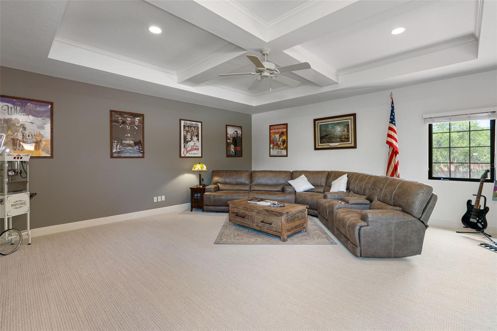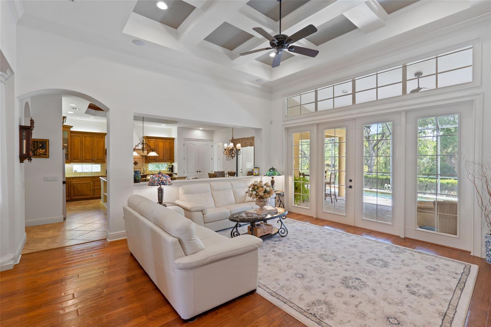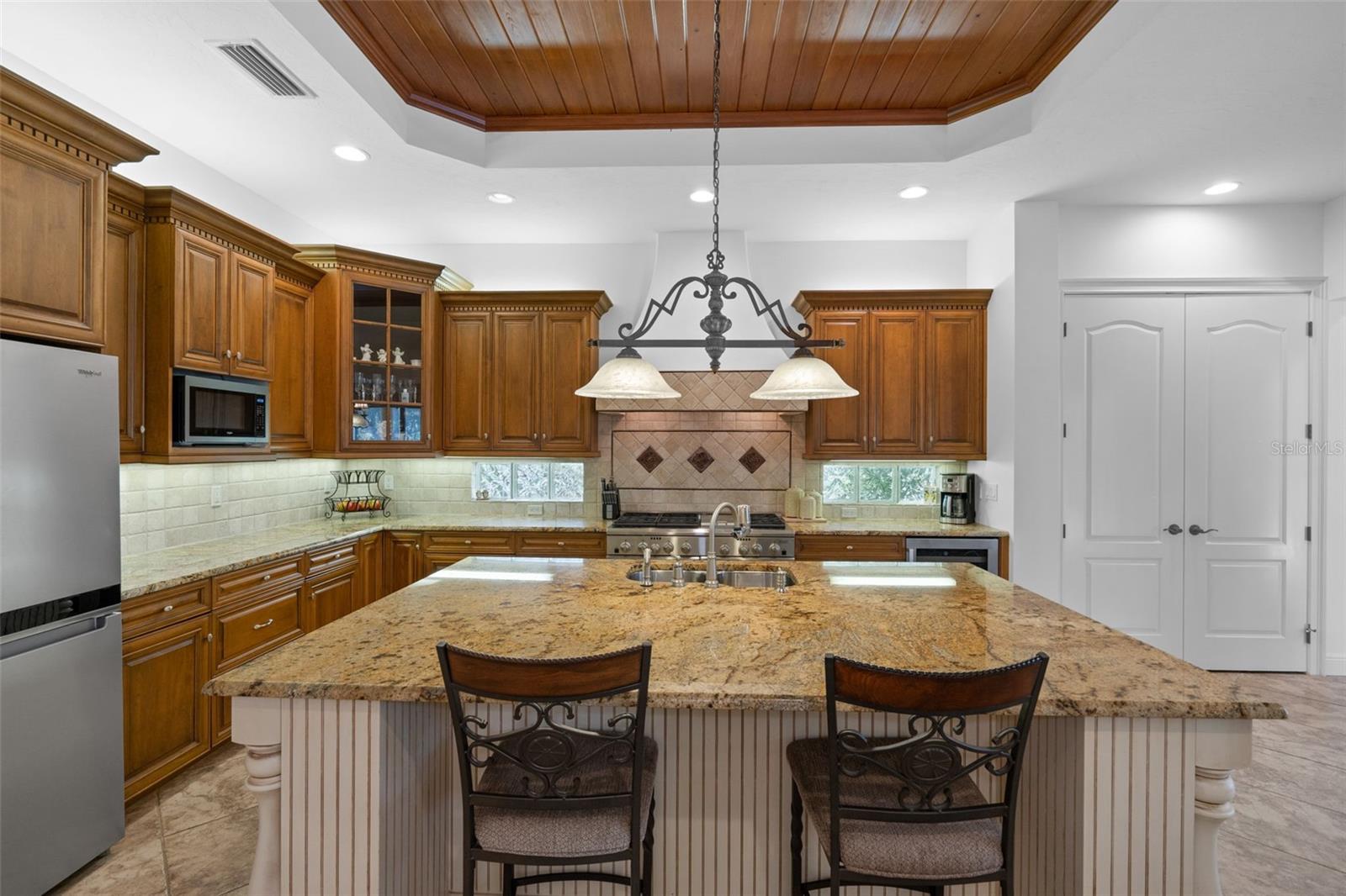 When Location matters as well as “being away from it all” but still close to everything, this is the residence for you. Custom designed and built by Robert Guengerich as his personal residence. Nestled at the end of a private cul-de-sac with mature oak trees, this signature property showcases the perfect fusion of refined craftsmanship and timeless elegance. Upon entering, you will be greeted with soaring 13 ft. Ceilings, accented archways and architectural columns. Pride of Ownership shows with this well maintained home. The open floor plan creates a warm and inviting atmosphere for entertaining guests or simply relaxing in luxury. Featured also is Guengerich’s signature coffered ceilings and a custom fireplace. The chef's kitchen is a culinary haven, boasting high-end appliances including a gas stove, a grand center island, rich cabinetry and granite counters. This home has over 3,100 sf. with 4 bedrooms, 3 ½ baths, plus a full media center and a 3 car garage. The primary bedroom showcases custom woodwork, a tray ceiling and a cozy sitting area. When it is time for the “Big Game” or a private movie night, your media room upstairs awaits. Dine al fresco or enjoy the lap-style pool in the quiet, private Lanai. Oak Creek only has 27 residences and homes rarely are offered for sale and for good reason. Located just off Tamiami Trail near the Oaks Country Club and top rated Pine View School, it’s an easy drive to Downtown Sarasota and Venice, and our Famous Siesta and Nokomis beaches. The Osprey Junction Trailhead is nearby servicing the Legacy Trail with miles and miles of bike riding. This is Florida Living at it’s Finest.