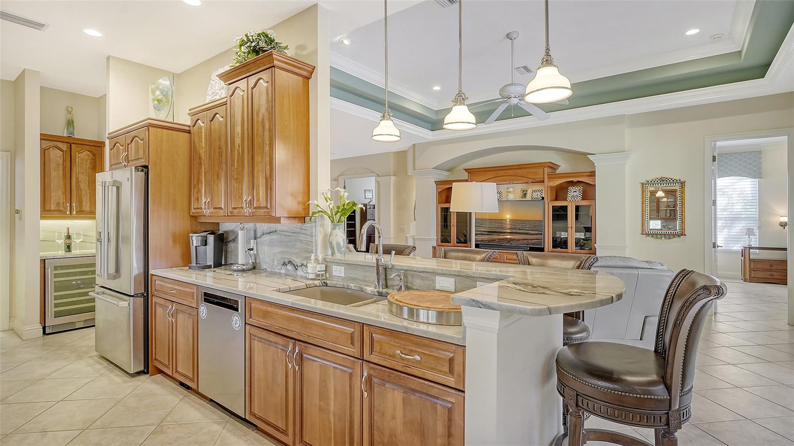 This incredible newly updated house with many upgrades and amenities is the home you have been waiting for! Ideally located in the beautiful Oaks Preserve between Siesta Key and Casey Key, the private enclave is in a shaded neighborhood where residents enjoy the canopied surroundings and friendly atmosphere. This maintenance free home is located in The Oaks Golf and Country Club, where there is NO waiting period to join, and you can immediately begin your active lifestyle playing golf on 2 championship golf courses, tennis, pickleball, and many outdoor activities to enjoy! The Oaks is a designated Platinum Club of America, Emerald Club, and Elite Distinguished Club of the World! Minutes from shopping, beaches, cultural arts, and Pine View School, a highly acclaimed public magnet school rated #1 in Florida, this beautiful home sits on a lush, tropical preserve providing privacy for the sparkling pool and spa. Floor to ceiling sliding glass doors connect the screened lanai and the great room. Stunning matching built in cabinetry in both in the dining and living areas are perfect for your home entertainment center and for showcasing your china and crystal. The gourmet kitchen has beautiful new granite counters, stainless appliances, built-in wine and beverage cooler and abundant cabinetry. The primary suite offers a sitting area with a window seat and large walk-in closets with glass front storage. The spacious ensuite bath has been updated with granite for the dual vanities and has marble wall accents. there are 2 guest rooms with ample closet space - (one which can be separated as a private suite). The second bath has also been tastefully renovated with granite counter and marble accents. The 2 car garage is air conditioned with plentiful storage. You will have peace of mind in this 24/7 manned guard gated community. The Oaks Club - a Platinum Club of America - is Sarasota’s most desired club and boasts it’s recently opened $9M casual and outdoor dining area to compliment it’s two fine dining restaurants. There are two 18 hole championship golf courses, 12 HarTru tennis courts, 4 pickleball courts, croquet and many social activities. Membership is required.