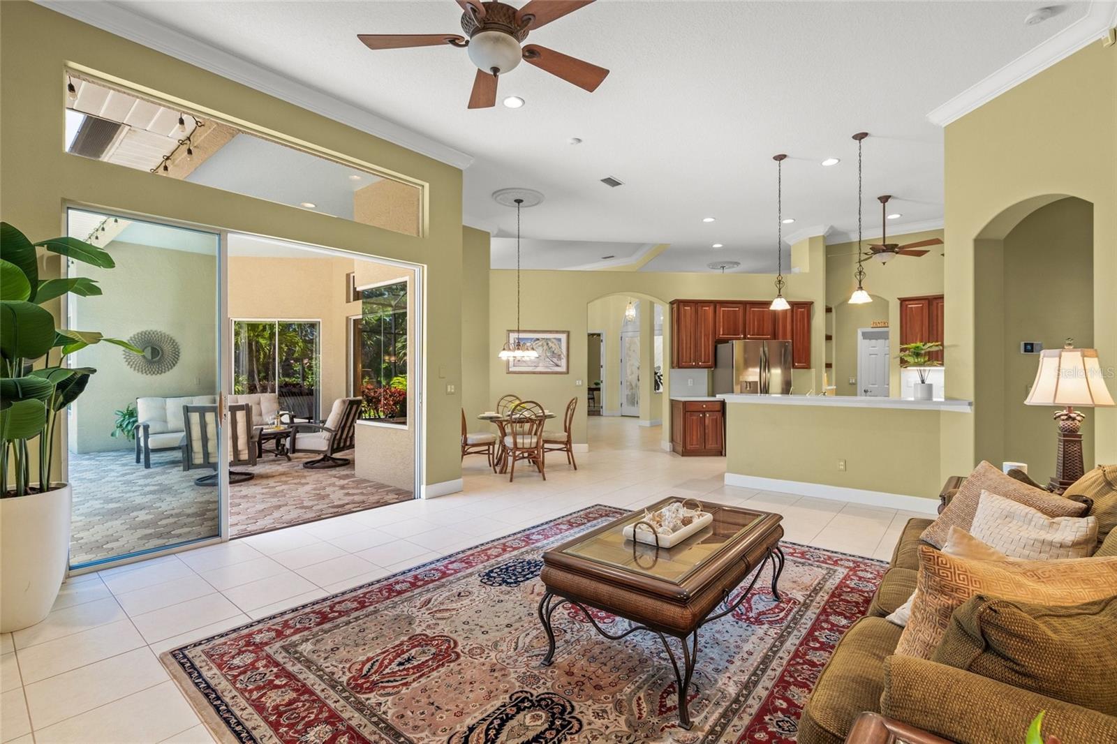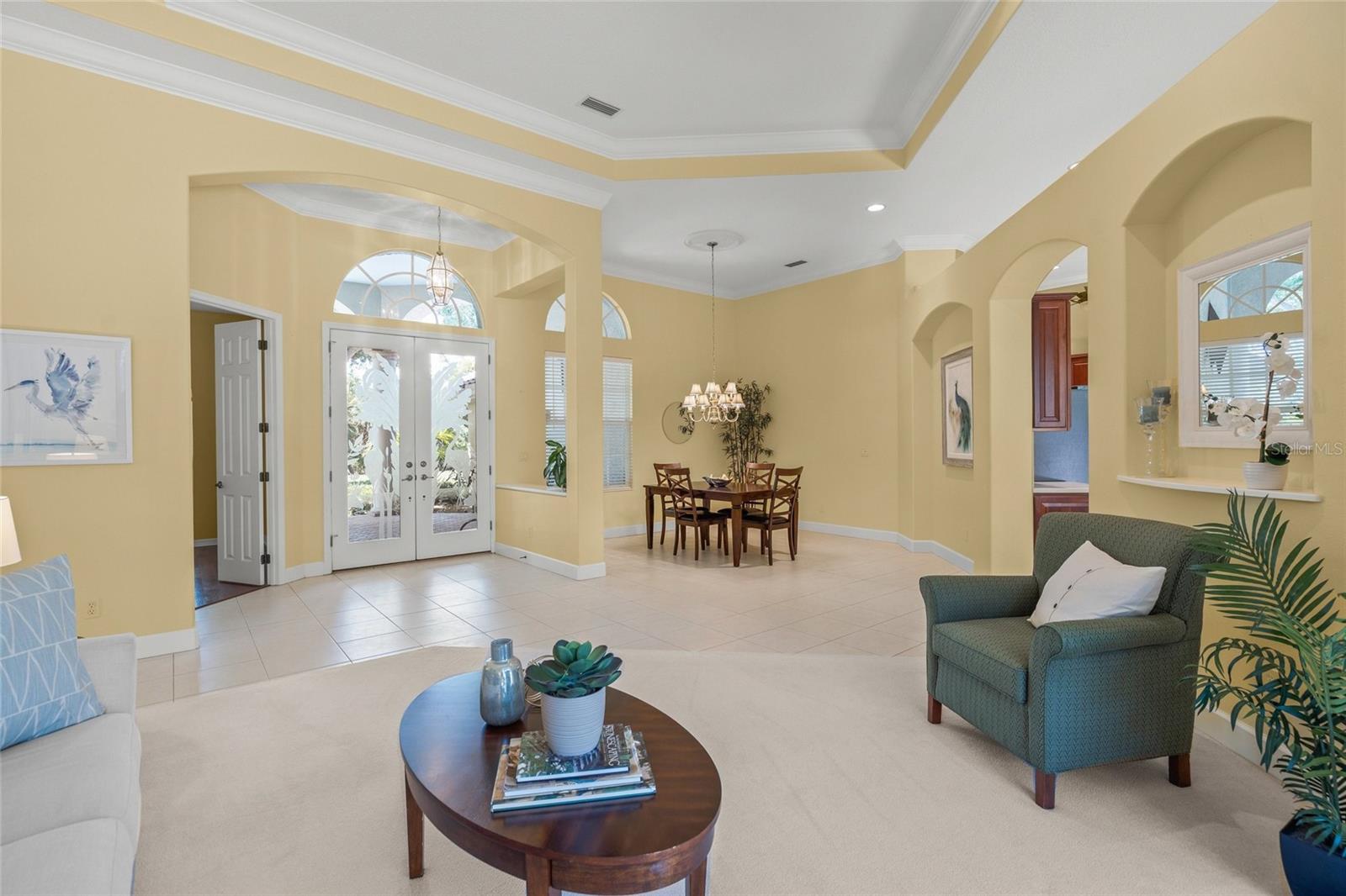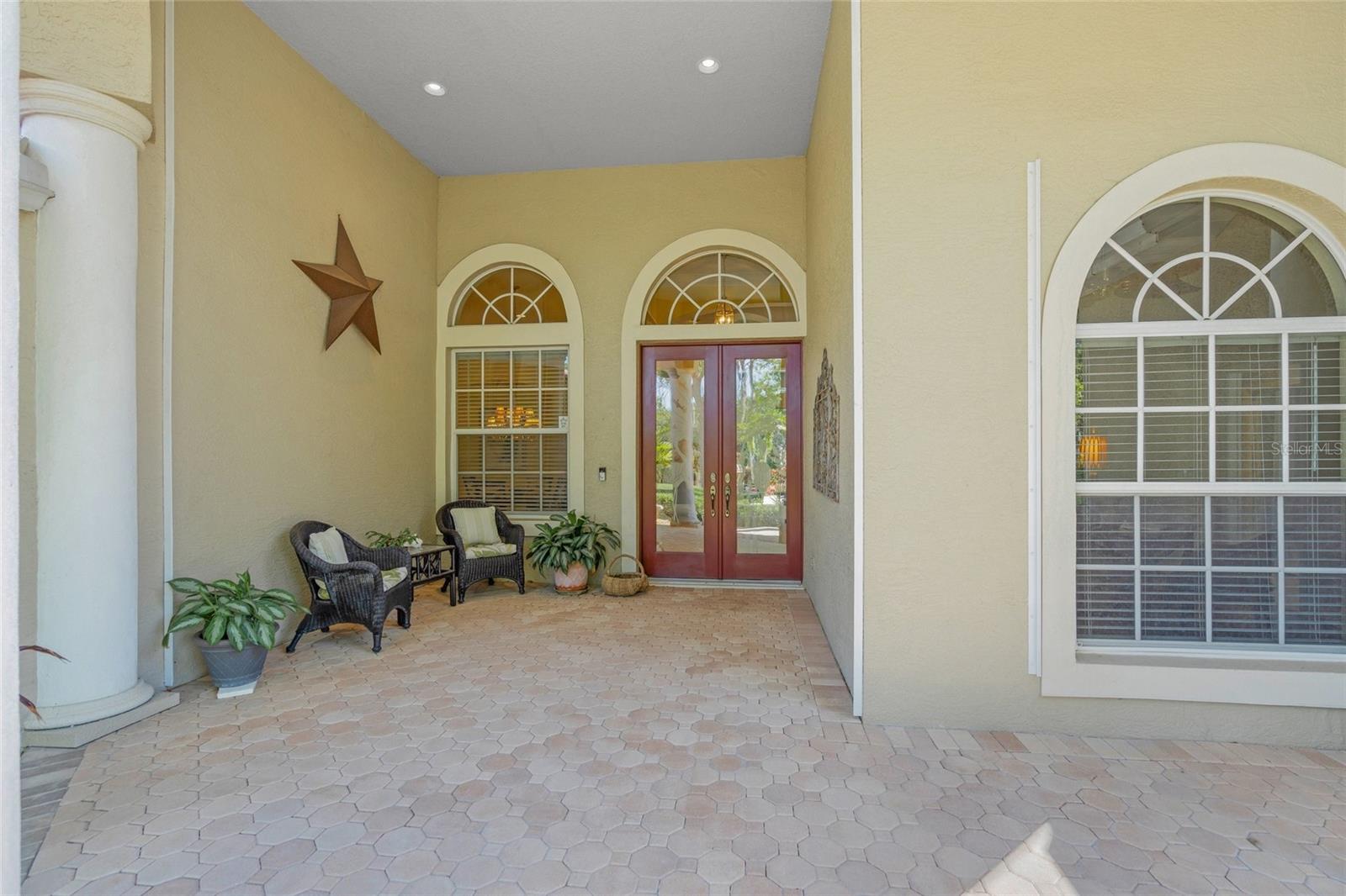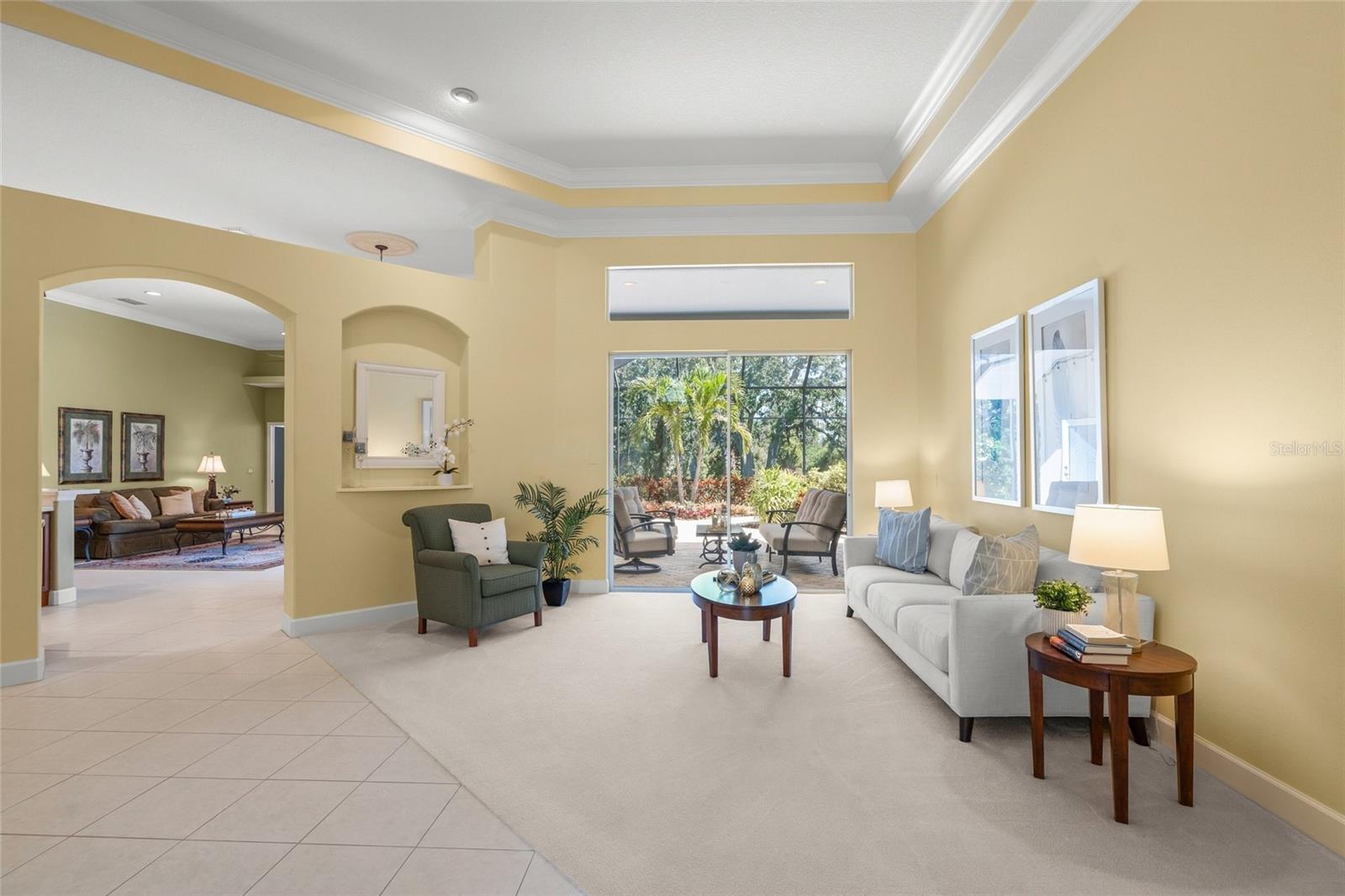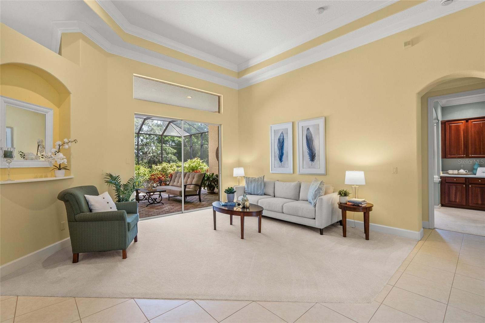 Brand New Tile Roof March 2025. Experience the ultimate in serene living within the picturesque Woodlands of Rivendell, where this stunning residence seamlessly combines the beauty of nature with modern comforts. Bordered by a preserve at the rear and flanked by mature trees across the street, it offers the perfect sanctuary for those seeking tranquility amidst lush greenery. The curb appeal is accentuated by tropical landscaping, a paver driveway and a three-car garage, all leading to a stately arched front patio. Upon entering through the custom artesian etched double doors, you're greeted by an energizing yet tranquil ambiance that defines this unique Lennar Strauss model. Designed with meticulous attention to detail, this spacious home features four bedrooms, three baths and two versatile den/offices, perfect for remote work or quiet study spaces (this area is also ideal for in-law or Au Pair). Expansive layout includes tray ceilings in both the living area and the owner's suite, enhancing the feeling of openness. As you step into the heart of the home, the kitchen impresses with stainless steel appliances, abundant Corian countertops and solid wood cabinetry, complemented by a breakfast bar and informal dining area. The owner's suite is a private retreat complete with a sitting area, coffee bar, patio access and dual closets with custom shelving for optimal organization. The luxurious bath features separated dual sinks, a vanity, a walk-in shower and a relaxing tub. Outdoor living is equally compelling, with an oversized wraparound paver patio that invites you to enjoy the stunning preserve views. The home is designed for seamless indoor-outdoor living, with sliders that pocket away, allowing for a harmonious connection with nature. The serene environment is enriched by a diverse array of birds and wildlife, creating a sense of peaceful coexistence. Practical features include hurricane window protection, an irrigation well and two new air-conditioning units installed around 2022. The location is ideal, situated near top-rated Pine View School, the Legacy Trail, Bay Street Dog Park and an array of shopping, dining and recreational options, including kayaking and boating. With cultural hubs like downtown Sarasota and charming Venice just moments away, as well as access to beautiful Gulf beaches, this home truly offers the best of both worlds. Plus, it's located in a preferred X flood zone with no CDD fees, making it a smart choice for any homeowner.