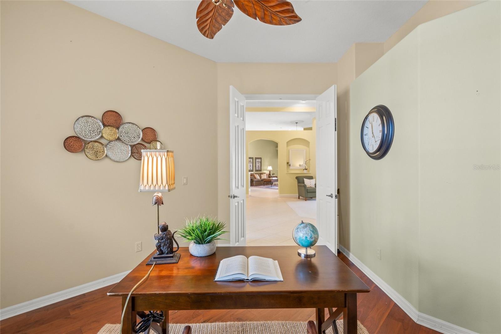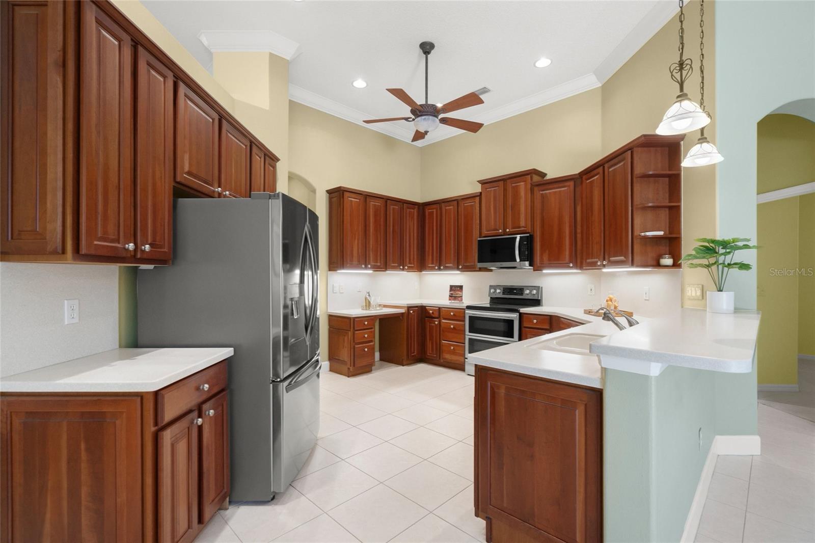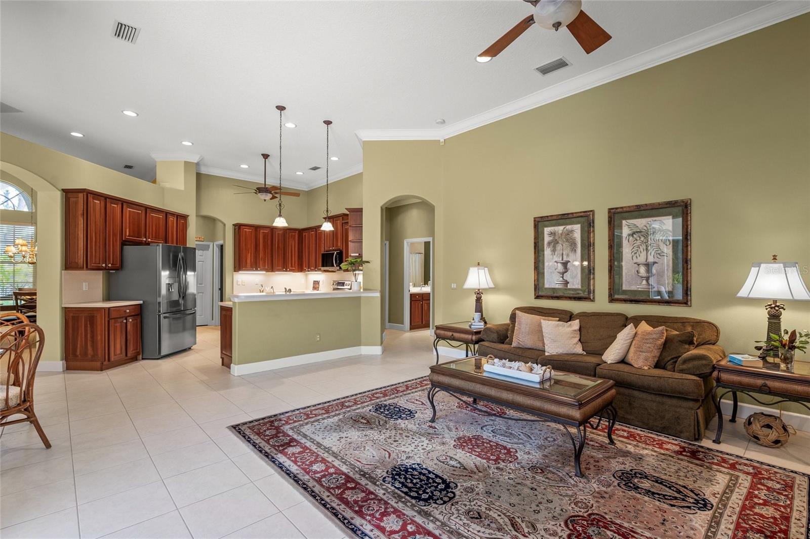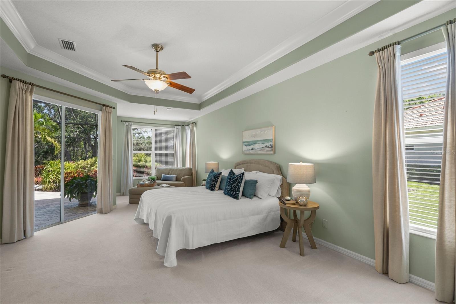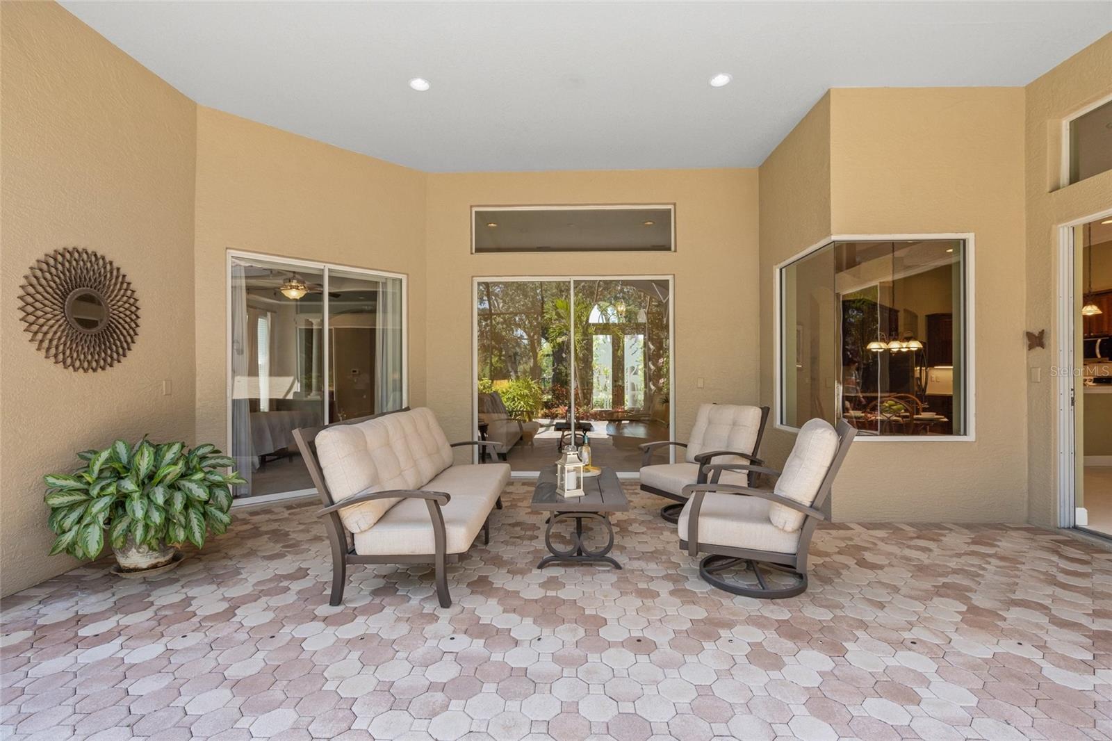 Brand New Tile Roof March 2025. Experience the ultimate in serene living within the picturesque Woodlands of Rivendell, where this stunning residence seamlessly combines the beauty of nature with modern comforts. Bordered by a preserve at the rear and flanked by mature trees across the street, it offers the perfect sanctuary for those seeking tranquility amidst lush greenery. The curb appeal is accentuated by tropical landscaping, a paver driveway and a three-car garage, all leading to a stately arched front patio. Upon entering through the custom artesian etched double doors, you're greeted by an energizing yet tranquil ambiance that defines this unique Lennar Strauss model. Designed with meticulous attention to detail, this spacious home features four bedrooms, three baths and two versatile den/offices, perfect for remote work or quiet study spaces (this area is also ideal for in-law or Au Pair). Expansive layout includes tray ceilings in both the living area and the owner's suite, enhancing the feeling of openness. As you step into the heart of the home, the kitchen impresses with stainless steel appliances, abundant Corian countertops and solid wood cabinetry, complemented by a breakfast bar and informal dining area. The owner's suite is a private retreat complete with a sitting area, coffee bar, patio access and dual closets with custom shelving for optimal organization. The luxurious bath features separated dual sinks, a vanity, a walk-in shower and a relaxing tub. Outdoor living is equally compelling, with an oversized wraparound paver patio that invites you to enjoy the stunning preserve views. The home is designed for seamless indoor-outdoor living, with sliders that pocket away, allowing for a harmonious connection with nature. The serene environment is enriched by a diverse array of birds and wildlife, creating a sense of peaceful coexistence. Practical features include hurricane window protection, an irrigation well and two new air-conditioning units installed around 2022. The location is ideal, situated near top-rated Pine View School, the Legacy Trail, Bay Street Dog Park and an array of shopping, dining and recreational options, including kayaking and boating. With cultural hubs like downtown Sarasota and charming Venice just moments away, as well as access to beautiful Gulf beaches, this home truly offers the best of both worlds. Plus, it's located in a preferred X flood zone with no CDD fees, making it a smart choice for any homeowner.