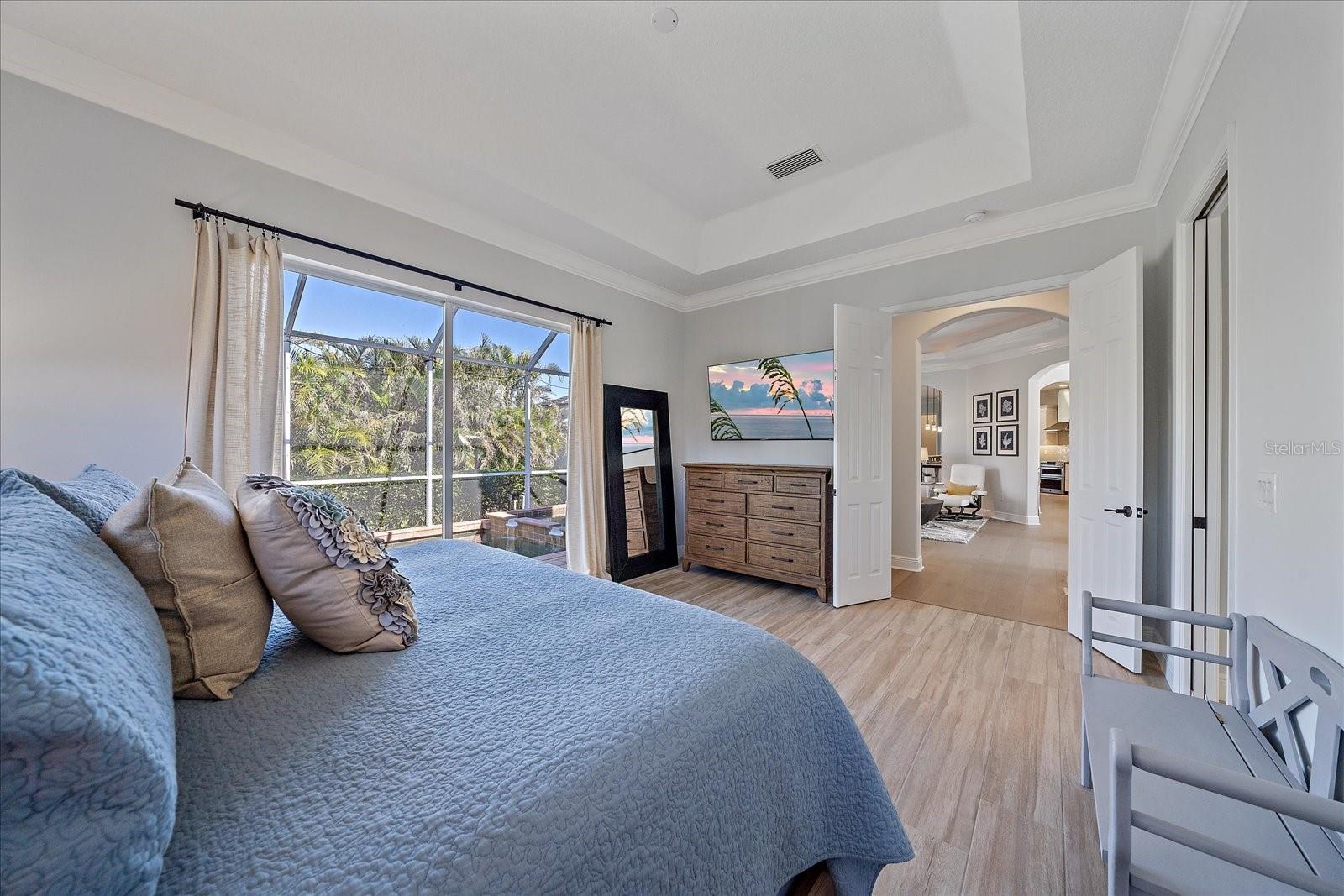 Welcome home to the highly sought after gated waterfront community of South Creek in Osprey FL! This gorgeous home has a nearly COMPLETELY RENOVATED interior with an open and bright kitchen, separate living and dining spaces, and dinette off the kitchen and family room. The home features 4 bedrooms, 3 bathrooms, and a heated pool/spa with covered lanai. There are luxury touches everywhere throughout the home including tray ceilings, crown molding, rounded wall edges, plantation shutters, 8’ doors and arched doorways. The freshly painted interior includes a primary Engineered Hardwood flooring throughout this open floor plan making the home welcoming and bright with plenty of natural light coming through the expansive windows and doors. The family room is open to the kitchen where you'll find 42" shaker soft close cabinets with crown molding, deep drawers, stainless steel appliances with induction cooking, hood vent, dual bowl sink, and high-quality hardware. The countertops are a vibrant quartz with an over-sized island that holds the sink and extra seating for family and friends to relax. The dinette eating space is perfect for informal dining with a view out the aquarium window to the lanai. Your guests will be welcomed by a paver driveway, sidewalk, and country style front porch with seating. Through the double front doors, they’ll be greeted with a foyer and a view into the front living space which is the perfect place for conversation or just relaxing reading a book in front of the electric fireplace with solid wood mantel. Lateral to this room is a dining space for entertaining larger parties and a wet bar and wine chiller. The primary bedroom is king size with ample natural light and a slider which provides access to the lanai. To access the ensuite, you’ll make your way down the hallway which adds separation between rooms where you’ll find dual walk-in closets. The primary bathroom has dual vanities, make-up counter and seat, roomy counter tops, and a custom walk-in over-sized shower with separate freestanding square tub. The three guest bedrooms are of good size with plenty of closet space and natural light. The first guest bathroom combines a bathroom with large walk-in shower and convenient laundry space with stackable washer and dryer ensuring the most efficient use of the space. The second guest bath has a dual-vanity, tub/shower, and adjacent linen closet. The paver lanai/pool deck area is covered and screened to allow for outdoor-indoor living to come alive. The areca palm lined backyard is beneficial for added privacy between homes and is a reminder of the lush and mature landscaping around you. There is an additional outside patio that has been built to fit a 72” outdoor kitchen. The 2-car extended garage is over-sized with garage ceiling racks, side entry door, and a hurricane rated garage door. The exterior has fresh paint, new lighting, security cameras, beautiful landscaping, irrigation system, and hurricane storm panels for every opening. The gated community of South Creek has a low HOA fee and amenities such as a kayak launch, tennis/pickleball court, basketball court, and community boat and fishing dock in the South Creek saltwater canal. Located close to Casey Key, Nokomis and Siesta Key beaches, and the highly ranked Pine View School. Also nearby you’ll find shopping, restaurants, a dog park, and the Legacy bike trail. This home is in the "X" flood zone so flood insurance is optional.