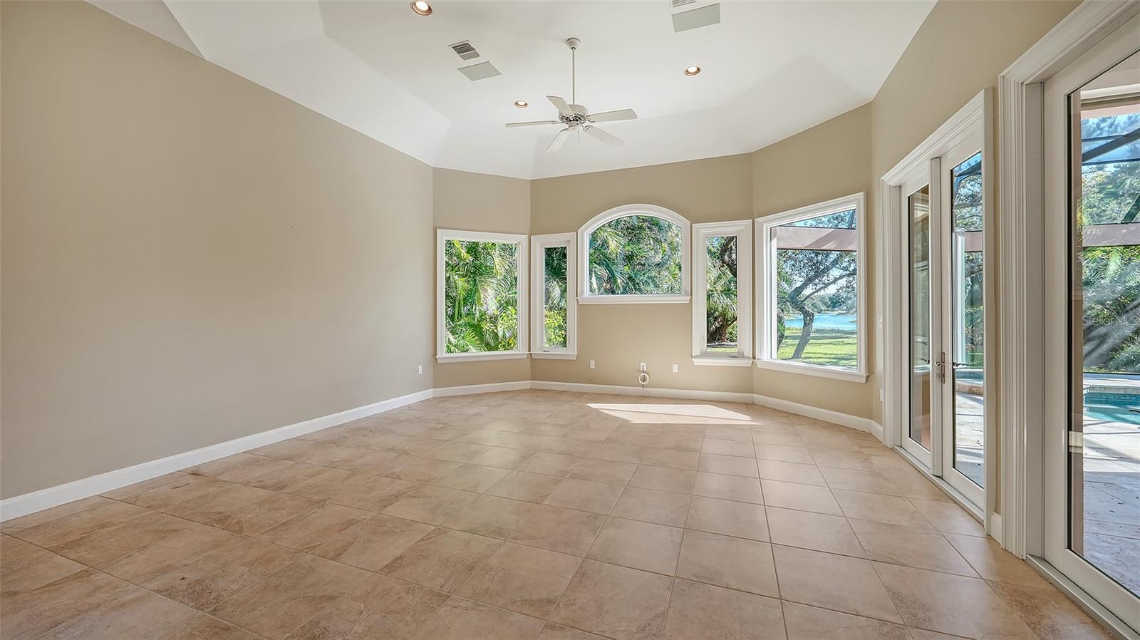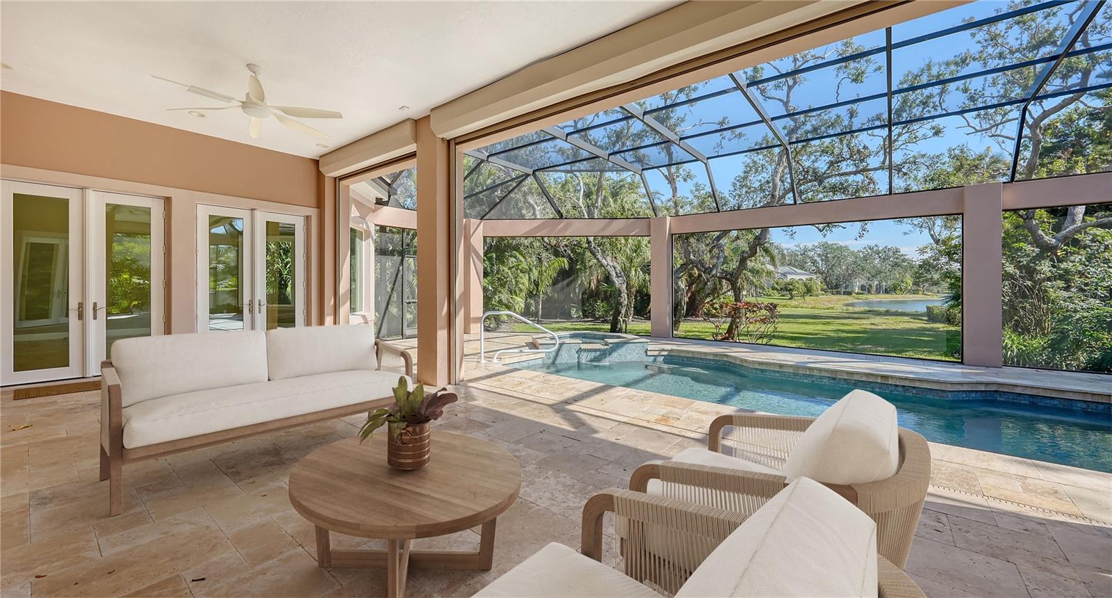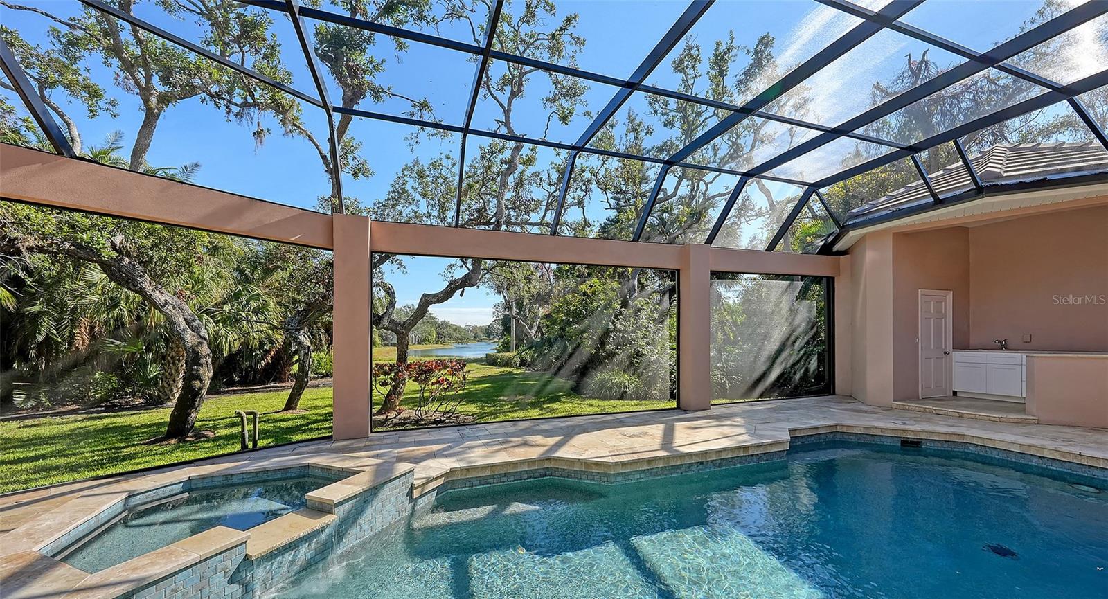 One or more photo(s) has been virtually staged. It is rare to find such an incredible combination of privacy and spectacular views as you will find in this 3 bedroom, 4.5 bath home. Located on a quiet dead-end street in The Oaks Bayside, the traditional design marries beauty with functionality. Step inside and you will be greeted by light-filled space with classic motif. Large windows flood the entire home with natural light. As you explore the interior you will find everything you need to live an incredible, luxury lifestyle. The formal living room features French doors to the lanai, a gas fireplace and built ins. The view from this room is lovely. The kitchen, with tons of neutral cabinetry and miles of counterspace, opens to breakfast area with large windows and a door to the exterior. There is also a full, formal dining room. The master suite is a sanctuary of tranquility, featuring a spacious bedroom, walk-in closet, and an en-suite bathroom with a soaking tub and separate shower. All of the other bathrooms are en-suite as well, and there is a full pool bath, and the guest bath . A dedicated home office provides a quiet retreat for study or work and there is a large laundry room with a window, utility sink, counters and a huge amount of storage space. The outdoor living area is just as incredible, with a large Travertine lanai, a spa, and a pool with new Pebble Tech pool surface, and the pièce de résistance, NEW CLEARVIEW SCREENS, offering drop-dead gorgeous views looking down the lake. The lanai also has KEVLAR HURRICANE AUTOMATIC ROLL DOWNS. Add to this A NEW ROOF, IMPACT WINDOWS AND DOORS, NEW HVAC. This luxury home is more than just a residence; it’s a harmonious blend of beauty, comfort, and functionality, waiting for you to come, add your unique style and make it your own. The Oaks Bayside is located on the west side of Tamiami Trail, on the banks of Little Sarasota Bay. Surrounded by Historic Spanish Point and conservation land, it enjoys a tranquil, natural setting. There is a community dock for use by residents; fish, launch a kayak or just sit quietly and watch the daily show of glorious color put on by the evening sunsets. The Oaks Club has two golf courses, a driving range, 12 HAR TRU tennis courts (4 lighted), 4 pickleball courts, croquet court, a WellFit center, and 3 onsite restaurants. Club membership is required with homeownership.