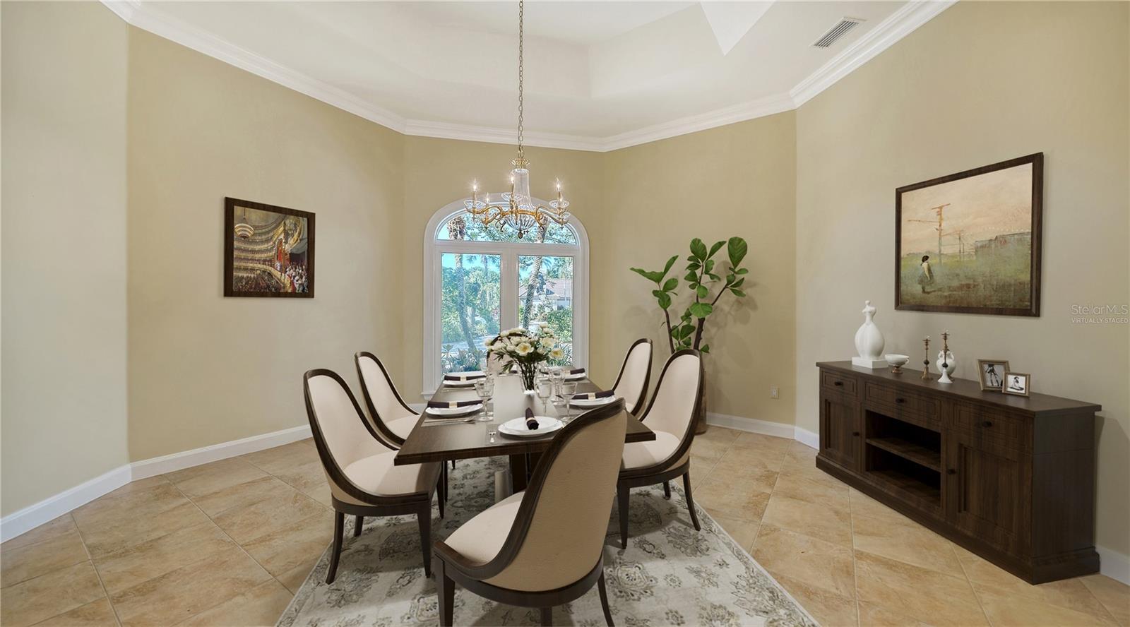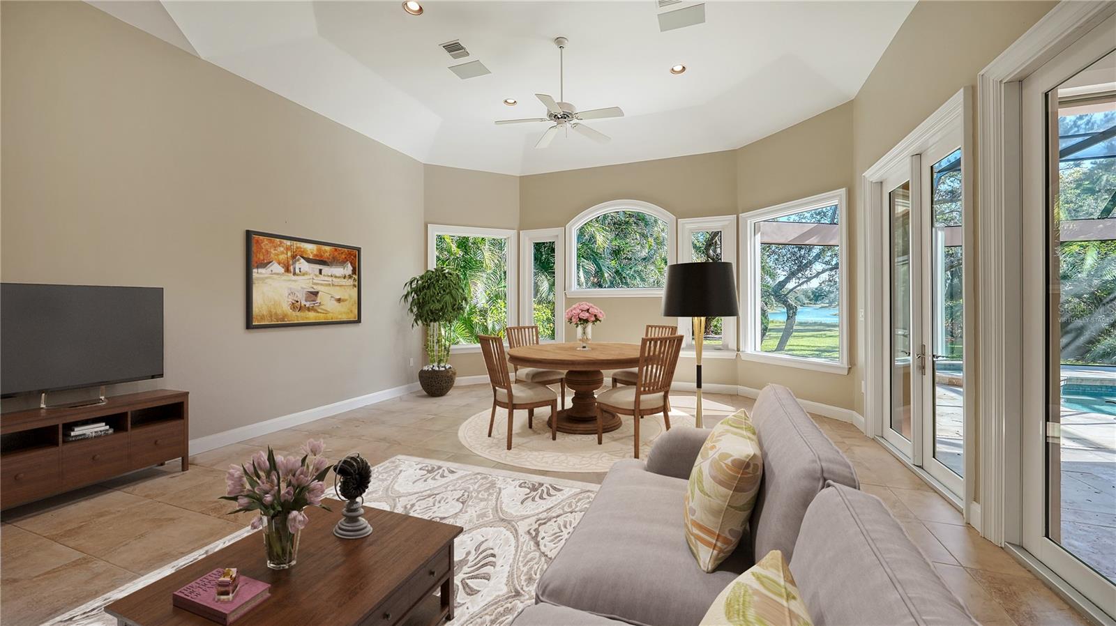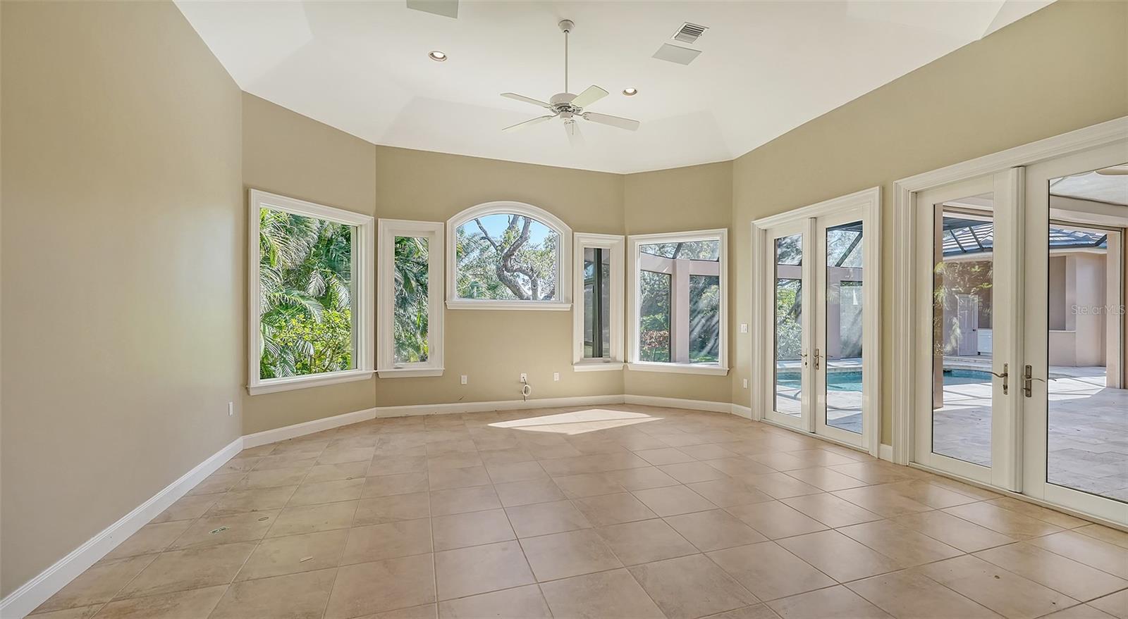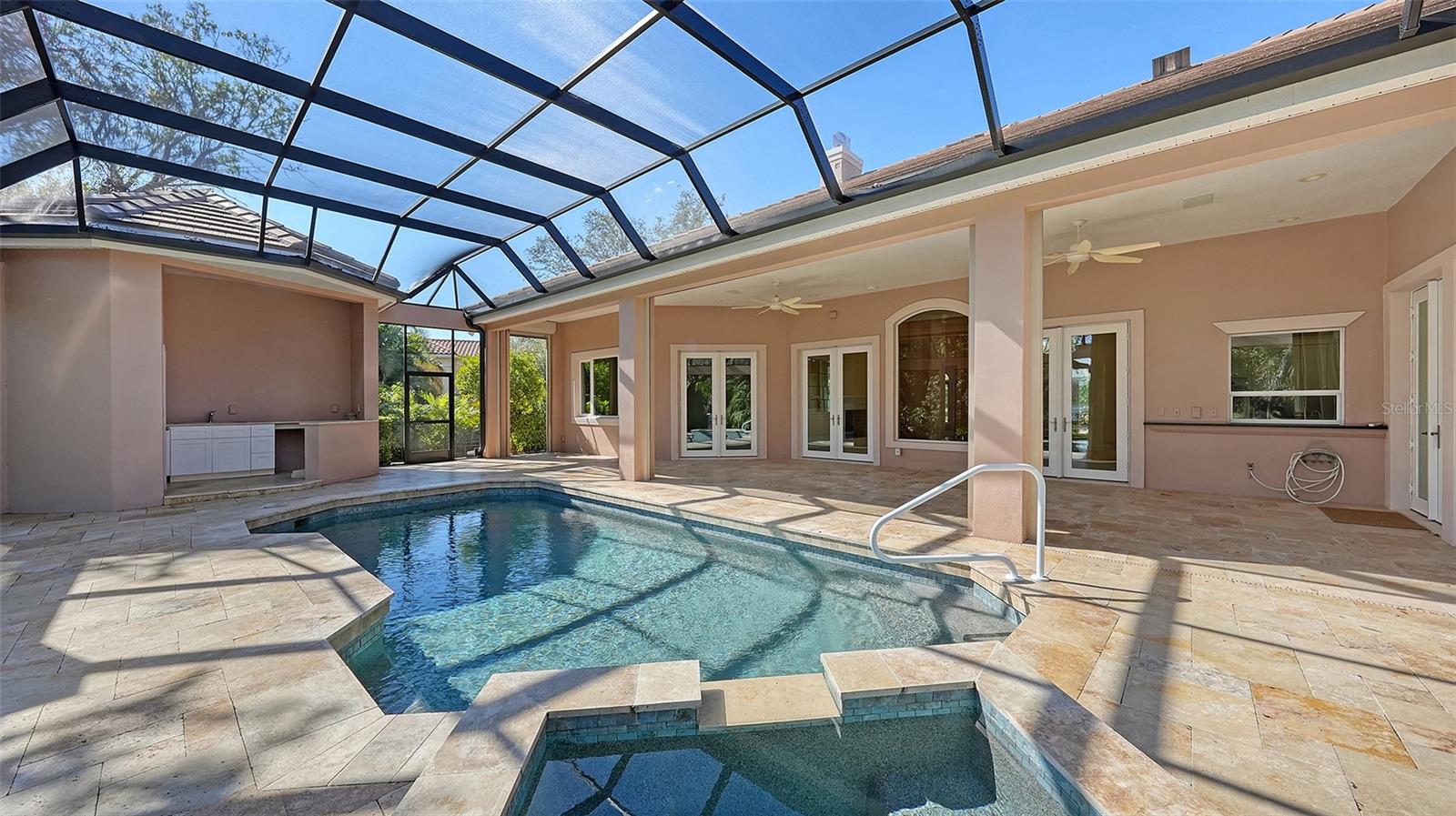 One or more photo(s) has been virtually staged. It is rare to find such an incredible combination of privacy and spectacular views as you will find in this 3 bedroom, 4.5 bath home. Located on a quiet dead-end street in The Oaks Bayside, the traditional design marries beauty with functionality. Step inside and you will be greeted by light-filled space with classic motif. Large windows flood the entire home with natural light. As you explore the interior you will find everything you need to live an incredible, luxury lifestyle. The formal living room features French doors to the lanai, a gas fireplace and built ins. The view from this room is lovely. The kitchen, with tons of neutral cabinetry and miles of counterspace, opens to breakfast area with large windows and a door to the exterior. There is also a full, formal dining room. The master suite is a sanctuary of tranquility, featuring a spacious bedroom, walk-in closet, and an en-suite bathroom with a soaking tub and separate shower. All of the other bathrooms are en-suite as well, and there is a full pool bath, and the guest bath . A dedicated home office provides a quiet retreat for study or work and there is a large laundry room with a window, utility sink, counters and a huge amount of storage space. The outdoor living area is just as incredible, with a large Travertine lanai, a spa, and a pool with new Pebble Tech pool surface, and the pièce de résistance, NEW CLEARVIEW SCREENS, offering drop-dead gorgeous views looking down the lake. The lanai also has KEVLAR HURRICANE AUTOMATIC ROLL DOWNS. Add to this A NEW ROOF, IMPACT WINDOWS AND DOORS, NEW HVAC. This luxury home is more than just a residence; it’s a harmonious blend of beauty, comfort, and functionality, waiting for you to come, add your unique style and make it your own. The Oaks Bayside is located on the west side of Tamiami Trail, on the banks of Little Sarasota Bay. Surrounded by Historic Spanish Point and conservation land, it enjoys a tranquil, natural setting. There is a community dock for use by residents; fish, launch a kayak or just sit quietly and watch the daily show of glorious color put on by the evening sunsets. The Oaks Club has two golf courses, a driving range, 12 HAR TRU tennis courts (4 lighted), 4 pickleball courts, croquet court, a WellFit center, and 3 onsite restaurants. Club membership is required with homeownership.