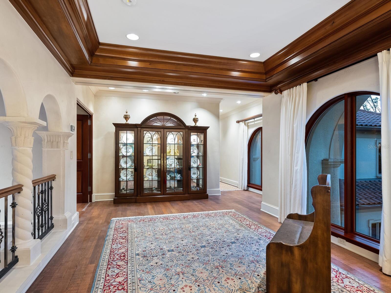 This classically designed estate is privately positioned on north end of Casey Key, considered among the most treasured addresses in Sarasota County. The property spans from a sandy walking beach on the Gulf to a rare covered boat dock on Blackburn Bay. Designed by renowned architect Clifford A. Scholz and built by Delta Southern Construction, over 8,000 square feet designed to celebrate family and guests, this is a residence that inspire togetherness and embodies the art of waterfront living. Crafted with luxury finishes and modern conveniences, the property is built to exacting coastal standards with dramatic focus on stunning water views. Formal and casual spaces unite elegantly, including the living room with cypress beamed ceilings, overlooking the bay. A deluxe kitchen, wine, butler’s pantry and wet bar provide a canvas for culinary exploration and entertaining elegance. A grand media room for screening films provides the ideal place to unite music and culture. The expansive primary bedroom features a sitting room, lavish bath, dual closets, a breakfast nook and expansive views over the water. Three additional bedroom suites provide privacy, views and spacious accommodations. The fifth bedroom suite is equipped for a home gym, steam room and sauna. The office and library, next to the grand marble staircase, features leaded glass doors, hand crafted, built-in shelving, a coffered ceiling and beautiful views of the Gulf. Additional space for recreation and relaxation has been accomplished to make use of every inch of the estate. Arched hallways and French doors line the living room, open to the dazzling outdoor spaces and stone terraces lead to the infinity pool. Elevator access and garages for six vehicles add ultimate convenience. Enjoy boating from the deep-water dock which features a rare and grandfathered-in covered boat lift. North Casey Key is a haven of exclusivity and serenity, minutes from shopping, world-class golf, tennis and dining.