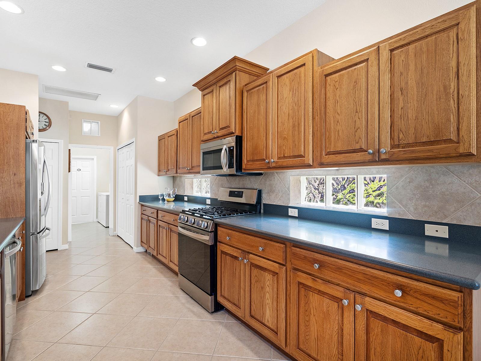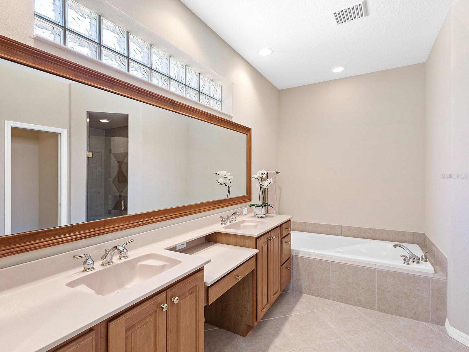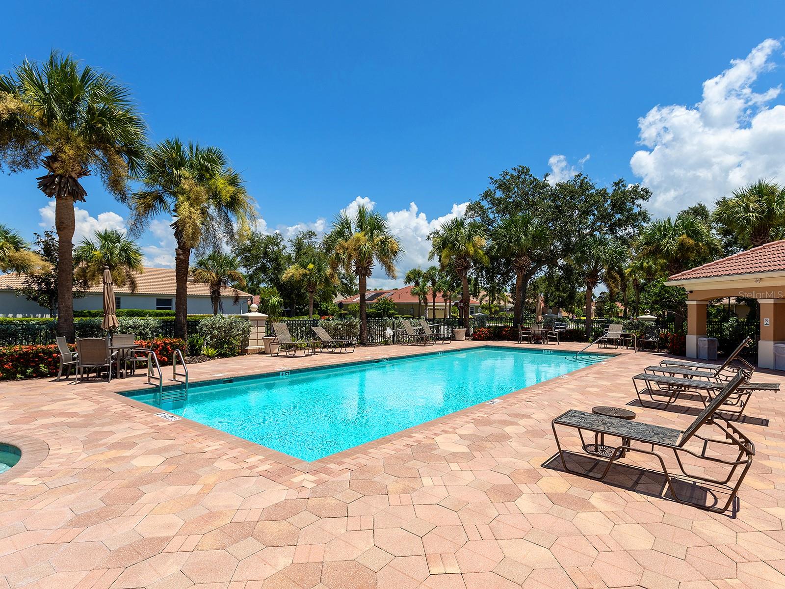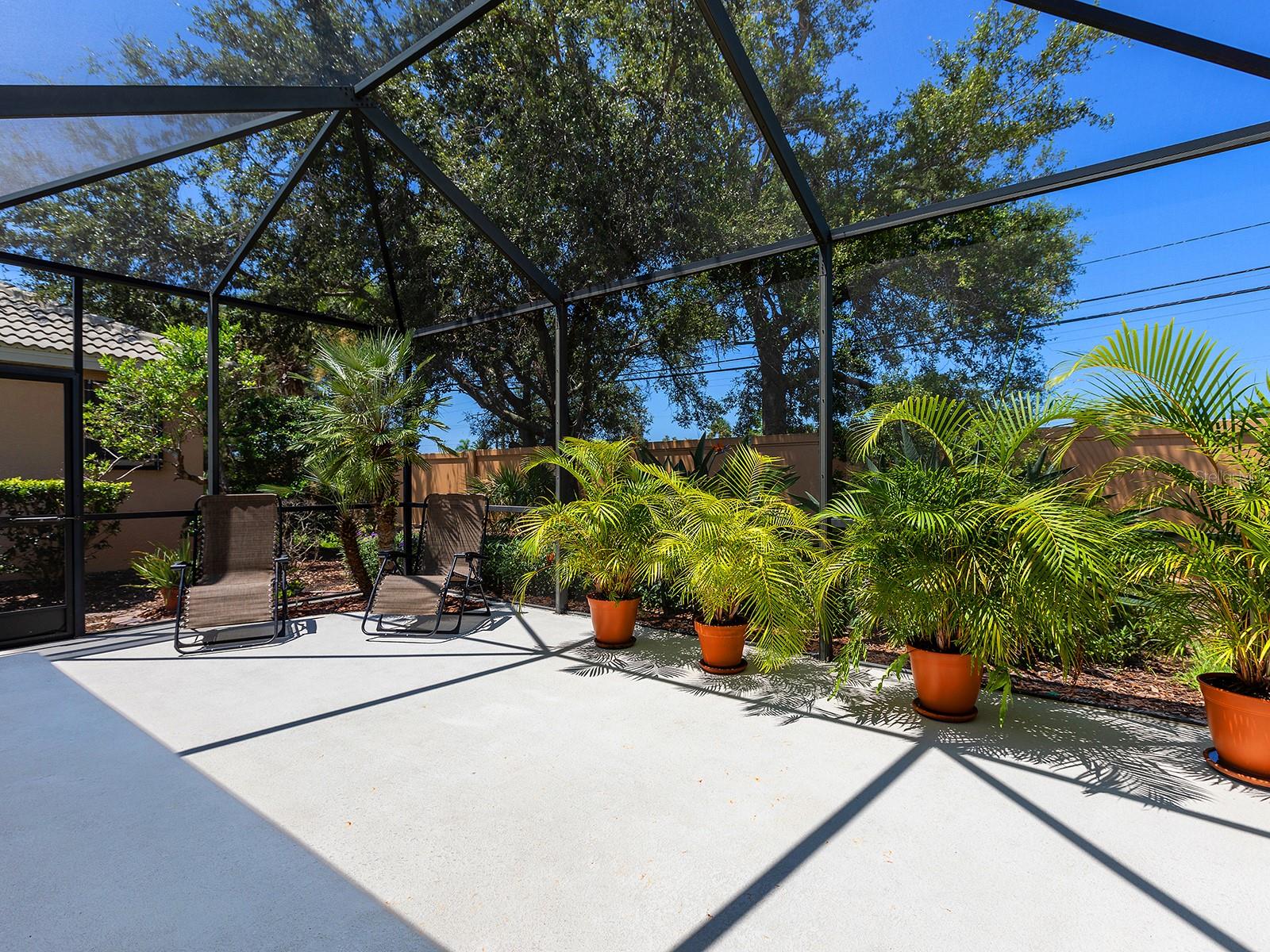 Welcome to a beautiful residence where comfort, privacy, and functionality come together seamlessly. A paver driveway, tile roof, mature landscaping, and a charming paver walkway set the tone as you arrive, leading to an inviting French door entry framed by a transom window. Inside, tile floors stretch through the main living areas, beginning with a light-filled foyer adorned with a chandelier. Flowing effortlessly into the heart of the home, the dining area offers an elegant setting for entertaining, complete with a chandelier and a niche perfectly sized for a buffet or credenza. The adjacent great room impresses with a wall of sliding glass doors, double tray ceilings, recessed lighting, a ceiling fan, and a built-in media niche, creating a bright and open space ideal for everyday living. The kitchen is both stylish and practical, featuring warm wood cabinetry, solid surface countertops, a glass block window in the backsplash for additional natural light, and an eat-in area with a picturesque aquarium window. A breakfast bar provides casual seating, and two closet pantries offer ample storage. The kitchen is outfitted with LG stainless steel appliances, including a range, microwave, dishwasher, and refrigerator. Tucked privately at the back of the home, the spacious primary suite offers a serene retreat with a tray ceiling, multiple windows, and a cozy sitting area with sliders opening to the lanai. Two walk-in closets provide generous storage, while the en-suite bathroom includes a large vanity with two sinks and a makeup area, a soaking tub, walk-in shower with bench seating, a framed mirror, water closet, and a glass block transom window that brightens the space. Just off the foyer, a pocket door leads to a private guest wing that includes a full bathroom with a tub/shower combo, vanity, and tile flooring, as well as a spacious guest bedroom featuring plush carpet, plantation shutters, and a generous closet. The second guest bedroom, located just across the foyer with double doors, is currently set up as a home office but offers flexibility as a guest room, complete with its own closet and a large window. Additional highlights include a well-appointed laundry room with a sink, cabinet workspace, shelving, storage closet, and central vacuum system, plus a tile floor and pocket door for added convenience. Step outside to a covered lanai with sitting and dining areas, ceiling fan, and plenty of room to relax or entertain, all surrounded by lush, mature landscaping for enhanced privacy and tranquility. Willowbend is a maintenance-free neighborhood rich in amenities, including a clubhouse with fitness center, playground, pickleball courts, and a large, heated pool available to all homeowners. All this plus lawn maintenance (including weeding, trimming, sprinklers and irrigation), cable TV, and internet. This fantastic location is ideally near downtown Venice, Sarasota, Siesta Key, Casey Key and Nokomis Beach—offering easy access to beaches, cultural attractions, shopping, and dining. Also nearby is the Legacy Trail, Oscar Scherer State Park, Pine View School, and award-winning Gulf beaches.