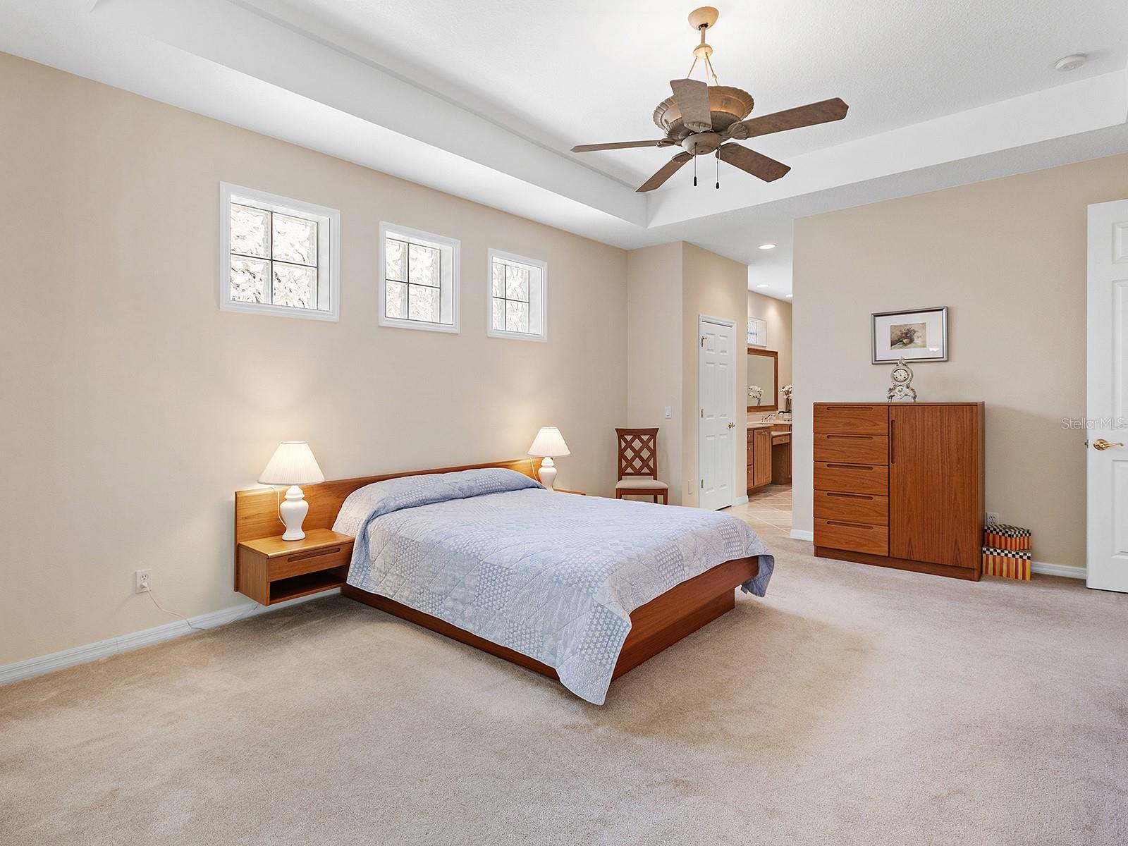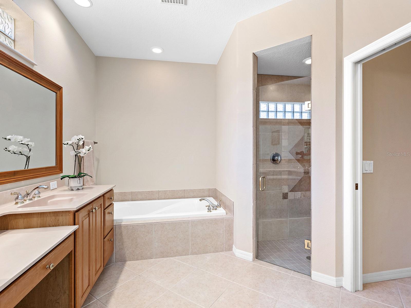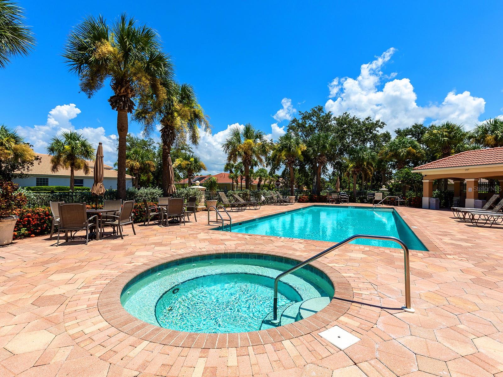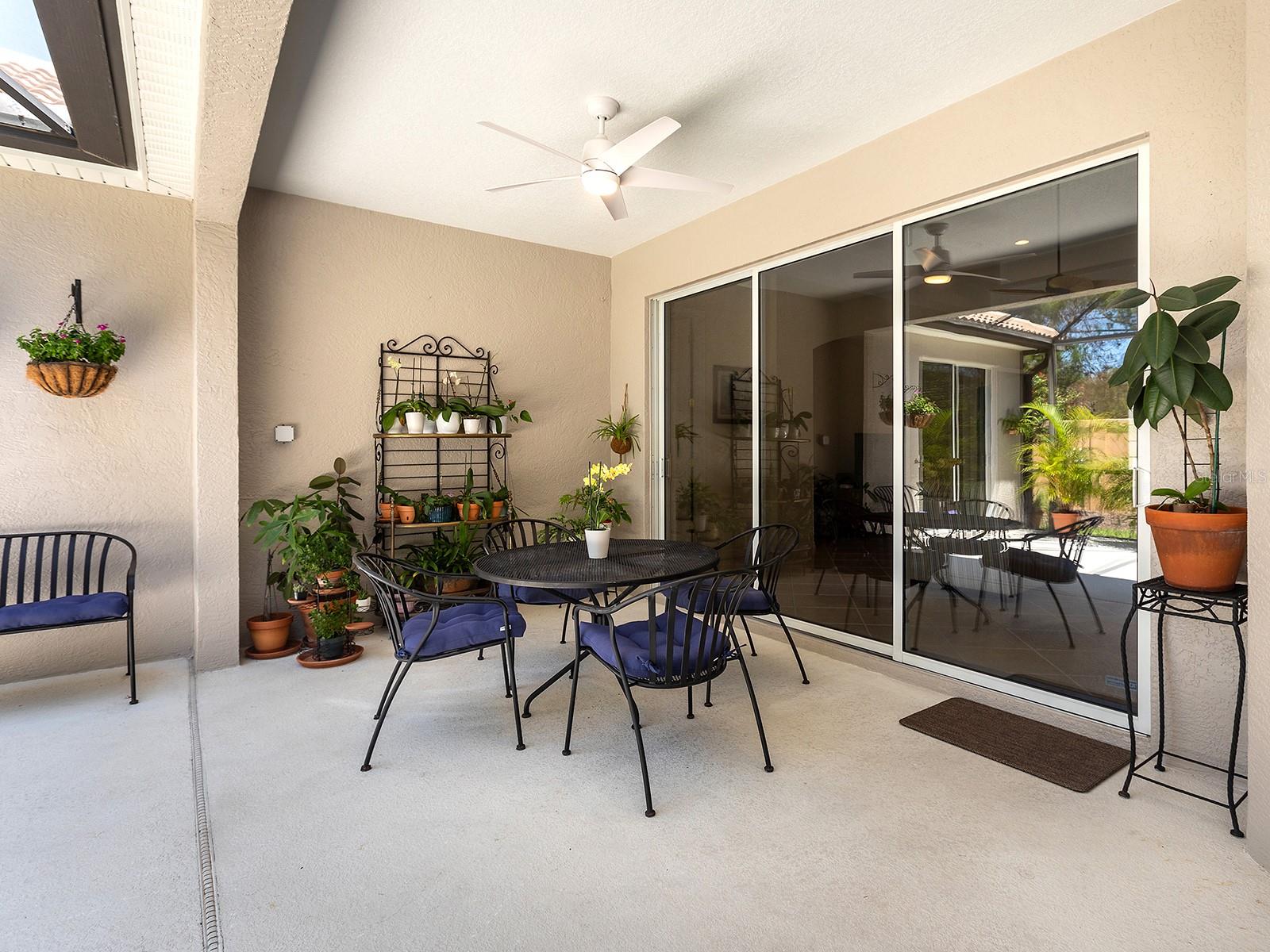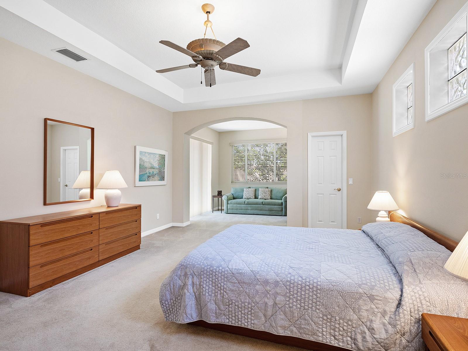 Welcome to a beautiful residence where comfort, privacy, and functionality come together seamlessly. A paver driveway, tile roof, mature landscaping, and a charming paver walkway set the tone as you arrive, leading to an inviting French door entry framed by a transom window. Inside, tile floors stretch through the main living areas, beginning with a light-filled foyer adorned with a chandelier. Flowing effortlessly into the heart of the home, the dining area offers an elegant setting for entertaining, complete with a chandelier and a niche perfectly sized for a buffet or credenza. The adjacent great room impresses with a wall of sliding glass doors, double tray ceilings, recessed lighting, a ceiling fan, and a built-in media niche, creating a bright and open space ideal for everyday living. The kitchen is both stylish and practical, featuring warm wood cabinetry, solid surface countertops, a glass block window in the backsplash for additional natural light, and an eat-in area with a picturesque aquarium window. A breakfast bar provides casual seating, and two closet pantries offer ample storage. The kitchen is outfitted with LG stainless steel appliances, including a range, microwave, dishwasher, and refrigerator. Tucked privately at the back of the home, the spacious primary suite offers a serene retreat with a tray ceiling, multiple windows, and a cozy sitting area with sliders opening to the lanai. Two walk-in closets provide generous storage, while the en-suite bathroom includes a large vanity with two sinks and a makeup area, a soaking tub, walk-in shower with bench seating, a framed mirror, water closet, and a glass block transom window that brightens the space. Just off the foyer, a pocket door leads to a private guest wing that includes a full bathroom with a tub/shower combo, vanity, and tile flooring, as well as a spacious guest bedroom featuring plush carpet, plantation shutters, and a generous closet. The second guest bedroom, located just across the foyer with double doors, is currently set up as a home office but offers flexibility as a guest room, complete with its own closet and a large window. Additional highlights include a well-appointed laundry room with a sink, cabinet workspace, shelving, storage closet, and central vacuum system, plus a tile floor and pocket door for added convenience. Step outside to a covered lanai with sitting and dining areas, ceiling fan, and plenty of room to relax or entertain, all surrounded by lush, mature landscaping for enhanced privacy and tranquility. Willowbend is a maintenance-free neighborhood rich in amenities, including a clubhouse with fitness center, playground, pickleball courts, and a large, heated pool available to all homeowners. All this plus lawn maintenance (including weeding, trimming, sprinklers and irrigation), cable TV, and internet. This fantastic location is ideally near downtown Venice, Sarasota, Siesta Key, Casey Key and Nokomis Beach—offering easy access to beaches, cultural attractions, shopping, and dining. Also nearby is the Legacy Trail, Oscar Scherer State Park, Pine View School, and award-winning Gulf beaches.