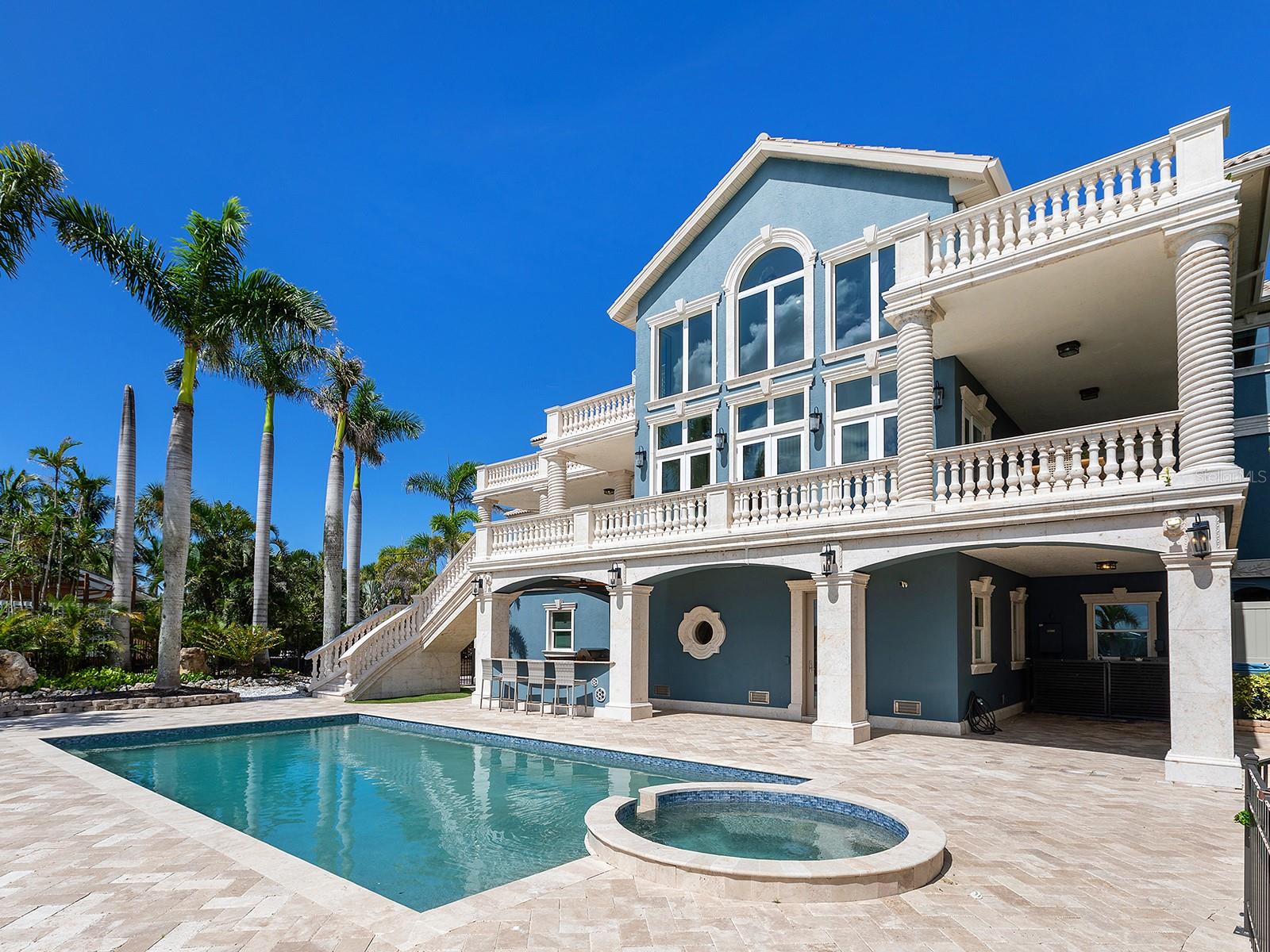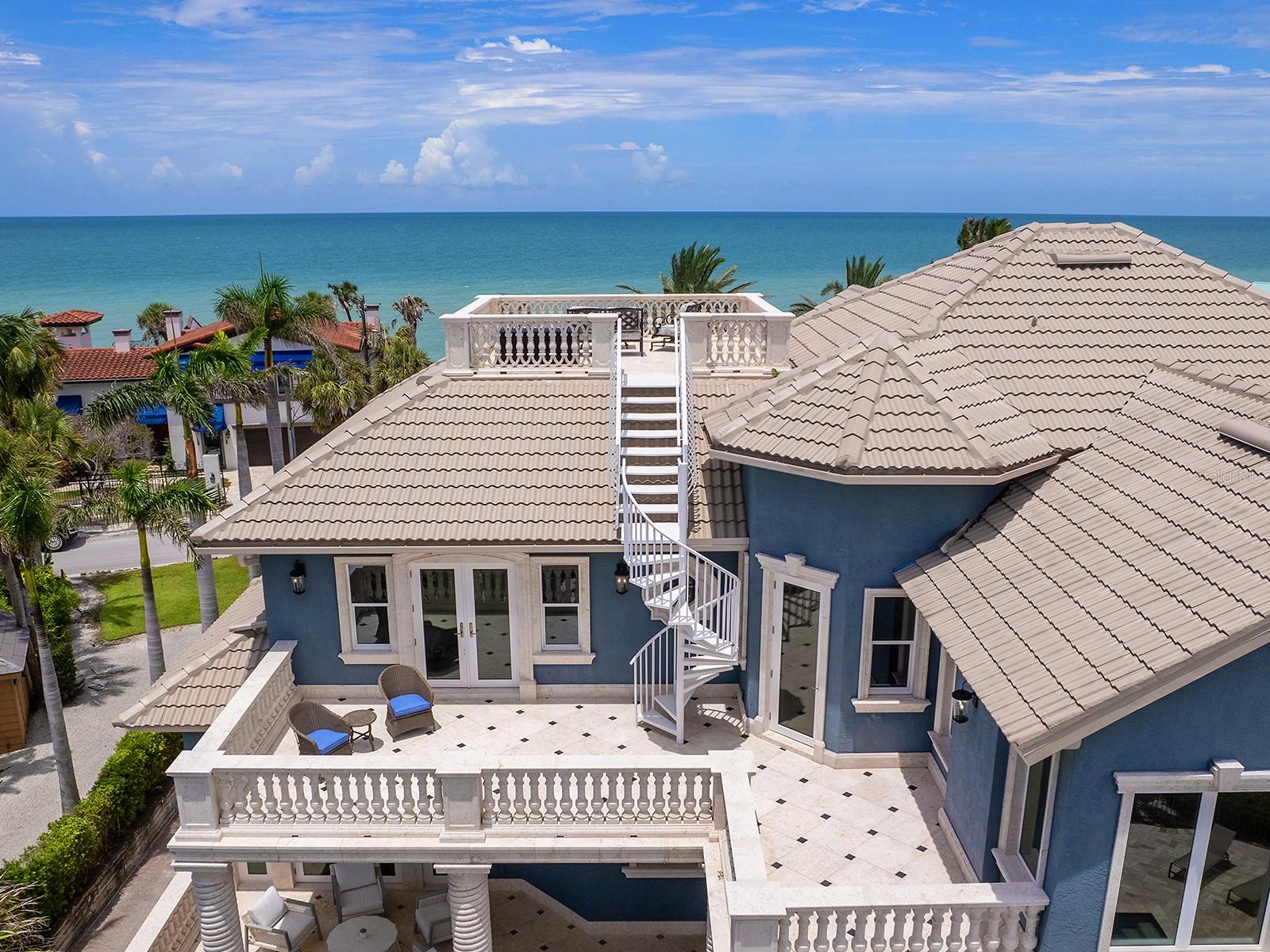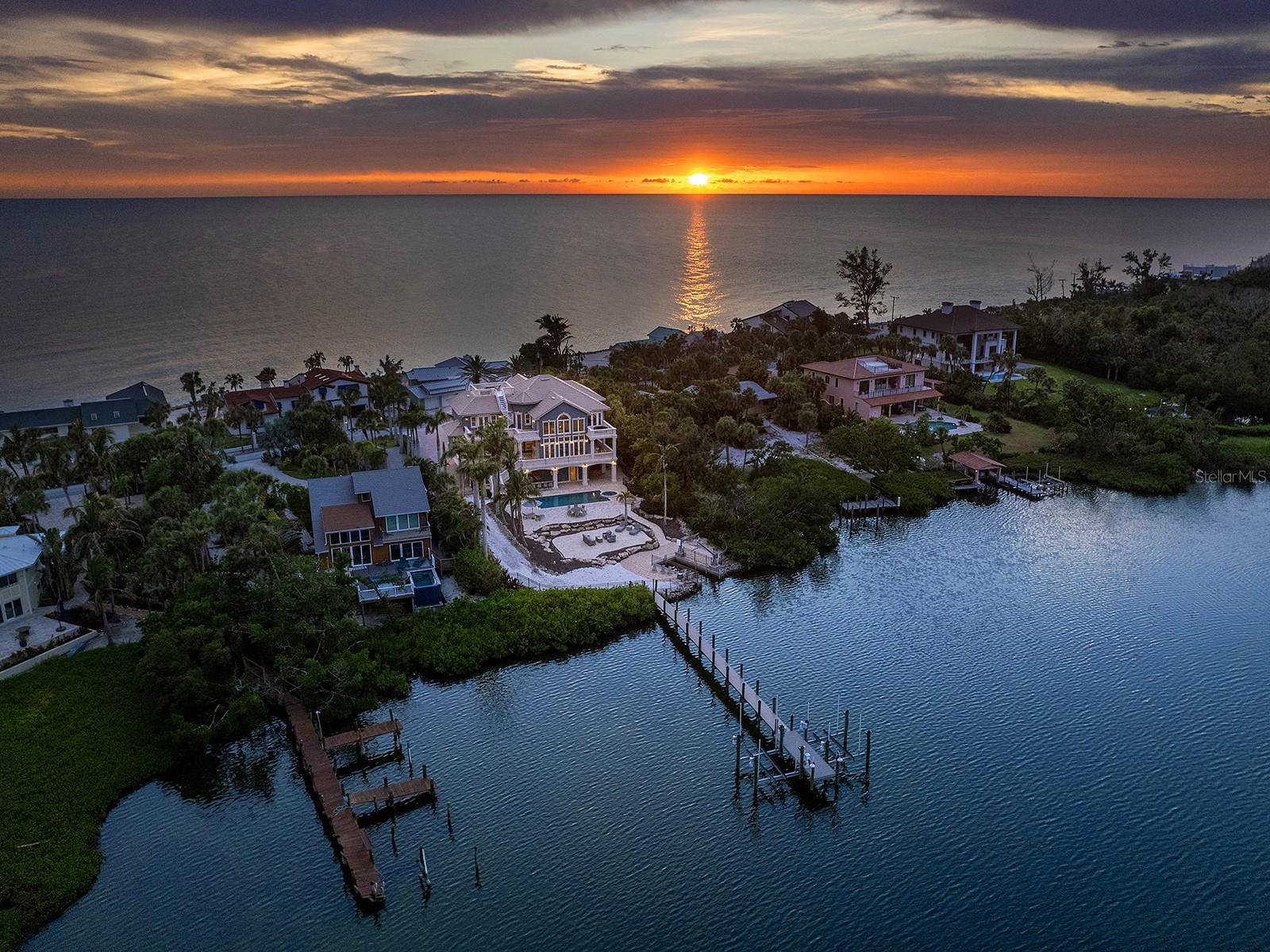 Located on the exclusive stretch of North Casey Key, this private waterfront estate offers a rare blend of resort-style living, protected boating water, and direct Gulf beach access in one of Sarasota County’s most coveted coastal enclaves. Set on over half an acre along Little Sarasota Bay, this durably constructed residence, engineered for strength and storm protection, delivers a private, resort-style waterfront lifestyle defined by mature tropical landscaping, sweeping views of the Intracoastal Waterway and the Gulf of America, and exceptional privacy. With a private beach easement providing direct Gulf access and a 100-foot dock featuring dual 12,000-lb lifts, water, electric, and deep-water Intracoastal access, this property is truly a boater’s dream offering the best of both Gulf and bay living. Inside, dramatic water views greet you through expansive windows, filling the home with natural light and anchoring the open great room with coffered ceilings, custom millwork, and seamless indoor-outdoor living. The 2020-renovated kitchen showcases Cambria quartz countertops, custom cabinetry, premium stainless appliances, and an entertainer’s bar complete with wine refrigerator and ice maker. Designed for both comfort and retreat, the home offers two luxurious primary suites with spa-inspired baths and private terraces, additional guest suites, a dedicated office, elevator, and impact-rated windows and doors throughout. Outdoor spaces evoke a boutique resort experience, featuring a refinished pool, expanded travertine patios, tiered terraces, lush tropical plantings, and a rooftop deck with panoramic Gulf and bay views—perfect for sunset entertaining. Additional highlights include a three-car garage, whole-house generator, and extensive interior and exterior updates. Ideally located just minutes from Downtown Venice and Sarasota, residents enjoy easy access to renowned dining, shopping, cultural events, and convenient regional and international airports. A rare opportunity to own a private waterfront estate on North Casey Key combining private beach access, effortless boating, and refined coastal living.