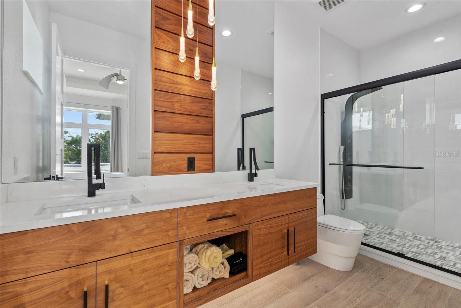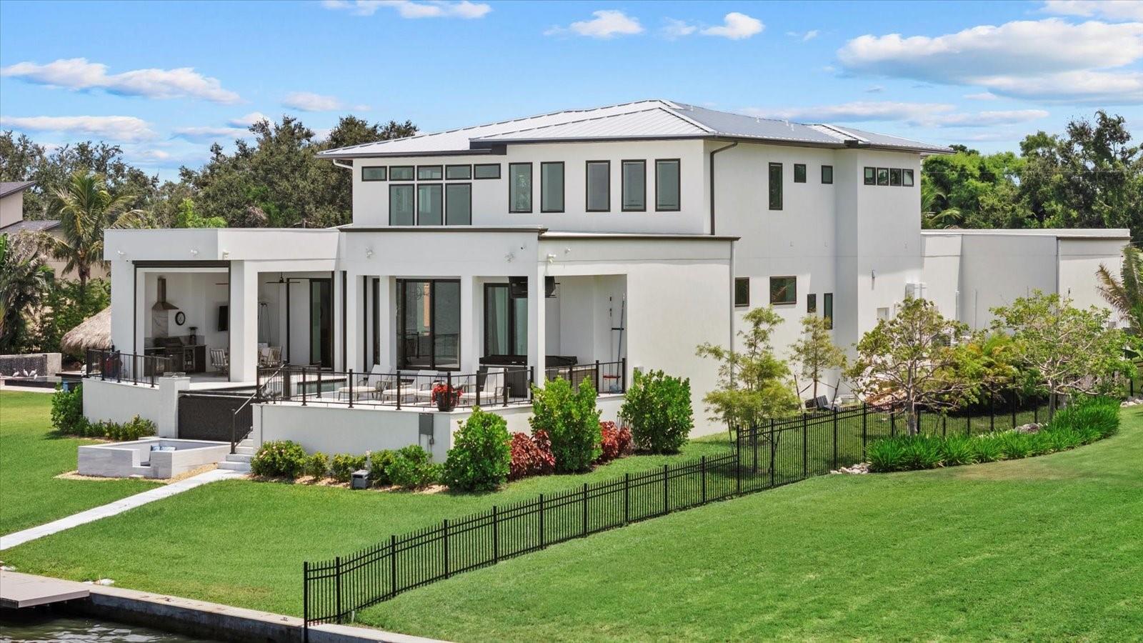 New Seawall / Waterside deck, New Automated Gate, Lanai Automated Screens Commanding over half an acre with 116 feet of pristine frontage on Little Sarasota Bay, this brand-new custom estate captures the essence of coastal luxury. From the moment you arrive, you are greeted by sweeping water views and spectacular Casey Key sunsets, setting the stage for an extraordinary lifestyle. Designed for the boating connoisseur, the property boasts a new dock with water, electric, a 20,000 lb boat lift, and direct bay access—no bridges to the Gulf. For the automotive enthusiast, a 1,400 sq. ft. climate-controlled garage with 14-ft ceilings, professional-grade car lifts, epoxy floors, perfect showcase for your collection. Inside, the home flows across two levels with 3 ensuite bedrooms, 4.5 baths, an office, and a dramatic 24-ft coffered ceiling living room. The chef’s kitchen is an entertainer’s dream, featuring two massive islands, bespoke Yoder cabinetry with stainless steel inlays, and Bertazzoni appliances imported from Italy. The primary suite is a private retreat with a spa-inspired bath, custom walnut cabinetry, dual shower with body jets, and a grand walk-in closet. Each guest suite offers its own spa-like bath. Constructed with poured concrete walls coated in Styrofoam and stucco for superior soundproofing, this residence offers both durability and comfort. Additional features include two central A/C systems, top-of-the-line sound and camera security, hurricane-resistant 14-ft ASL garage door, computerized pool controls, custom floors, bar area, 1,000-gallon LP tank, and UV-protected screens. Outdoor living is nothing short of exceptional, a custom waterfall pool (oriented east–west for optimal sun), spa, fire bowls, LED-lit fountain, and a full pool bath create the ultimate entertaining environment with an unforgettable bayfront backdrop. The new fenced and paved driveway ensures privacy and curb appeal, while the turnkey condition makes it move-in ready. Located just minutes from Casey Key, Siesta Key Beach, and the A+ rated Pine View School, this estate is more than a home, it’s a statement of refined living, where boating, entertaining, and coastal elegance converge.