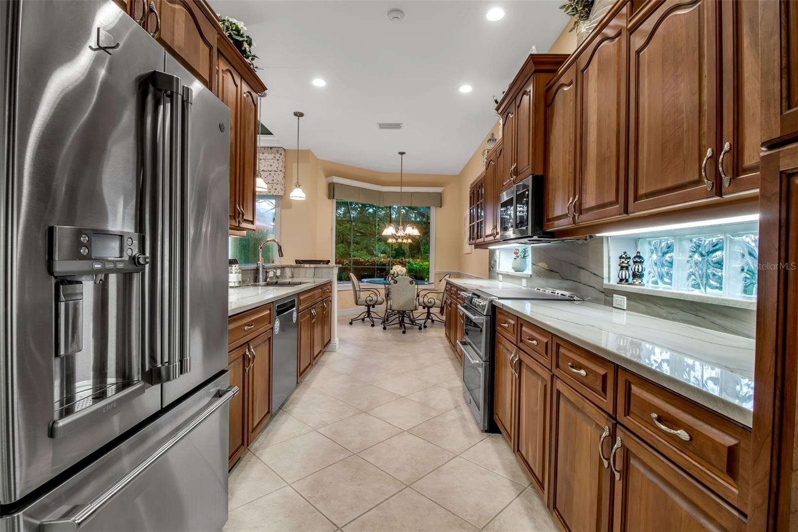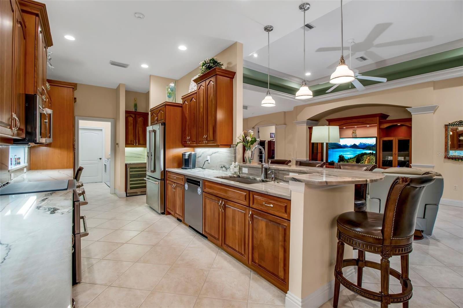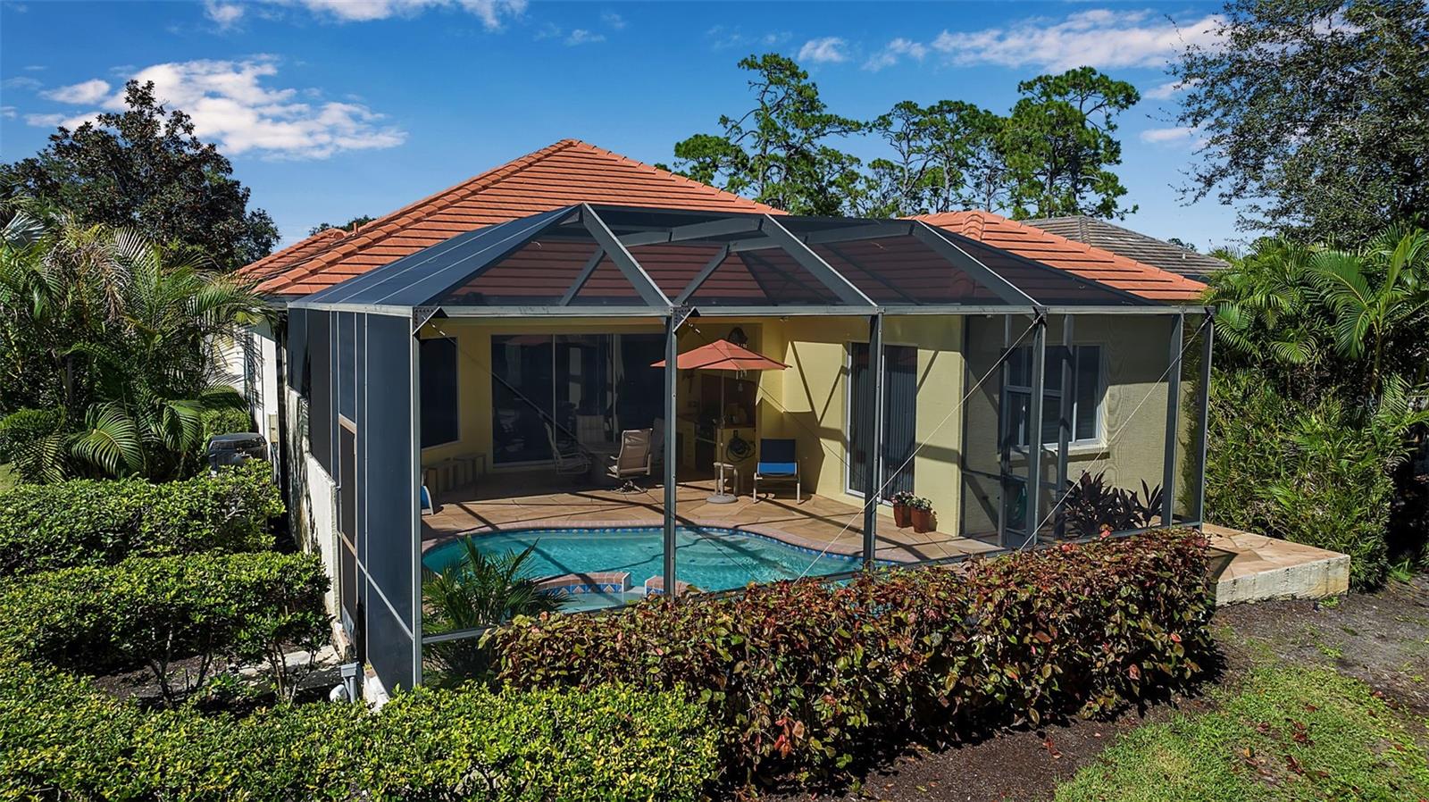 Looking for a home you can fall in love with? The search is over! Once you see this thoughtfully updated, impeccably maintained 3 bedroom, 2 bath home in The Oaks Preserve you will know you have found your home-sweet-home. From the moment you pull up to the pavered driveway, the care taken to maintain this property is evident. Walk past the two-car garage to the pretty, double front doors with leaded glass and step into the light-filled interior. Here you will find everything you need for comfortable Florida living. There is a dedicated home office off the entryway, with plantation shutters and a ceiling fan. The formal dining area features a lovely decorative ceiling, and a beautiful built-in buffet with glass-fronted cabinetry. The great room features another gorgeous piece of built-in furniture; floor to ceiling sliding glass doors connect the screened lanai and this room, making it bright and airy. The open kitchen, with breakfast bar, features beautiful new granite counters, stainless appliances, a chef’s desk, built-in wine and beverage cooler. The adjoining breakfast nook is flooded with natural light that streams through the aquarium window and offers an amazing view over the pool and spa. The master suit is huge and has a sitting area with a built-in window seat and large walk-in closets with glass front storage. The spacious master bedroom has been updated with granite countertops, and features dual sinks, a tub and separate shower and has marble wall accents. The two guest bedrooms are good sized and offer ample closet space. The second bathroom has been tastefully updated with granite counter and marble accents. The 2 car garage, with epoxy floor, is air conditioned with plentiful storage. Situated in the Bishopscourt neighborhood, behind the secure gates of The Oaks Preserve, this beautiful home backs a lush, tropical preserve providing privacy for the sparkling pool and spa. The lanai has two separate areas surrounding the pool. A large, covered area with an outdoor kitchen and ceiling fan, the perfect place for al fresco dining in the shade, and pool and spa area, covered by a cage, allowing for frolicking in the sunshine. Or meet your neighbors for a dip in the Bishopscourt community pool. The Oaks Club amenities include two championship golf courses, an award-winning tennis program, pickle ball and croquet courts, and a state-of-the-art fitness center. With three outstanding restaurants, and a wide variety of social and recreational options, there is no need to look any further than here for the perfect place to enjoy the best of Florida country club living. Club membership is required with homeownership.