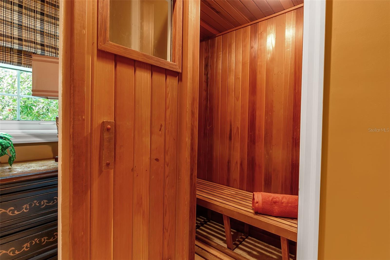A grand traditional residence, this 3-bedroom, 3.5-bath home is tucked into lush tropical landscaping on a quiet cul-de-sac in The Oaks Bayside. Double entry doors open to a marble foyer and wood floors that set the tone for quality throughout. Just off the entry, a cozy den with fireplace sits opposite a spacious guest suite. The heart of the home is the light-filled great room, with formal living and dining areas opening through French doors to the covered patio and resort-style pool. The kitchen combines beauty and function with granite countertops, center island cooktop, breakfast bar, and a sunny nook overlooking the pool and waterfall feature. The elegant primary suite offers marble floors, soaring ceilings, plantation shutters, and private access to the pool for an early swim or late-night dip. A glamorous dressing area leads to the spa-like bath with soaking tub, walk-in shower, and marble finishes. Two additional oversized en suite bedrooms provide comfort and privacy for guests. A large laundry room with ample cabinetry and an adjacent private sauna complete the interior. Outdoors, the free-form pool with rock outcroppings and waterfall is a showstopper, surrounded by both shaded and open areas for dining and relaxing. With two adjoining lots preserved as gardens, this home offers rare seclusion in a natural setting. Ownership includes membership in The Oaks Club, Sarasota’s premier golf and country club, featuring two championship courses, tennis, WellFit center, fine dining, and a vibrant year-round social calendar—all in the heart of South Sarasota.