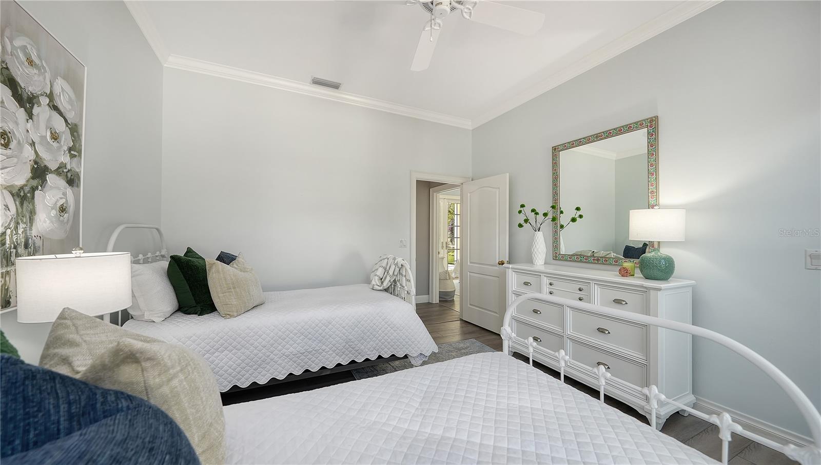 SELLERS SAY SELL! BEST PRICED 4 BED IN THE OAKS - MAJOR UPDATES ALLOW IMMEDIATE MOVE IN - NO REMODELING NEEDED! FRESH STYLE....FRESH PRICE! Behind the gates of The Oaks - Bayside, this beautifully redesigned estate presents a rare opportunity to enjoy refined country club living at a compelling new value. Updated and thoughtfully improved with designer transitional style - 140 Sugar Mill Drive offers ultimate privacy with lush landscaping, elegant interiors and resort living. Thoughtfully created for refined entertaining and everyday comfort, you'll enjoy 4 bedrooms and 4 full baths - all on one level - within a bright, open floor plan with custom architectural details throughout. The impressive chef’s kitchen is both stylish and functional, featuring Silestone countertops, premium Sub-Zero and Wolf appliances, an expansive island with seating and a striking bar—perfect for hosting gatherings or enjoying relaxed mornings at home. Separate dining and living spaces allow room for dedicated entertaining - making any occasion a treat! The private primary suite is "magazine worthy" - a sublime but peaceful retreat complete with a tremendous walk-in closet, custom built-ins and a beautifully appointed bath showcasing dual vanities, quartz countertops and a seamless walk-in glass shower. The home is truly a split plan - offering privacy with three additional suites - perfect for guests, a study or exercise/hobby room. The home takes every advantage of space and storage - and you'll be the envy of the neighborhood with the "thought of everything" laundry room and spacious garage. Step outside to exceptional outdoor living - designed for year-round Florida enjoyment. The expansive screened lanai features a heated pool and spa, elegant travertine pool deck, turfed yard with putting-green surface (only home in the Oaks) and new remote-controlled hurricane screens. Surrounded by mature, lush landscaping and a privacy wall, you'll feel the design intent for ultimate seclusion and relaxation. The home not only looks beautiful - it's been maintained to provide peace of mind with a newer roof (2021); impact-rated windows & doors (2021); 2 new HVAC units with UV purification (2021); motorized exterior hurricane shutters (2025); air conditioned garage and hurricane doors; 500 gallon propane tank (2022); electrical service panel (2021); rear yard golf turf (2025) and fresh interior & exterior paint. The Oaks - Bayside is a gated neighborhood with a private day dock on Little Sarasota Bay - perfect for launching kayaks or simply enjoying the sunset. The Oaks is one of the region’s most prestigious 24-hour guard-gated country club communities, residents enjoy an extraordinary lifestyle that includes: two championship 18-hole golf courses; three dining options and ballroom; tennis with 12 Har-Tru Hydro-Grid tennis courts; four pickleball courts; croquet lawns; fitness center and Junior Olympic heated pool; bocce, basketball, playground and extensive social opportunities. Perfectly located west of the trail in Osprey, you're just minutes from Sarasota's outstanding dining and cultural offerings, gorgeous beaches, Legacy Trail and Pine View School for the Gifted. A wonderful opportunity to enjoy Florida's ideal county club lifestyle! (Club membership is required with no waitlist at the current time.)