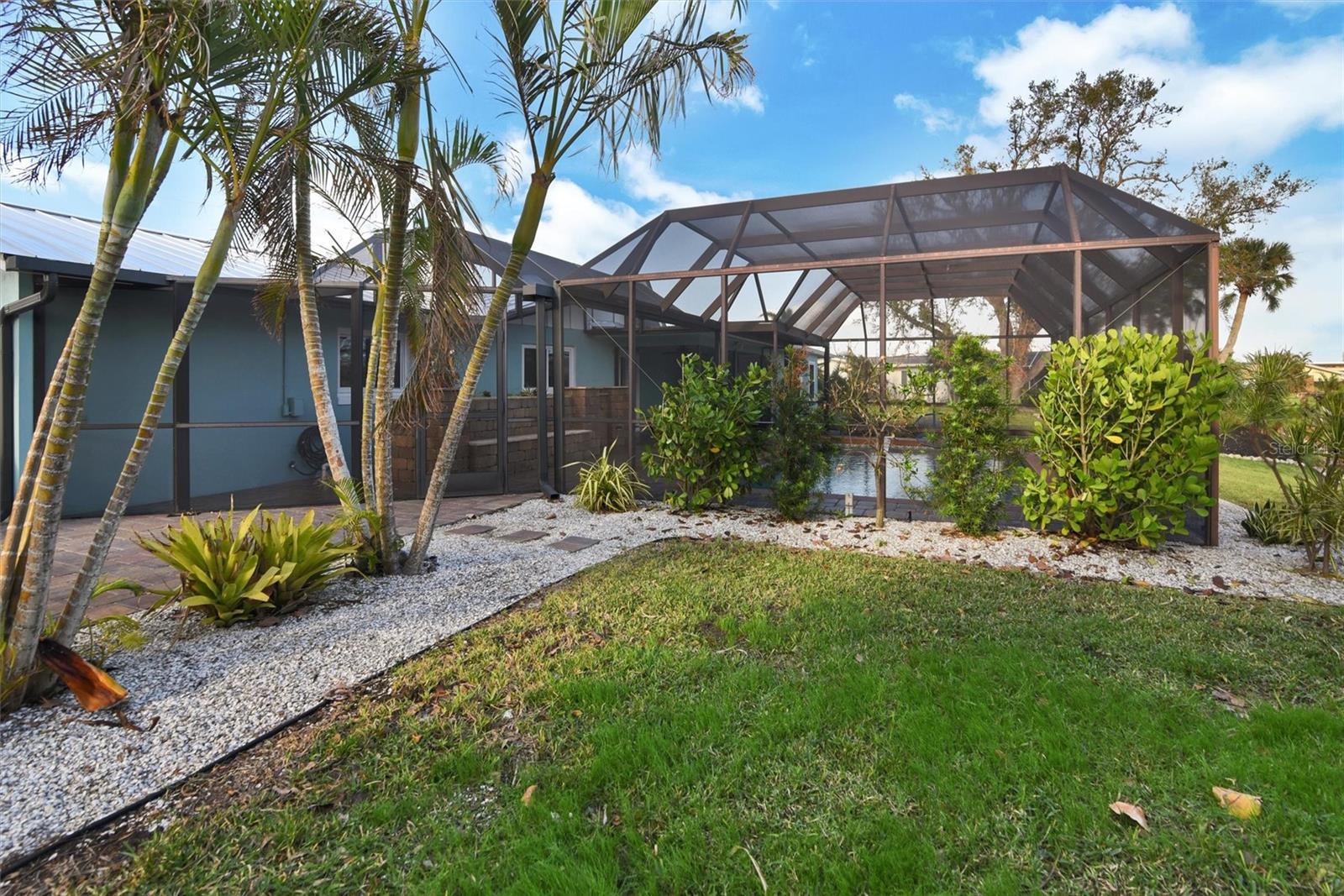 Welcome to Sorrento Shores in Osprey, FL. This Canal Waterfront home is the perfect entertaining poolside home with many upgrades throughout! Buy your boat a home! Sitting on the end of the canal view is better than your typical canal view to watch the sunrise over the water. Impress your friends with your very own tiki hut! This home offers a 2 bedroom, 2 bath, 2 car garage on an oversized lot. Composite Boat dock and lift 13,000 lb max. with a 25-minute boat cruise to the Gulf of Mexico with no fixed bridges. Granite countertops, tile floor throughout, new kitchen stainless appliances, updated plumbing, and updated 200 amp service. This home has never had storm damage or flooding sitting on a higher elevation with a new aluminum roof 2018, impact windows, and garage door. High and dry! This cul-de-sac home has curb appeal with a San Juan Paver Driveway. The rainbird irrigation system keeps the lush landscaping and agave garden beautiful. Sorrento Shores Homeowners Association has a low annual fee of $100/year. A community marina offers boat slips for property owners, and the canal was dredged in 2024. Call today to see this great home!