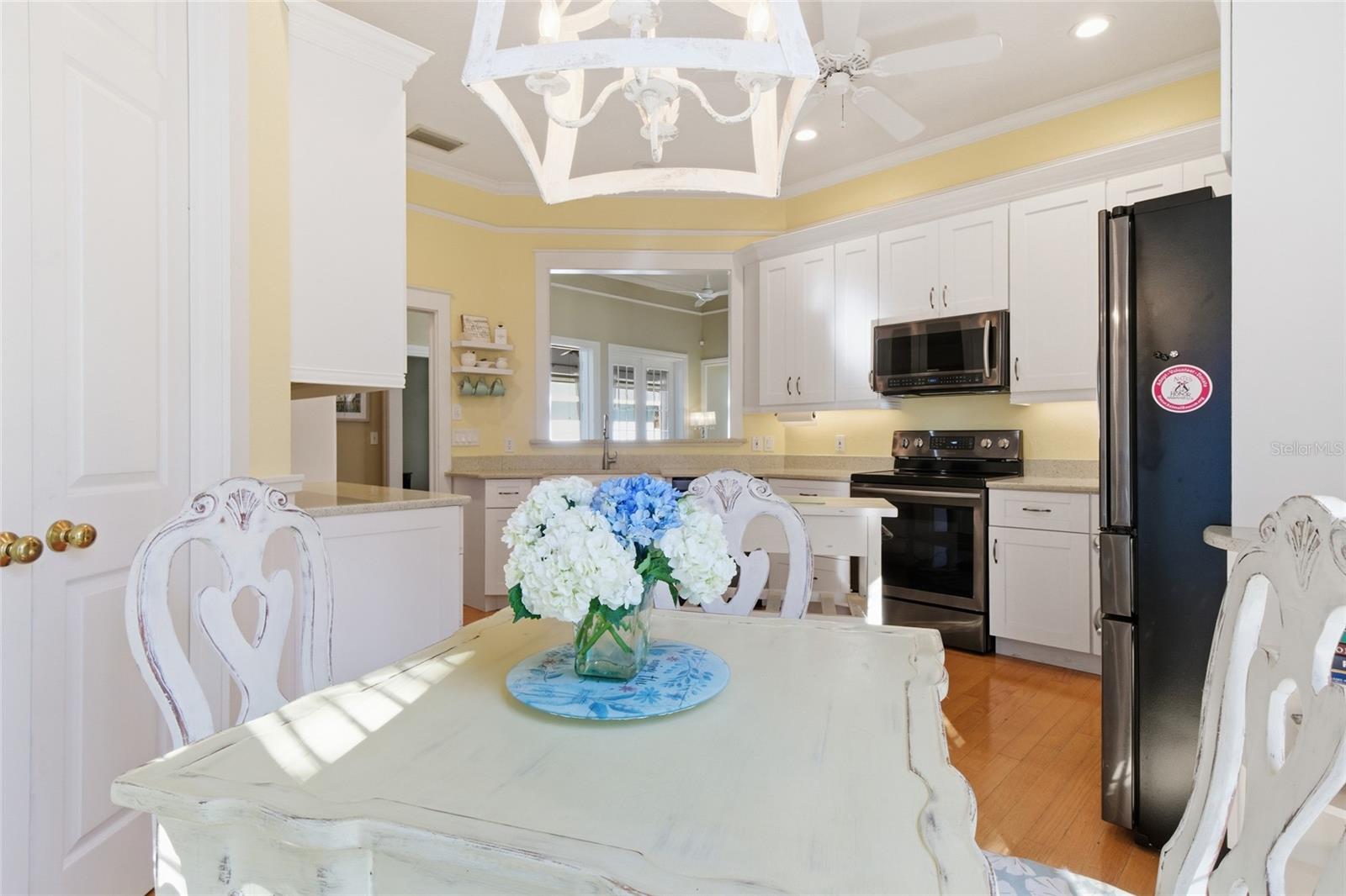 Modern farmhouse style in the Rivendell Cottages which was the original builder's model. Here is your opportunity to embrace a true, comfortable, Florida lifestyle. First you’ll find the amazing wrap around porch for relaxing and entertaining. Enter to a beautiful, perfectly maintained interior with souring ceilings, triple crown moldings, pocket doors, built-ins and a cozy living room fireplace. Prepare meals in a completely remodeled kitchen with breakfast nook or serve on the spectacular fully screened lanai. Your garage/workshop/studio is at the rear of the home at the end of a fully brick driveway. The rear drive and fenced play area is a great place for outdoor entertaining. Thoughtful and clever storage throughout the home with custom closets, garage loft and the entire rear wall of the garage for clever storage . Need a break? The Meadow Sweet Circle clubhouse and pool are 88 steps from your front porch. Osprey, Nokomis and Sarasota are all just moments away for shopping, beaching and exploring. it is approx. 1.5 miles to the Legacy Trail for 30 miles of bicycling through many parks and neighborhoods. The re-known Pine View school is walking distance and several beaches in Nokomis and Venice are only a 10-15 min. drive. Your community of just 80 homes is an oak tree canopied retreat that is absolutely envied by all visitors.