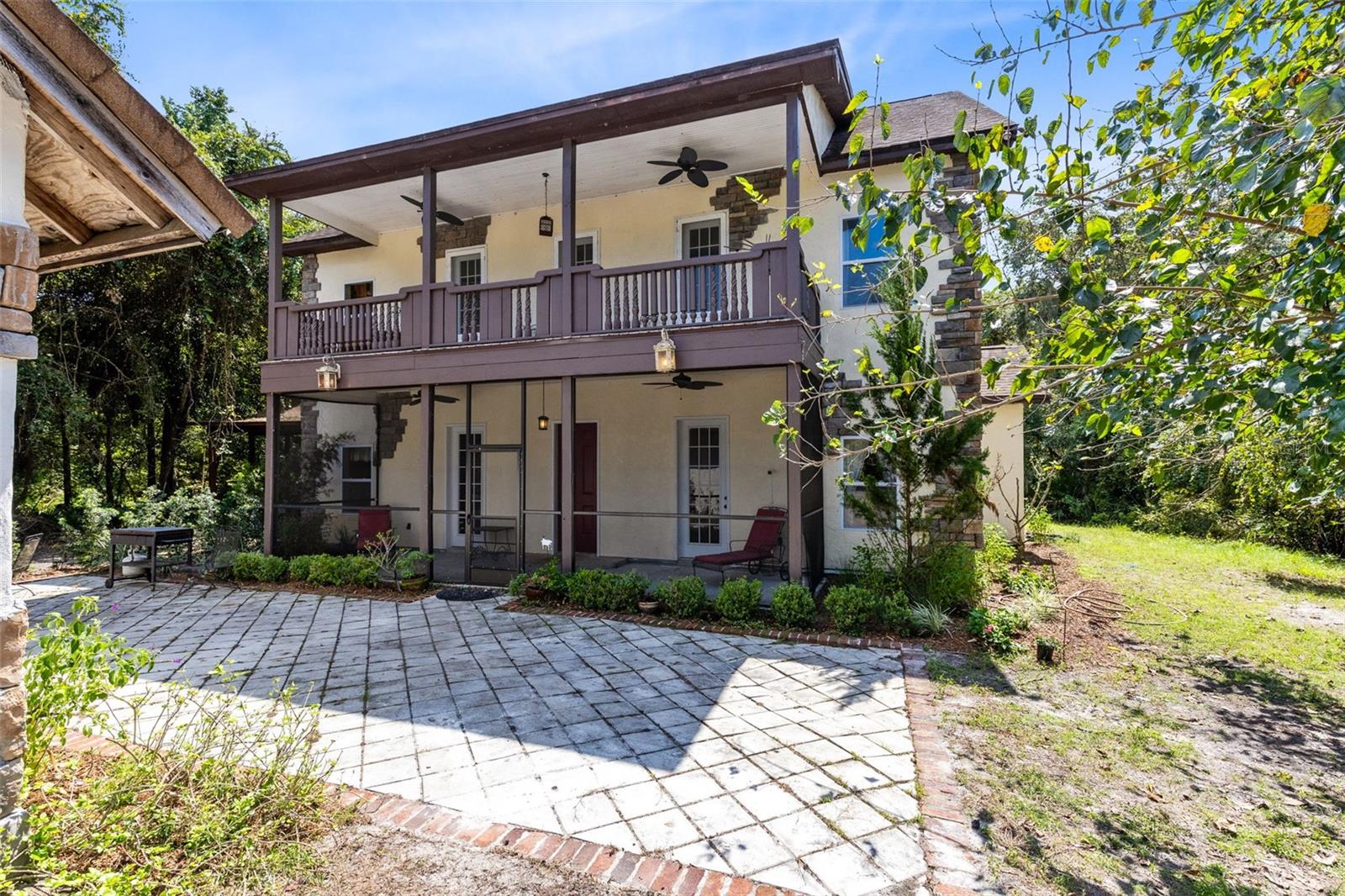 This 5,000 sq.ft fairytale estate on over 10 acres is exactly what you have been looking for! The perfectly private setting is fenced and cross fenced for all your furry friends to join you here too! You can be totally self sustainable out here and enjoy the custom built beautiful home. Plenty of space for multi-family living. The main house is just over 5,000 sq.ft with 4 total bedrooms including TWO Master Bedrooms with En-Suite Bathrooms. The third floor has two huge bonus rooms that could be at least two more bedrooms and plumbing was run up there too, so you could easily add another bathroom up there. Plenty of space for parking all your toys in the Three car garage, or park right next to the house under the oversized two car carport. Above the garage is a custom built in-law apartment with kitchen and bathroom! The garage also has a full bathroom and additional washer & dryer, separate from the main house laundry. The whole property backs up to Thorn Hill Lake which connects out to the St. Johns River. Two additional trailers One with a full bathroom & the other with Laundry Hookups, 836 sq.ft each, are on the property for a separate office or work space, or fix one of them up for even more living space. The over 1,000 sq.ft pole barn is currently set up with pens for goats, but could be used for anything you desire! All animal pens, coops, etc... stay with the property. The second story opens up to a full length 30' long balcony that is perfect for the morning cup of coffee or the evening night cap! The entire home is constructed of 8" Thick SIP panels with an R48 insulation value keeping your power bills much lower! All electrical is underground and which is perfect for storms and it has 400amp service! Lemon Bluff Public Boat Ramp is just 2 Miles away, right on the St. Johns River! And you are also just a few miles from the popular East Central Regional Rail Trail offering over 50 miles of continuous trails for biking, walking, etc... The level of detail in this home and property are unmatched. Don't miss out on your opportunity to buy this custom built original ONE owner home, first time available to the public for sale!