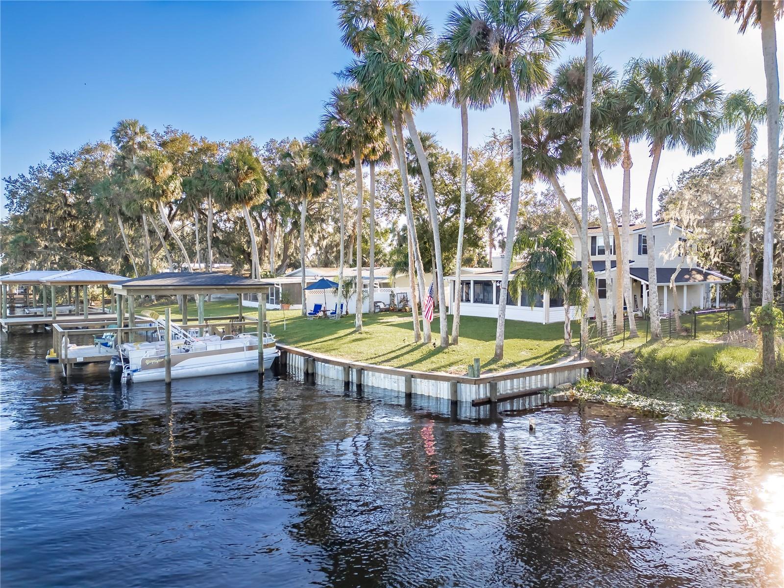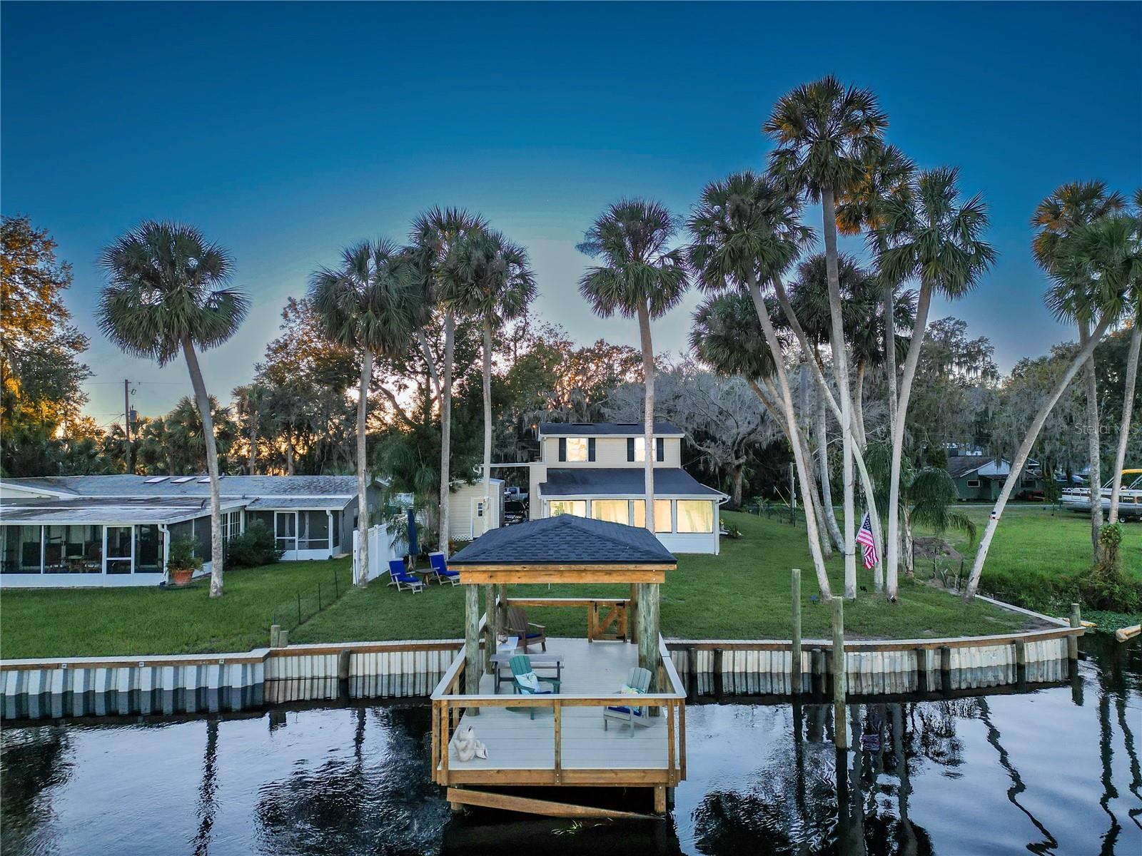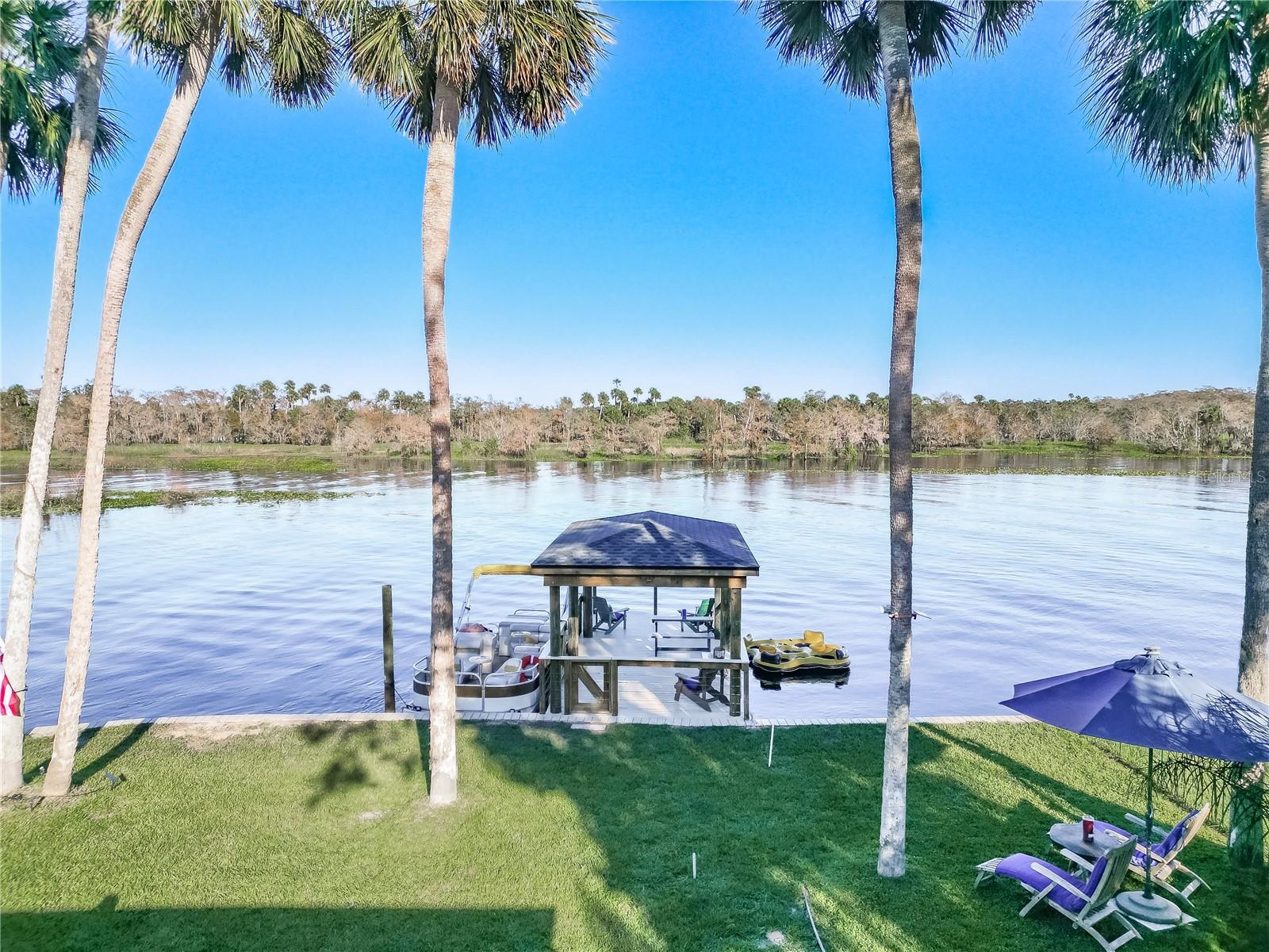 ONLY HOME in Volusia County >> Actually ON ST JOHNS RIVER FRONT ** Have You DREAMED of Living on the Water with a Breathtaking View >>> Then you’ve found your slice of Paradise Nestled along the St Johns River Front >>> HOME NEVER FLOODED & NO HOA! A Captivating Florida Style Home * 3 Bedrooms * 2 1/2 Baths * 2 Car Garage * New Seawall & Dock with Roof & Sun Deck & Wet Boat Slip >>> All this with a Beautiful Panoramic View of the St Johns River! This home has everything you need to live the Waterfront Lifestyle you’ve been dreaming of with seamless indoor-outdoor living. Enjoy a relaxing boat ride thru the endless canals and experience the abundant Florida Wildlife, or an afternoon to Lake Monroe, Lake George, or Silver Glen Springs, or just a few minutes to Iron Bend where boaters meet to swim and play, or boat all the way in to the Atlantic for an experience seldom found with this location. Want a land adventure explore the famous 268 Acre Beck Ranch Park only 5 miles away. This home really has Breathtaking Water Views. The Sunroom has a 3 directional River View that draws you to the Dock to relax, enjoy beautiful sunrises, passing manatees & wildlife, or star gazing. Step inside this well-appointed renovated home with modern touches designed for comfort and entertaining. The heart of the home is an inviting open-concept bathed in natural light and Solid Oak Floors thru out with River Views from every room that encompasses the family room, dining area and kitchen offering a space for everyone to be involved. The fireplace adds such a warm cozy feeling to this home. The kitchen has a breakfast/luncheon bar, top of the line quartz counters, SS wireless cooktop/stove, refrigerator, dishwasher and ample storage including a closet pantry. A convenient half bath on the main level with access from garage and laundry area, new wireless water heater . The upper level is the Primary Suite as a peaceful retreat, private bath and a generous walk-in closet, while the 2 additional bedrooms and full bath with shower/tub are ideal for family, guests, or a home office, all rooms have a wonderful inspiring River View. The gated large driveway leads to a 2 car garage 20x25 with AC mini split and an additional 12 ft high Carport for a motorhome, or car lift as current owner and a Separate Insulated Workshop/Storage Building. There’s ample parking for extra vehicles, boats, jet skis, just name your pleasure. Upgrades & Renovations 2021-2024, Seawall 2021, Dock 2024, Roof 2019, AC 8/2017. Residents enjoy the serenity and closeness of Osteen’s hometown atmosphere in close proximity to shopping, restaurants and the expanded amenities in Deltona, the county’s largest and most highly developed city. Only 20 minutes to 417 to Orlando & surrounding areas and just 30 minutes southwest from New Smyrna Beach. (Options to purchase Pontoon, Golf Cart, Hydraulic Car Lift)………… *** If you’ve dreamed of living the Florida Water Front Life or a Vacation Home *** You have just found your new Paradise! Want to see more about this Lemon Bluff River Resort home at: https://www.1043lemonbluff.com ********************* & Lemon Bluff Boat Ramp & Park info at: https://www.volusia.org/services/community-services/parks-recreation-and-culture/parks-and-trails/park-facilities-and-locations/boat-ramps/lemon-bluff-boat-ramp.stml
