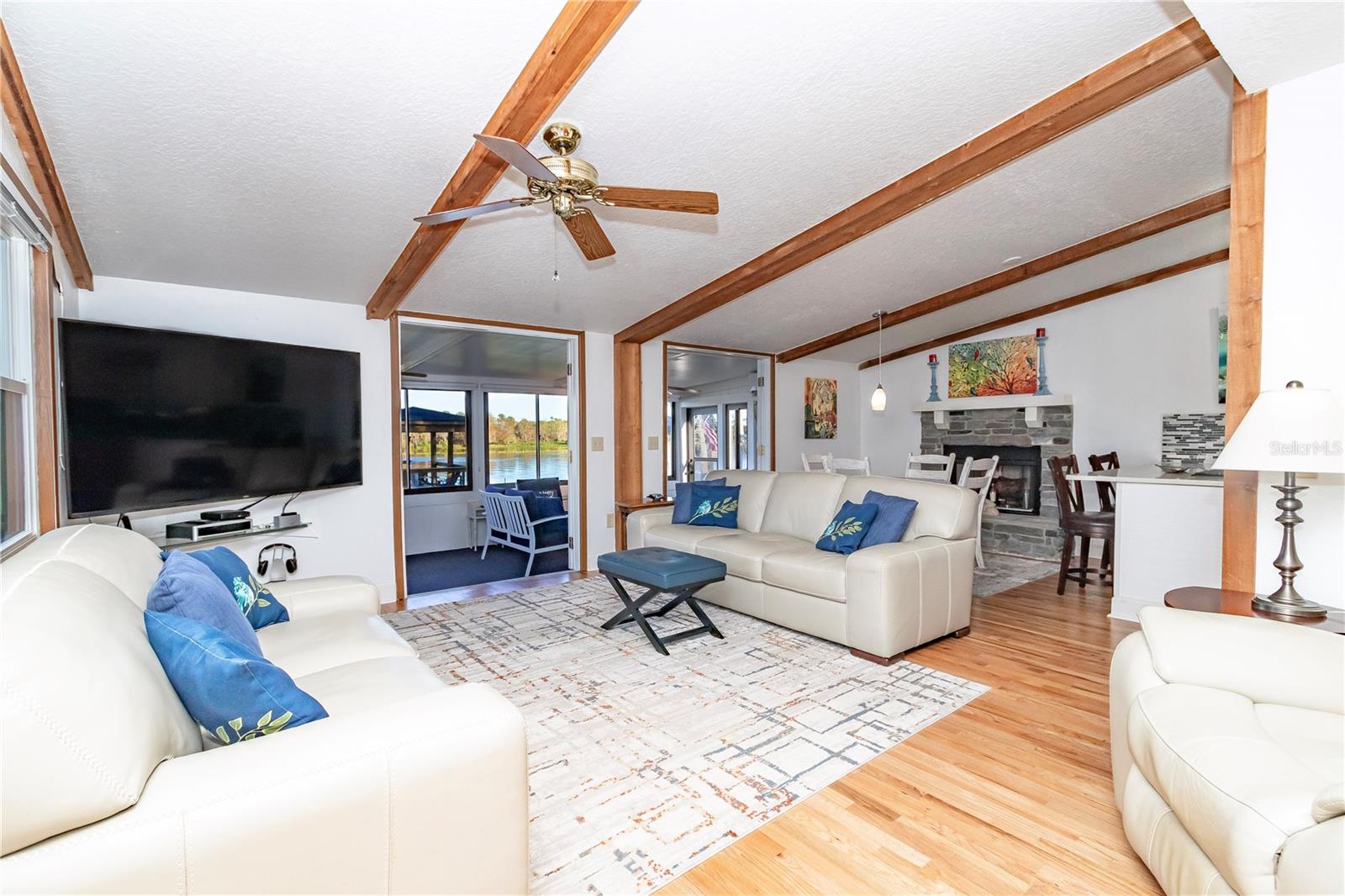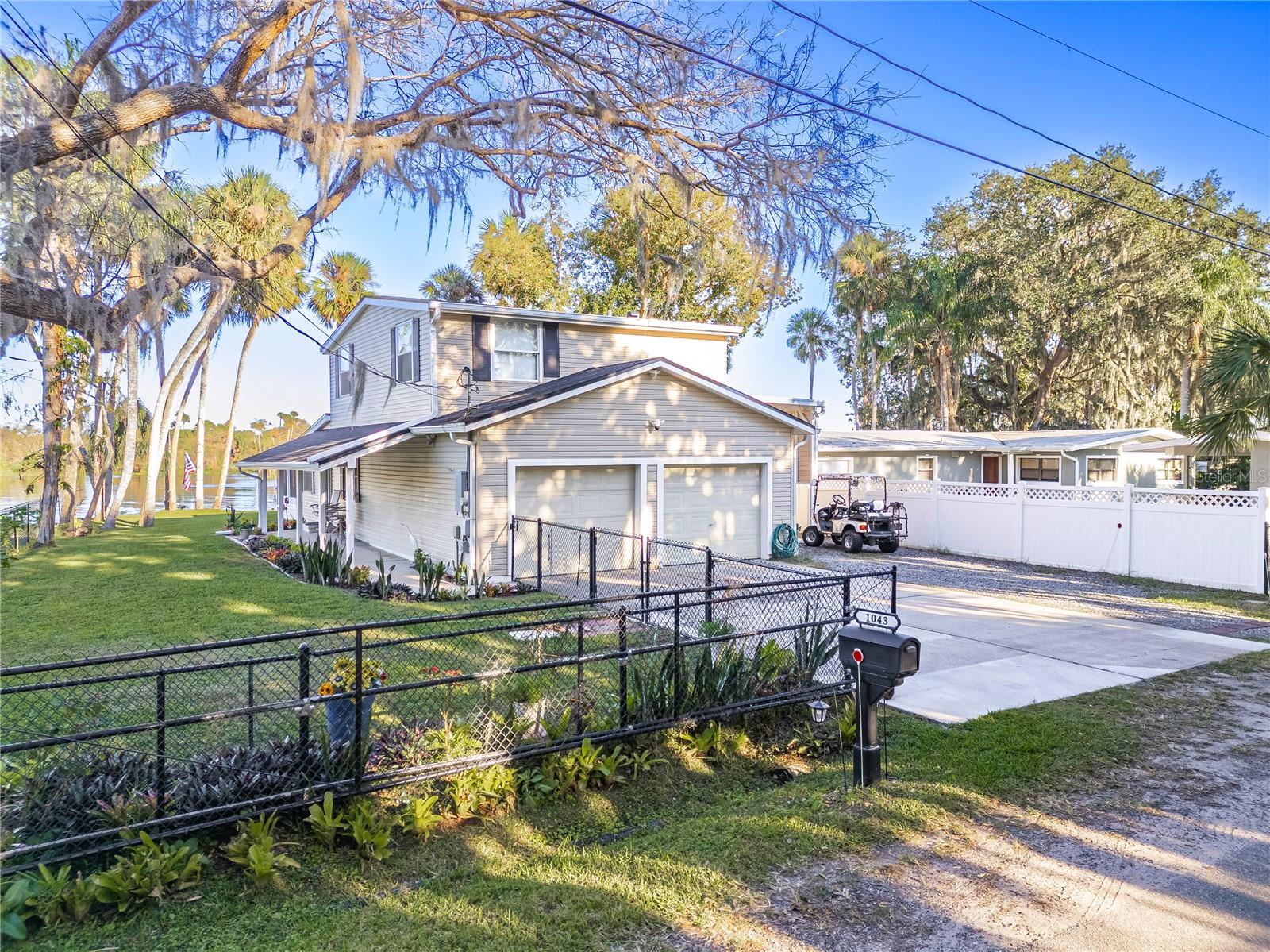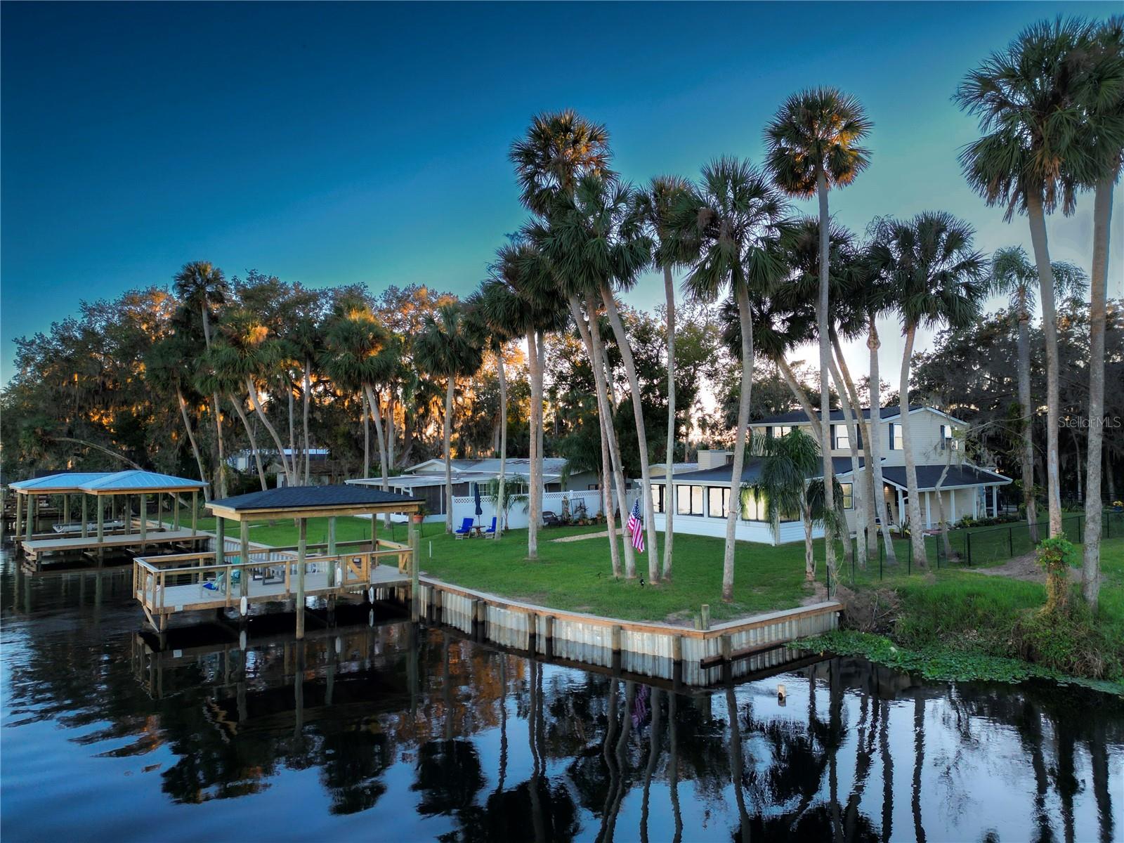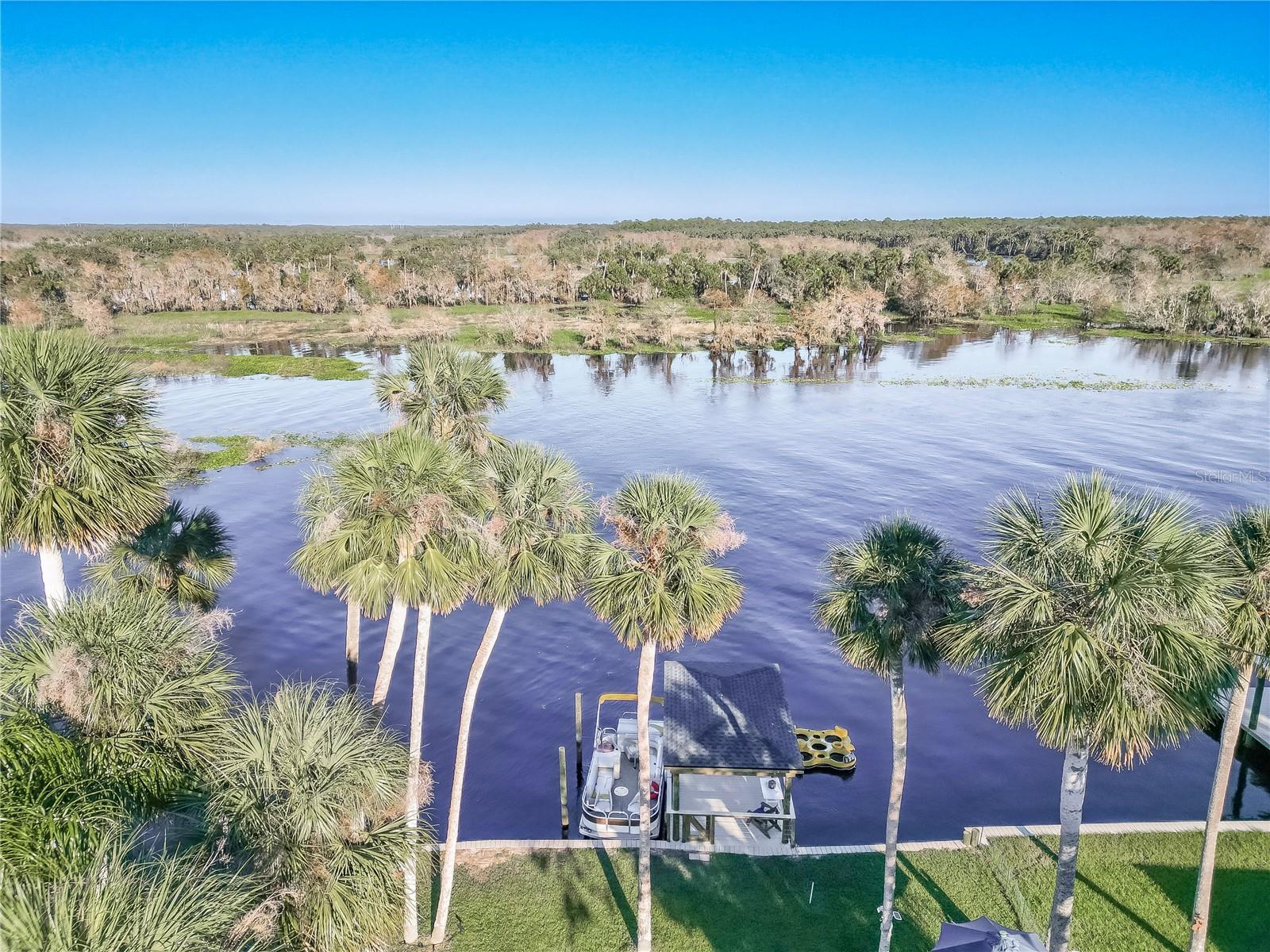 ONLY HOME in Volusia County >> Actually ON ST JOHNS RIVER FRONT ** Have You DREAMED of Living on the Water with a Breathtaking View >>> Then you’ve found your slice of Paradise Nestled along the St Johns River Front >>> HOME NEVER FLOODED & NO HOA! A Captivating Florida Style Home * 3 Bedrooms * 2 1/2 Baths * 2 Car Garage * New Seawall & Dock with Roof & Sun Deck & Wet Boat Slip >>> All this with a Beautiful Panoramic View of the St Johns River! This home has everything you need to live the Waterfront Lifestyle you’ve been dreaming of with seamless indoor-outdoor living. Enjoy a relaxing boat ride thru the endless canals and experience the abundant Florida Wildlife, or an afternoon to Lake Monroe, Lake George, or Silver Glen Springs, or just a few minutes to Iron Bend where boaters meet to swim and play, or boat all the way in to the Atlantic for an experience seldom found with this location. Want a land adventure explore the famous 268 Acre Beck Ranch Park only 5 miles away. This home really has Breathtaking Water Views. The Sunroom has a 3 directional River View that draws you to the Dock to relax, enjoy beautiful sunrises, passing manatees & wildlife, or star gazing. Step inside this well-appointed renovated home with modern touches designed for comfort and entertaining. The heart of the home is an inviting open-concept bathed in natural light and Solid Oak Floors thru out with River Views from every room that encompasses the family room, dining area and kitchen offering a space for everyone to be involved. The fireplace adds such a warm cozy feeling to this home. The kitchen has a breakfast/luncheon bar, top of the line quartz counters, SS wireless cooktop/stove, refrigerator, dishwasher and ample storage including a closet pantry. A convenient half bath on the main level with access from garage and laundry area, new wireless water heater . The upper level is the Primary Suite as a peaceful retreat, private bath and a generous walk-in closet, while the 2 additional bedrooms and full bath with shower/tub are ideal for family, guests, or a home office, all rooms have a wonderful inspiring River View. The gated large driveway leads to a 2 car garage 20x25 with AC mini split and an additional 12 ft high Carport for a motorhome, or car lift as current owner and a Separate Insulated Workshop/Storage Building. There’s ample parking for extra vehicles, boats, jet skis, just name your pleasure. Upgrades & Renovations 2021-2024, Seawall 2021, Dock 2024, Roof 2019, AC 8/2017. Residents enjoy the serenity and closeness of Osteen’s hometown atmosphere in close proximity to shopping, restaurants and the expanded amenities in Deltona, the county’s largest and most highly developed city. Only 20 minutes to 417 to Orlando & surrounding areas and just 30 minutes southwest from New Smyrna Beach. (Options to purchase Pontoon, Golf Cart, Hydraulic Car Lift)………… *** If you’ve dreamed of living the Florida Water Front Life or a Vacation Home *** You have just found your new Paradise! Want to see more about this Lemon Bluff River Resort home at: https://www.1043lemonbluff.com ********************* & Lemon Bluff Boat Ramp & Park info at: https://www.volusia.org/services/community-services/parks-recreation-and-culture/parks-and-trails/park-facilities-and-locations/boat-ramps/lemon-bluff-boat-ramp.stml