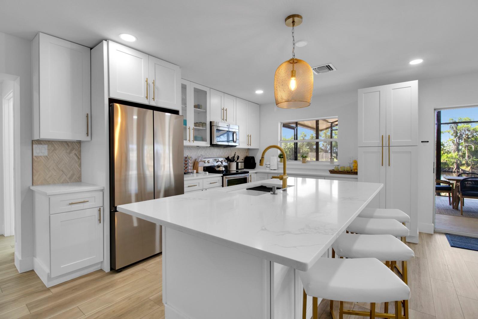 Welcome to your dream home in the sought-after waterfront community on Lemon Bluff Road! Introducing 1155 Lemon Bluff, a beautiful waterfront residence on the St. Johns River featuring 3 bedrooms, 2 bathrooms and an oversized PRIVATE SCREENED PATIO perfect for enjoying the best of Florida living. Step inside to an open floor plan which has been completely reimagined in 2023 with very high-end finishes and designer detail throughout, creating a warm yet elegant feel. The stunning chef’s kitchen serves as the centerpiece of the home, showcasing an OVERSIZED quartz island with plenty of seating, custom 42" shaker cabinetry, brushed gold hardware, stainless steel appliances, and a stylish herringbone backsplash. The open-concept layout flows seamlessly into the dining and living areas, making it an inviting place to cook, gather, and start the day, all accented by wide-plank flooring and abundant natural light. The spacious primary suite offers a spa-inspired retreat-like bathroom with dual vanities, an oversized walk-in shower featuring a rainfall shower head, and a private toilet with bidet. The secondary bath continues the elevated aesthetic with slate tile and a calming, spa-like ambiance. NO FRONT OR REAR NEIGHBORS offers added privacy on your private dock and pier with beautiful solar lightning, plenty of space to relax or jump on your boat and have direct access to the St. Johns River for boating, bass fishing, and waterfront recreation. A fire pit area adds to the outdoor lifestyle appeal. Additional highlights include all new central A/C, a whole-home water softener system, and the confidence of a complete 2023 renovation — delivering both style and peace of mind. Turn-key riverfront properties with this level of finish and design are VERY rare. Whether as a primary residence or weekend escape or an investment property, this residence offers modern luxury in a serene natural setting. Experience the best of waterfront living at 1155 Lemon Bluff Road - where elegance, comfort, convenience, and the Florida lifestyle come together! Schedule your private showing today. (Please do not disturb Tenants)