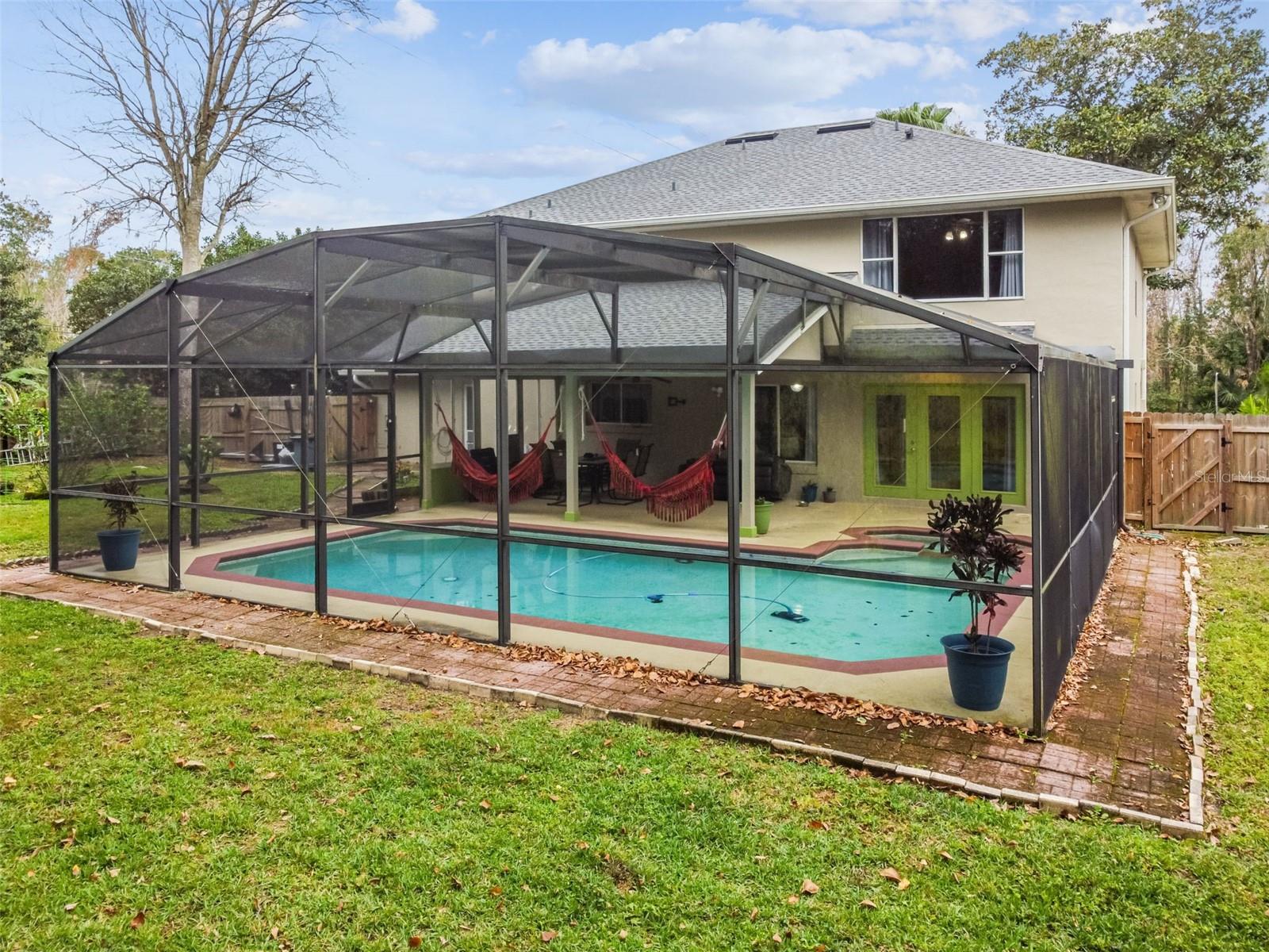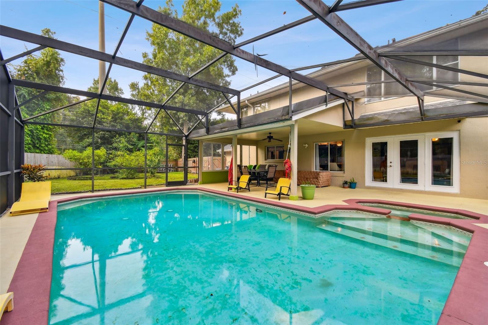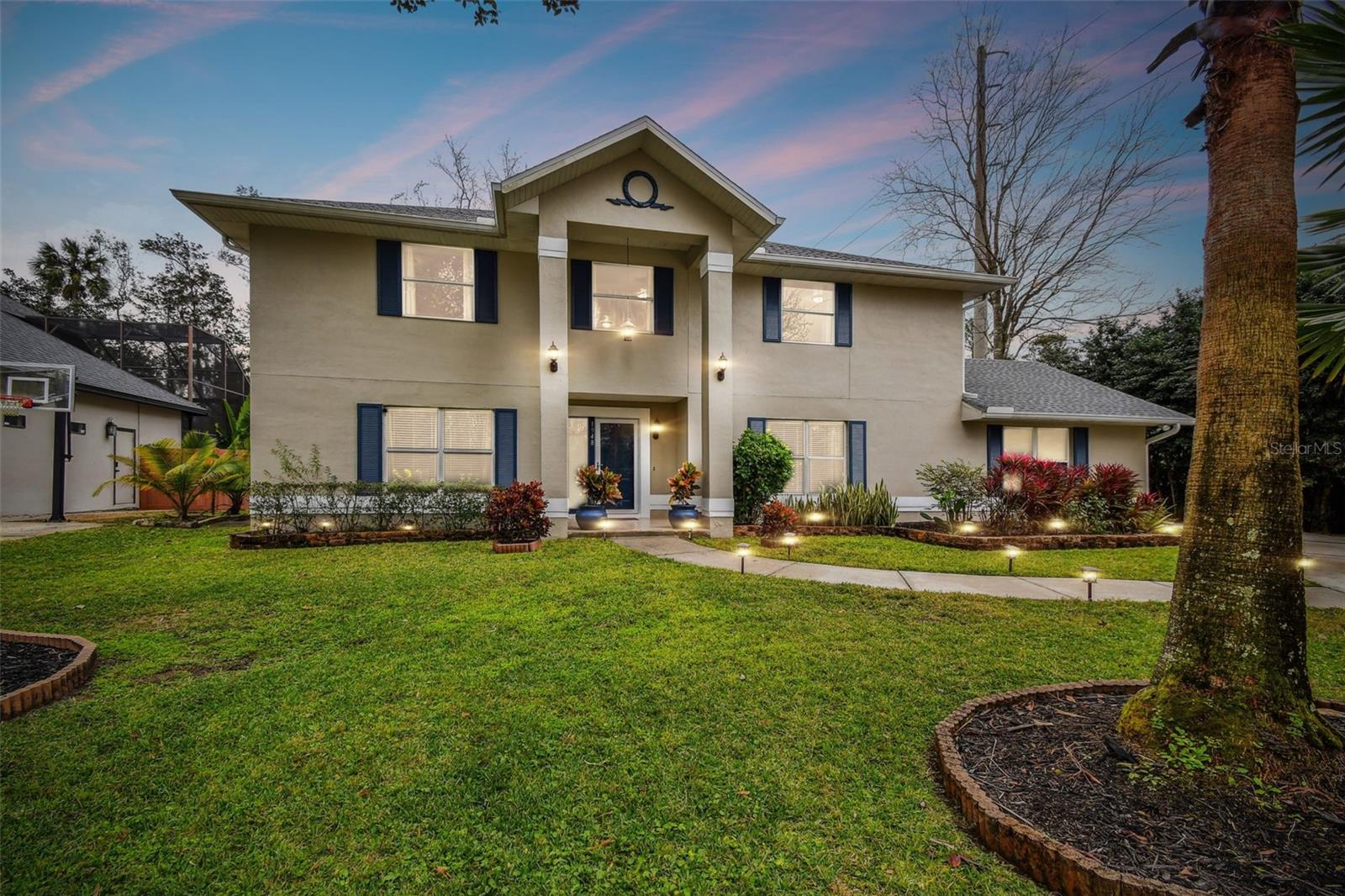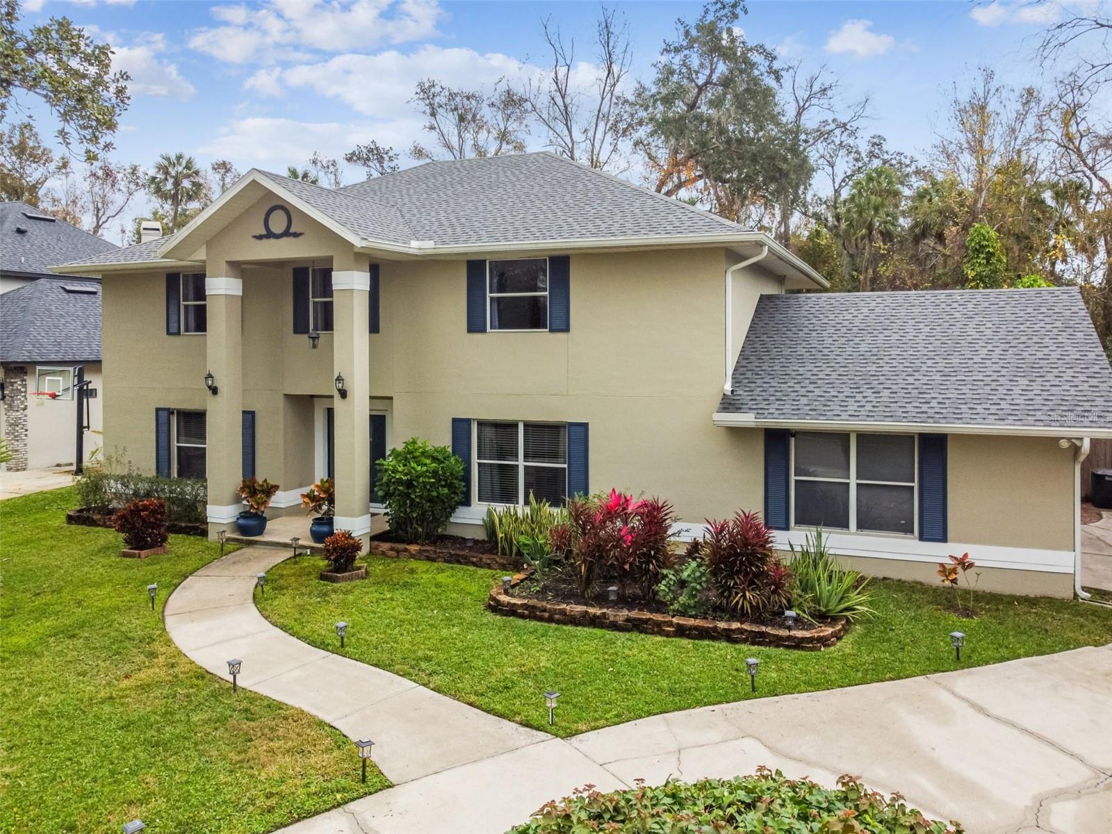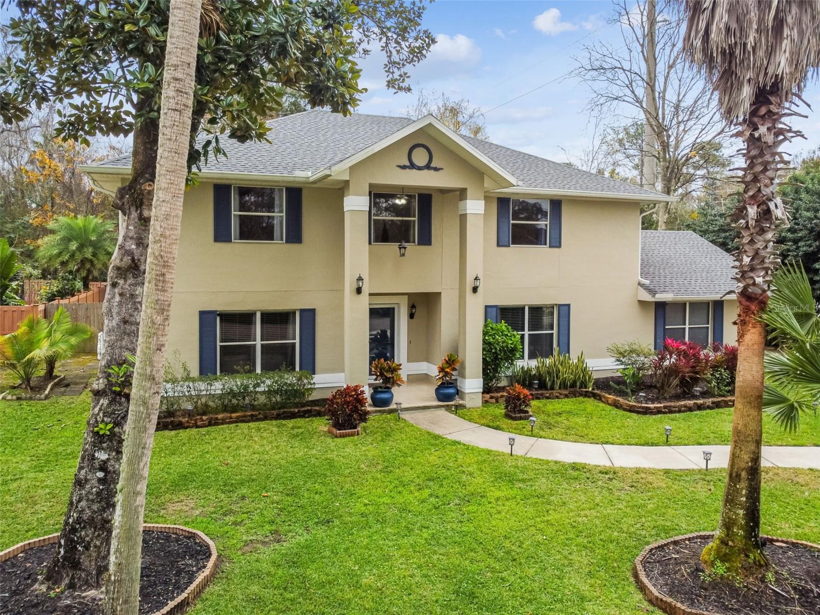WELCOME HOME! As you approach this home, you're immediately struck by the meticulously manicured landscaping and the serene privacy offered by its corner lot. The mature palm and magnolia trees create a stunning, natural backdrop that enhances the sense of tranquility. The curved driveway ushers you toward the side-entry two-car garage, while a charming walkway leads you to the inviting covered front entrance. Straight ahead upon entering, you will see the wooden stairs and banister that leads to the second level. To the left, elegant glass French doors reveal a versatile room that can be used as a formal living room, game room, or office. Opposite of this room is the sunlit dining room. With or without guests, or for other occasions, the open combined family room and kitchen forms the heart of this home. Imagine curling up in cozy comfort, enveloped by the warmth and the glow of the fireplace in the wintertime. The culinary artist will love creating delicious masterpieces in this kitchen with ample counter and cabinet space, two closet pantries, gleaming STAINLESS STEEL APPLIANCES, built-in oven and brand new electric cooktop. French doors open from the kitchen to the spacious screen-enclosed patio, pool and spa. Here, you might take to the option of backyard grilling or basking in the sun while enjoying the sparkling pool and nature views. Your private oasis is COMPLETELY FENCED so fur babies also have a place to run and play. Also on the first level is an inside laundry room with chutes from the upper level, cabinet storage, and a sink, making chore day a breeze. All 4 bedrooms are found on the upper level of this home. The primary suite is your perfect retreat after a long day, offering a serene escape with a luxurious jetted tub and a cozy lounge area for ultimate relaxation. Additionally, it features a spacious 9 x 10 walk-in closet, providing ample room for all your wardrobe needs. Three additional bedrooms and one shared bath are on this floor, as well as a walk-in storage closet. Located in Oak Creek community in the heart of Oviedo, your new home is convenient to plentiful shopping and restaurant options being within 5 miles of Oviedo on the Park, the Oviedo Mall and access to SR-417. SYSTEMS: A/C 2016, roof 2021, exterior paint 2022, saltwater pool system 2023, hybrid water heater 2024. <iframe width='853' height='480' src=' https://my.matterport.com/show/?m=Gi88rzrkYn7& ' frameborder='0' allowfullscreen allow='xr-spatial-tracking'></iframe>