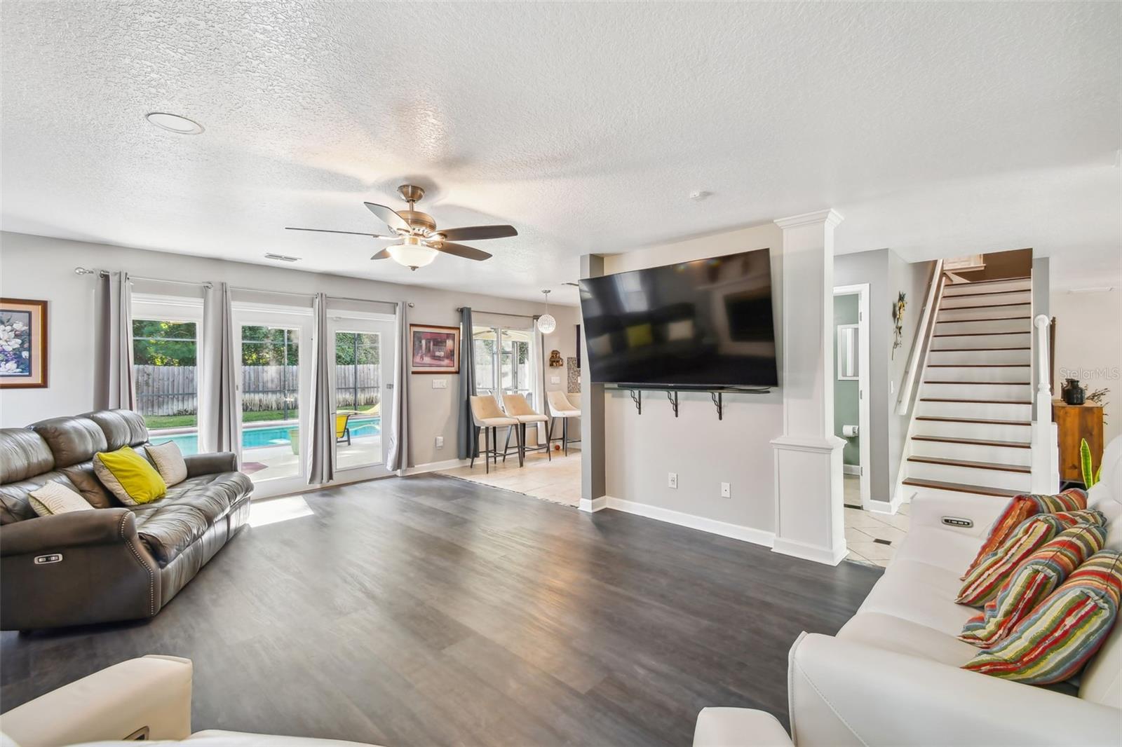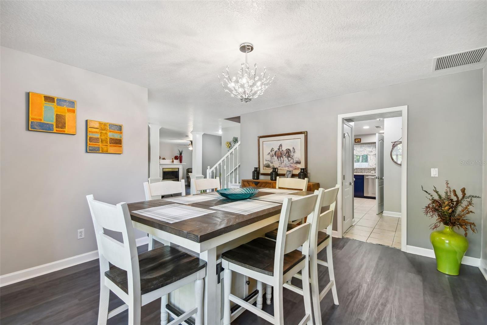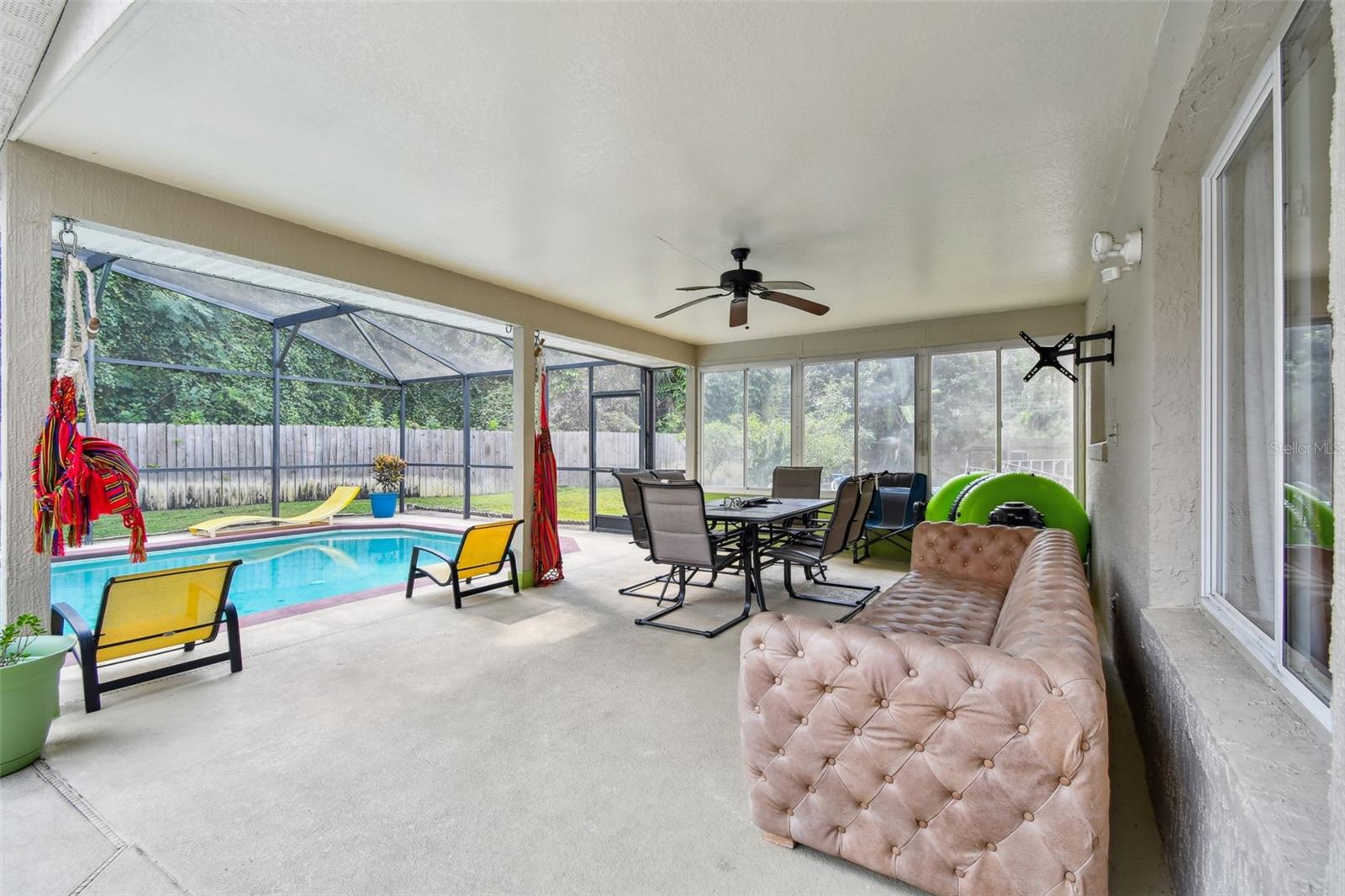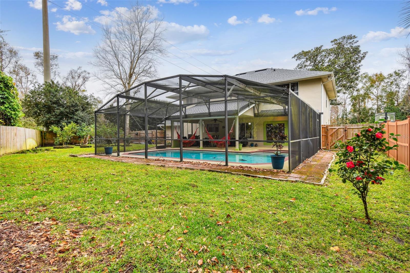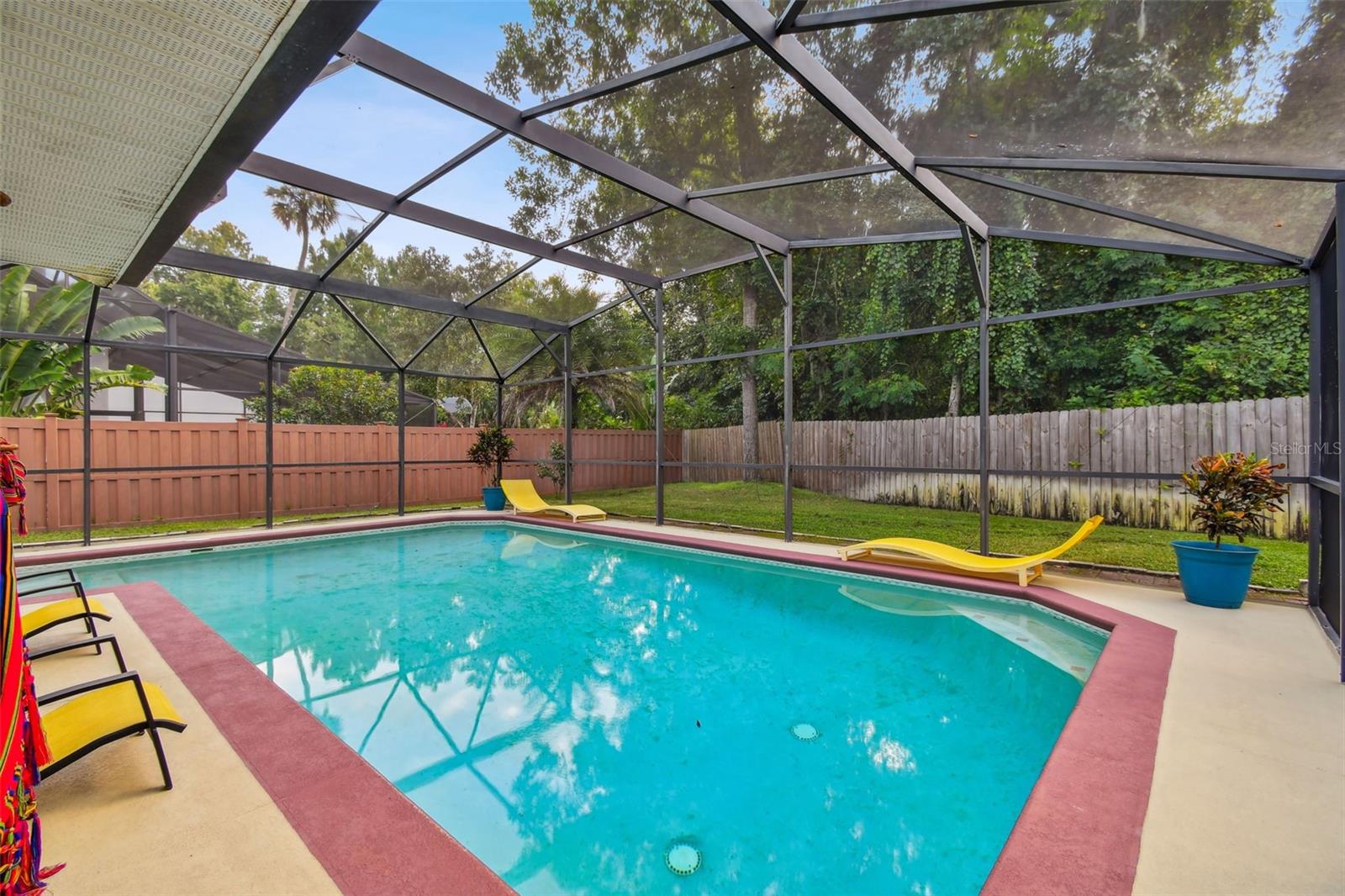 WELCOME HOME! As you approach this home, you're immediately struck by the meticulously manicured landscaping and the serene privacy offered by its corner lot. The mature palm and magnolia trees create a stunning, natural backdrop that enhances the sense of tranquility. The curved driveway ushers you toward the side-entry two-car garage, while a charming walkway leads you to the inviting covered front entrance. Straight ahead upon entering, you will see the wooden stairs and banister that leads to the second level. To the left, elegant glass French doors reveal a versatile room that can be used as a formal living room, game room, or office. Opposite of this room is the sunlit dining room. With or without guests, or for other occasions, the open combined family room and kitchen forms the heart of this home. Imagine curling up in cozy comfort, enveloped by the warmth and the glow of the fireplace in the wintertime. The culinary artist will love creating delicious masterpieces in this kitchen with ample counter and cabinet space, two closet pantries, gleaming STAINLESS STEEL APPLIANCES, built-in oven and brand new electric cooktop. French doors open from the kitchen to the spacious screen-enclosed patio, pool and spa. Here, you might take to the option of backyard grilling or basking in the sun while enjoying the sparkling pool and nature views. Your private oasis is COMPLETELY FENCED so fur babies also have a place to run and play. Also on the first level is an inside laundry room with chutes from the upper level, cabinet storage, and a sink, making chore day a breeze. All 4 bedrooms are found on the upper level of this home. The primary suite is your perfect retreat after a long day, offering a serene escape with a luxurious jetted tub and a cozy lounge area for ultimate relaxation. Additionally, it features a spacious 9 x 10 walk-in closet, providing ample room for all your wardrobe needs. Three additional bedrooms and one shared bath are on this floor, as well as a walk-in storage closet. Located in Oak Creek community in the heart of Oviedo, your new home is convenient to plentiful shopping and restaurant options being within 5 miles of Oviedo on the Park, the Oviedo Mall and access to SR-417. SYSTEMS: A/C 2016, roof 2021, exterior paint 2022, saltwater pool system 2023, hybrid water heater 2024. <iframe width='853' height='480' src=' https://my.matterport.com/show/?m=Gi88rzrkYn7& ' frameborder='0' allowfullscreen allow='xr-spatial-tracking'></iframe>