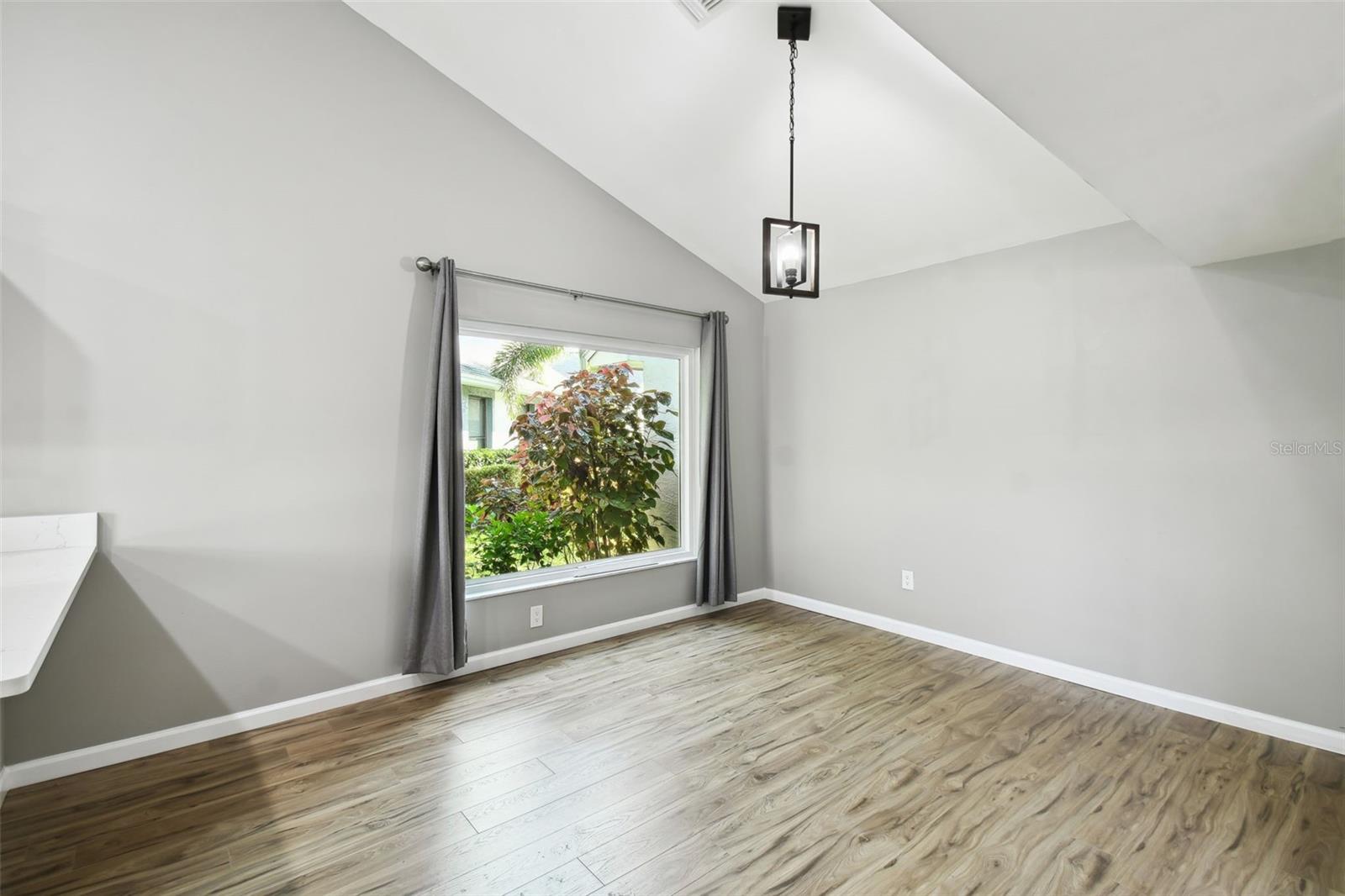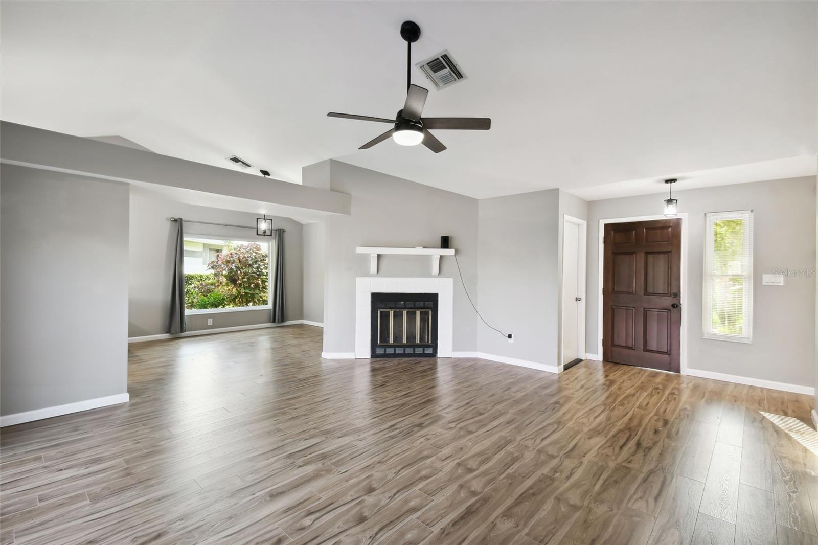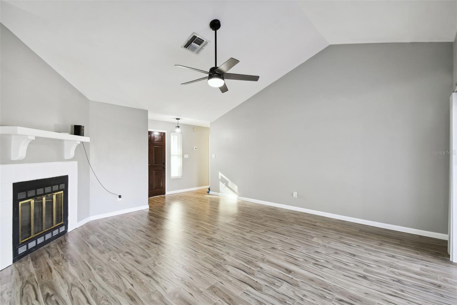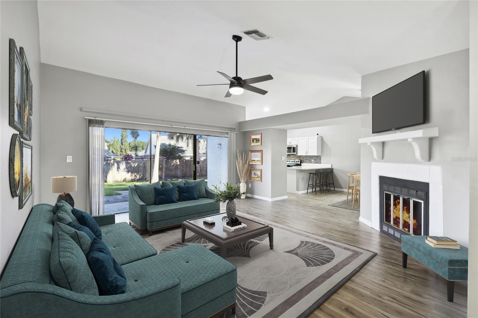 One or more photo(s) has been virtually staged. Welcome home. This beautiful 3 bed 2 bath home sits proudly in the extremely desirable community of Alafaya woods. This community is located in the heart of Oviedo with shopping and entertainment options minutes away. Pulling up to the home you will immediately feel welcomed by the curb appeal and manicured landscaping. Upon entering the front door your drawn forward by exceptional large and open living space. The high vaulted ceilings and direct sight into the kitchen/dining room make this the ideal home for hosting guest and entertaining. The engineered hardwood flooring draws your eyes down while the stark contrast of the bright knock down ceiling pulls you further into the home. As you proceed inside you come to your open living room. This room is spacious yet cozy with the wood burning fireplace. in your direct view is your dining room. The large custom window makes a bright and elegant backdrop for your formal dining room, with plenty of wall space for decor or a buffet cabinet. The dining room and kitchen meet at a lovely counter height bar for holding your thanksgiving spread or hungry guests. This kitchen is truly a perfect renovation and what make this home one of a kind. The solid white cabinetry, soft close doors, newer stainless-steel appliances, pair exquisitely with tile backsplash and quartz countertops. Finishing this kitchen is a large window overlooking your private backyard. Continuing your tour you approach your Primary bedroom. This room has plenty of space for a king bedroom set with room to spare. The Primary bathroom has been renovated with NEW dual vanity sink, NEW mirrors, NEW light fixtures, NEW tile flooring, and NEW modern elongated comfort toilets. The Primary bedroom opens to an on-suit nursery/office. The two guest rooms are large and share a renovated bathroom. Featuring NEW dual vanity sink, NEW mirrors, NEW light fixtures, NEW tile flooring, and NEW modern elongated comfort toilets. Finishing your tour in the backyard you can appreciate the privacy and space this home offers. Plenty of room for a playground, pool, or outdoor entertainment space. Once concluding your tour, we feel you will appreciate the value of community and conveyance delivered with the stunning home. Other upgrades include New Dual-Pane Low-E argon gas injected windows throughout, NEW disposal, NEW microwave, Newer 5" reinforced driveway, New15.3 SEER HVAC, 2023 roof w/ Cool Roof reflective coating!!