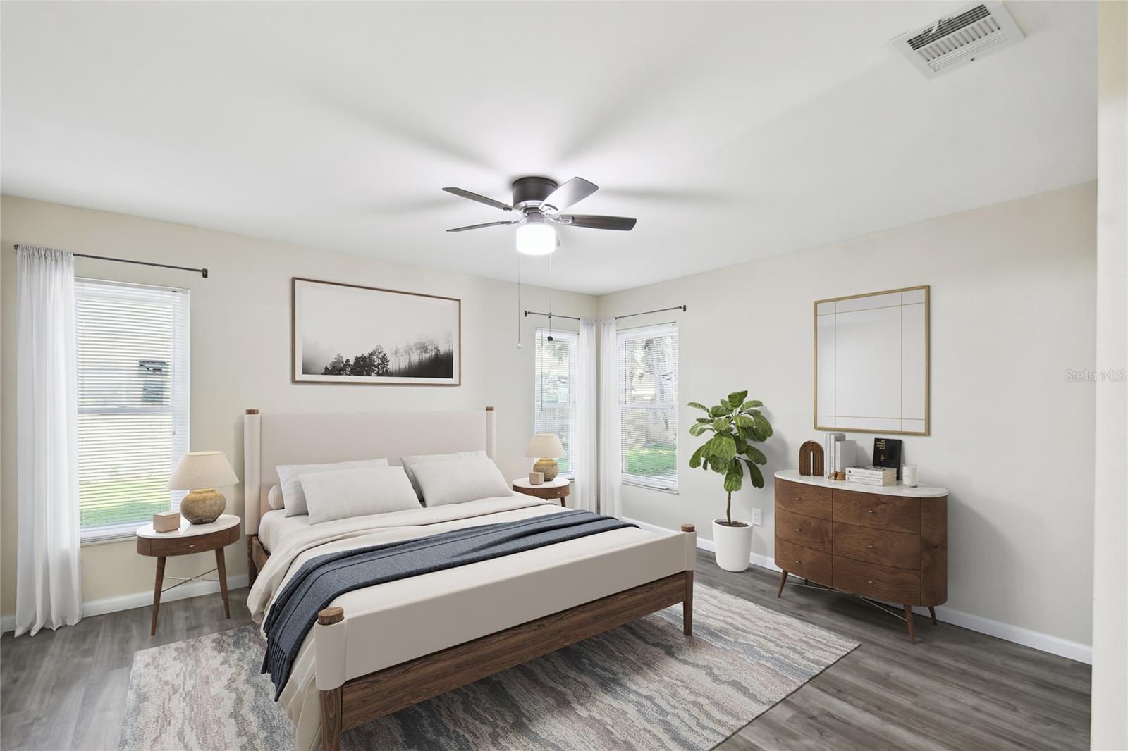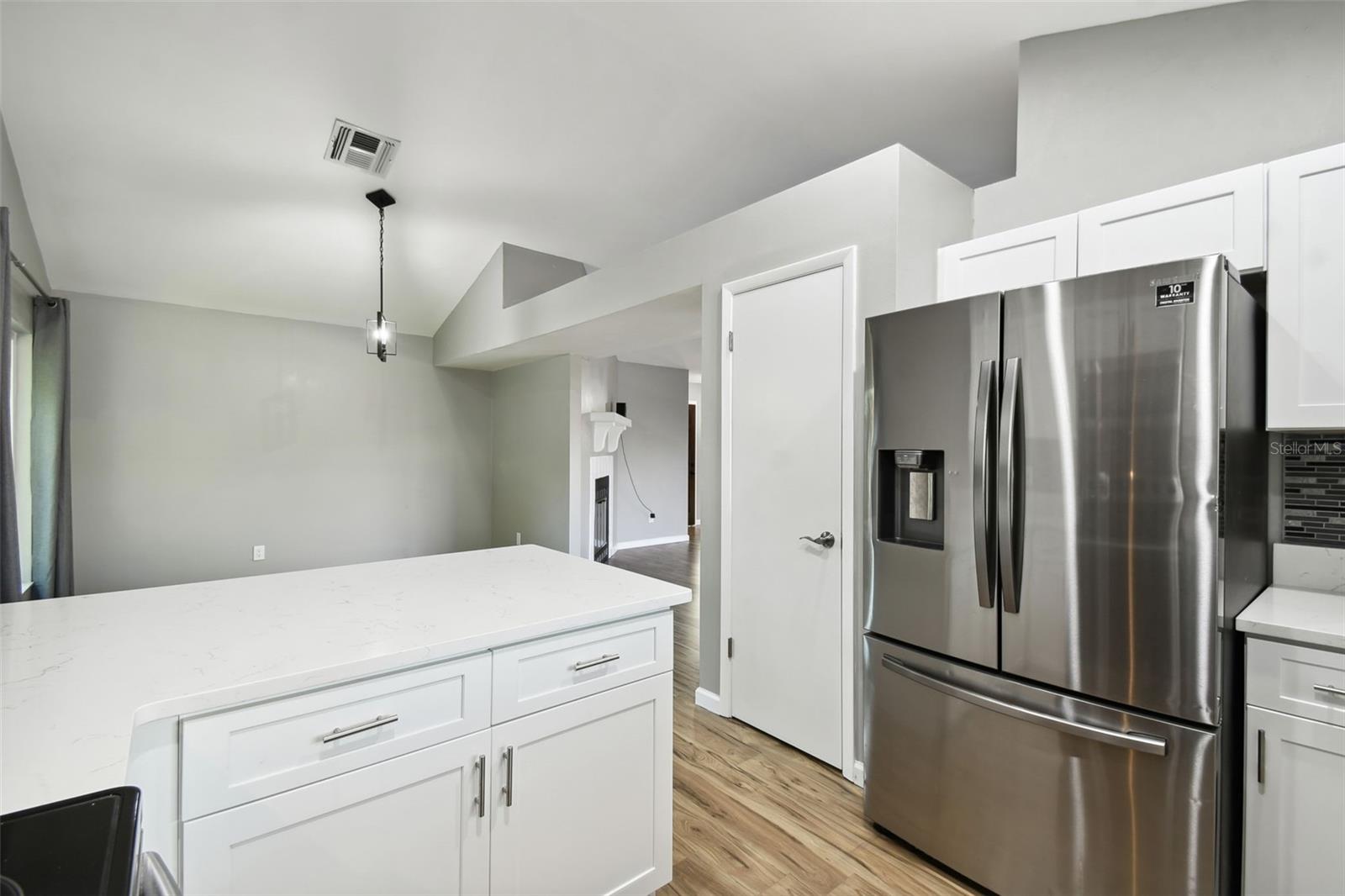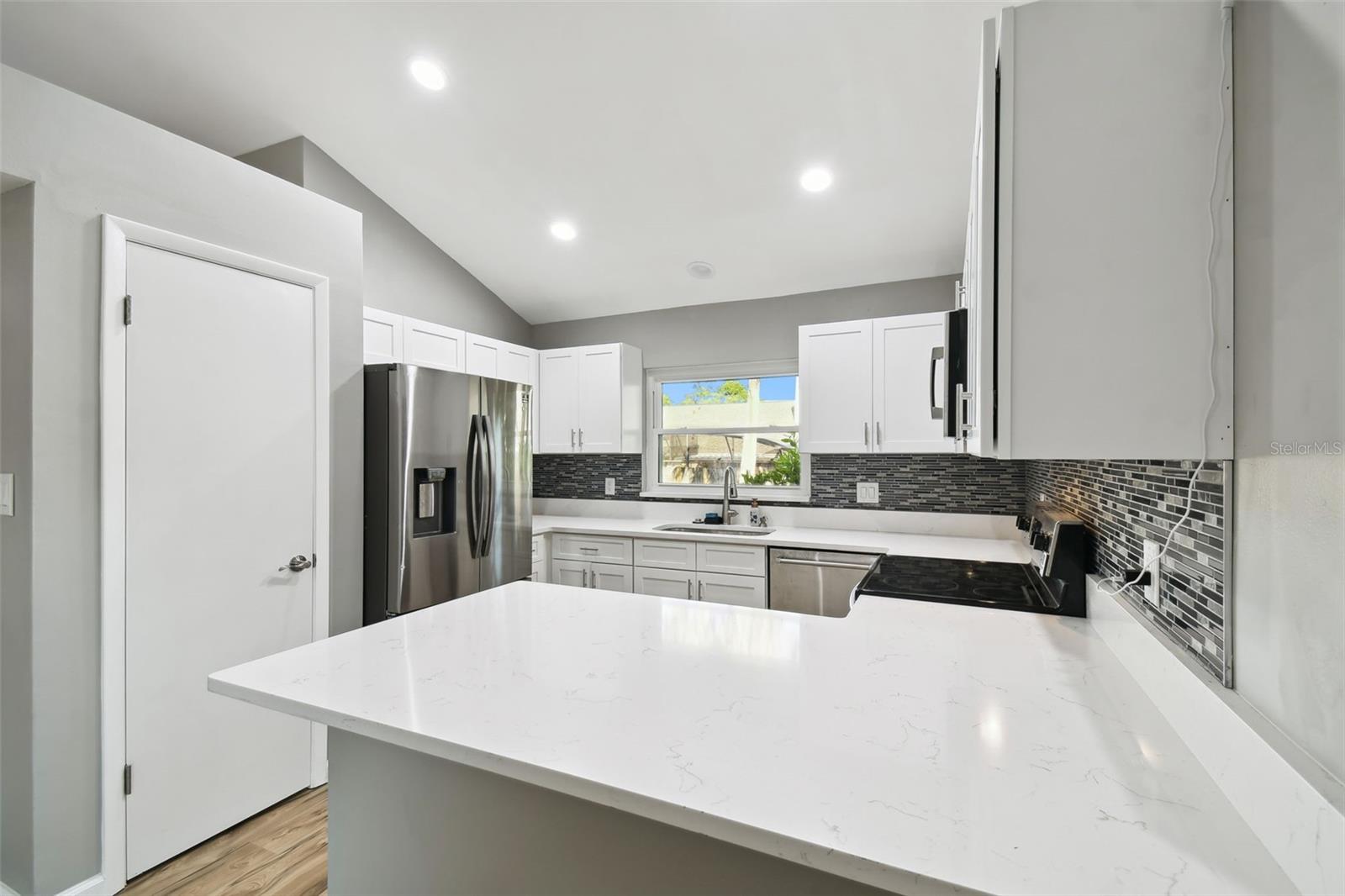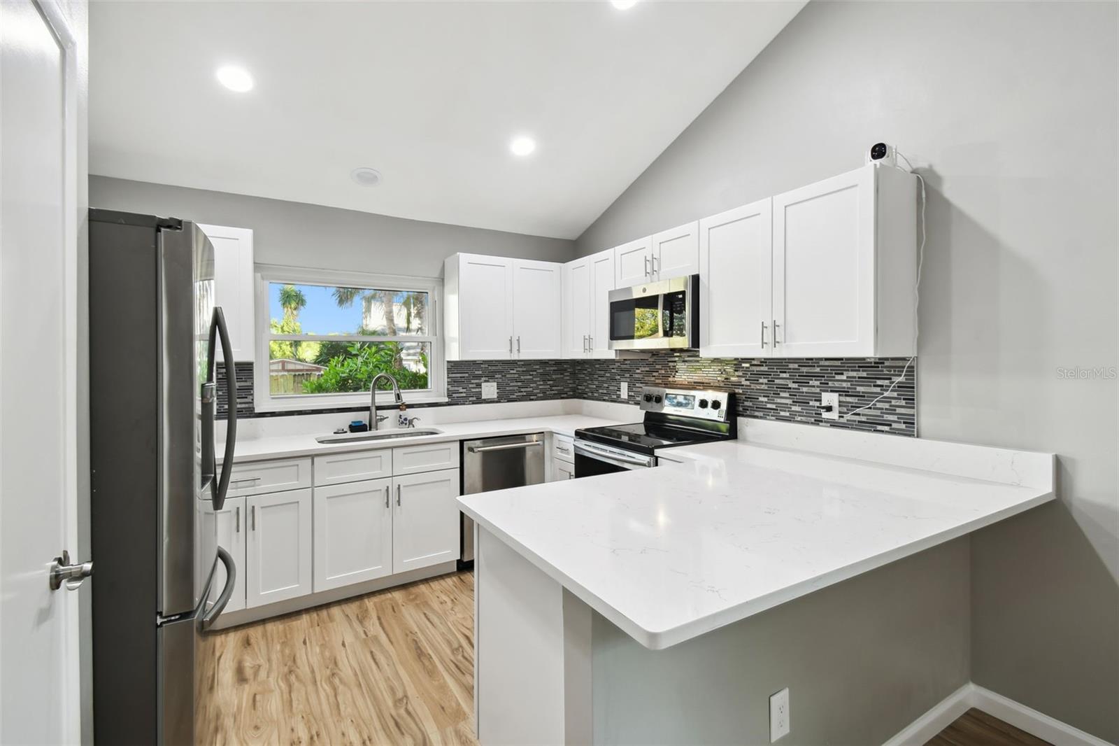 One or more photo(s) has been virtually staged. Welcome home. This beautiful 3 bed 2 bath home sits proudly in the extremely desirable community of Alafaya woods. This community is located in the heart of Oviedo with shopping and entertainment options minutes away. Pulling up to the home you will immediately feel welcomed by the curb appeal and manicured landscaping. Upon entering the front door your drawn forward by exceptional large and open living space. The high vaulted ceilings and direct sight into the kitchen/dining room make this the ideal home for hosting guest and entertaining. The engineered hardwood flooring draws your eyes down while the stark contrast of the bright knock down ceiling pulls you further into the home. As you proceed inside you come to your open living room. This room is spacious yet cozy with the wood burning fireplace. in your direct view is your dining room. The large custom window makes a bright and elegant backdrop for your formal dining room, with plenty of wall space for decor or a buffet cabinet. The dining room and kitchen meet at a lovely counter height bar for holding your thanksgiving spread or hungry guests. This kitchen is truly a perfect renovation and what make this home one of a kind. The solid white cabinetry, soft close doors, newer stainless-steel appliances, pair exquisitely with tile backsplash and quartz countertops. Finishing this kitchen is a large window overlooking your private backyard. Continuing your tour you approach your Primary bedroom. This room has plenty of space for a king bedroom set with room to spare. The Primary bathroom has been renovated with NEW dual vanity sink, NEW mirrors, NEW light fixtures, NEW tile flooring, and NEW modern elongated comfort toilets. The Primary bedroom opens to an on-suit nursery/office. The two guest rooms are large and share a renovated bathroom. Featuring NEW dual vanity sink, NEW mirrors, NEW light fixtures, NEW tile flooring, and NEW modern elongated comfort toilets. Finishing your tour in the backyard you can appreciate the privacy and space this home offers. Plenty of room for a playground, pool, or outdoor entertainment space. Once concluding your tour, we feel you will appreciate the value of community and conveyance delivered with the stunning home. Other upgrades include New Dual-Pane Low-E argon gas injected windows throughout, NEW disposal, NEW microwave, Newer 5" reinforced driveway, New15.3 SEER HVAC, 2023 roof w/ Cool Roof reflective coating!!