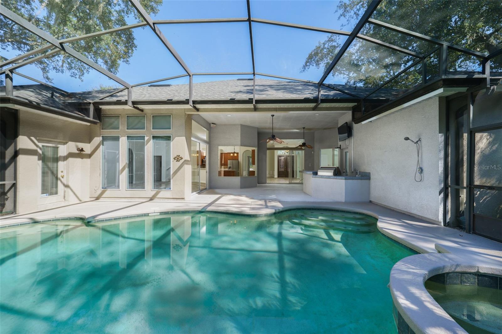 Discover the hidden gem of Cardinal Glen in Oviedo—a tranquil gated community with only two streets and 40 stunning custom homes. Nestled on a quarter-acre lot that backs to a beautiful horse property, this sanctuary away from the hustle and bustle is minutes from major thoroughfares, shopping, and dining. Cardinal Glen fosters a tight-knit community where neighbors connect and enjoy gatherings, like the recent block party filled with food and fun. This beautiful home features a NEW ROOF in 2022! Double doors welcome you and lead to a formal living room with a stunning tray ceiling and pool views. The dining room is showcased by beautiful trim work and a large window filling the home with natural light. The layout includes a primary suite at the back of the home and a second bedroom with its own bath at the front. At the heart of the home, the spacious island kitchen with quartz countertops opens to the family room, complete with a gas fireplace. Two additional bedrooms on the right side of the home share a double vanity bath, and one has an en suite pool bath. Upstairs, a generous bonus space with a full bath can easily serve as a fifth bedroom, theater, or game room. The three-car side-entry garage leads to a laundry room with a utility sink. Step outside to your private oasis, perfect for entertaining! Enjoy the pool, relax in the spa, or gather on the large covered lanai while savoring grilled delights. Don’t miss your chance to make this exceptional home yours today!