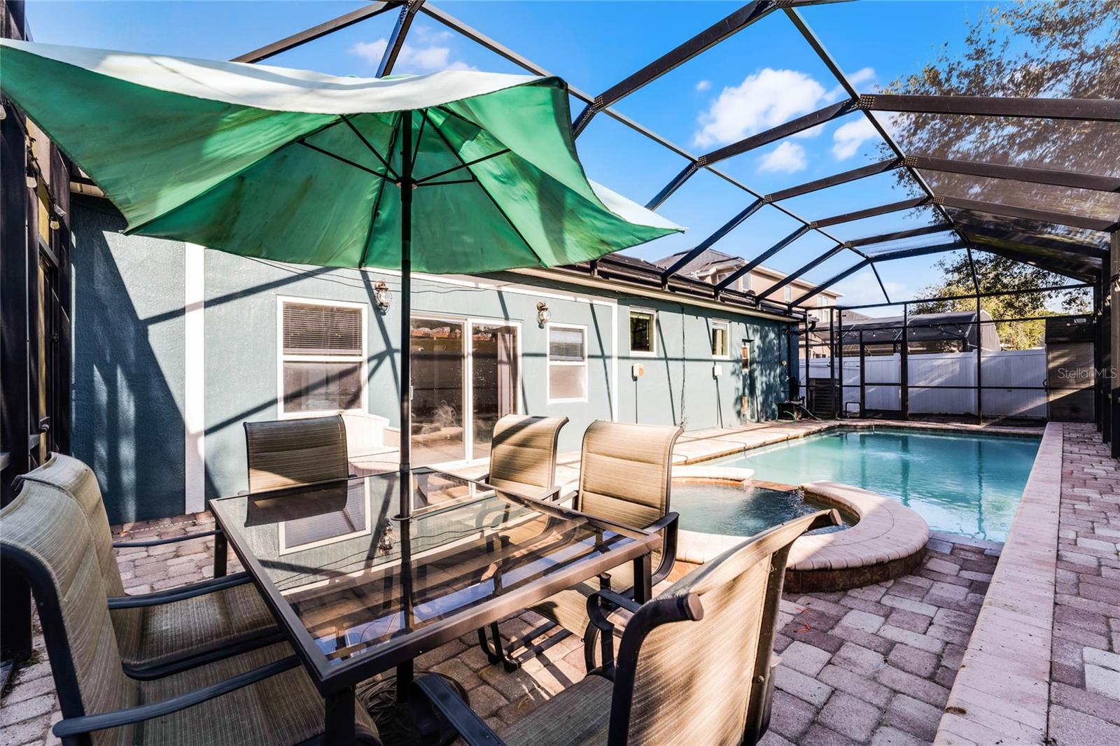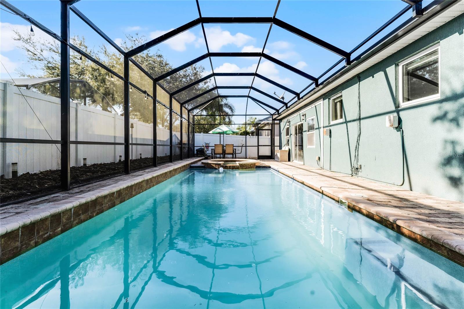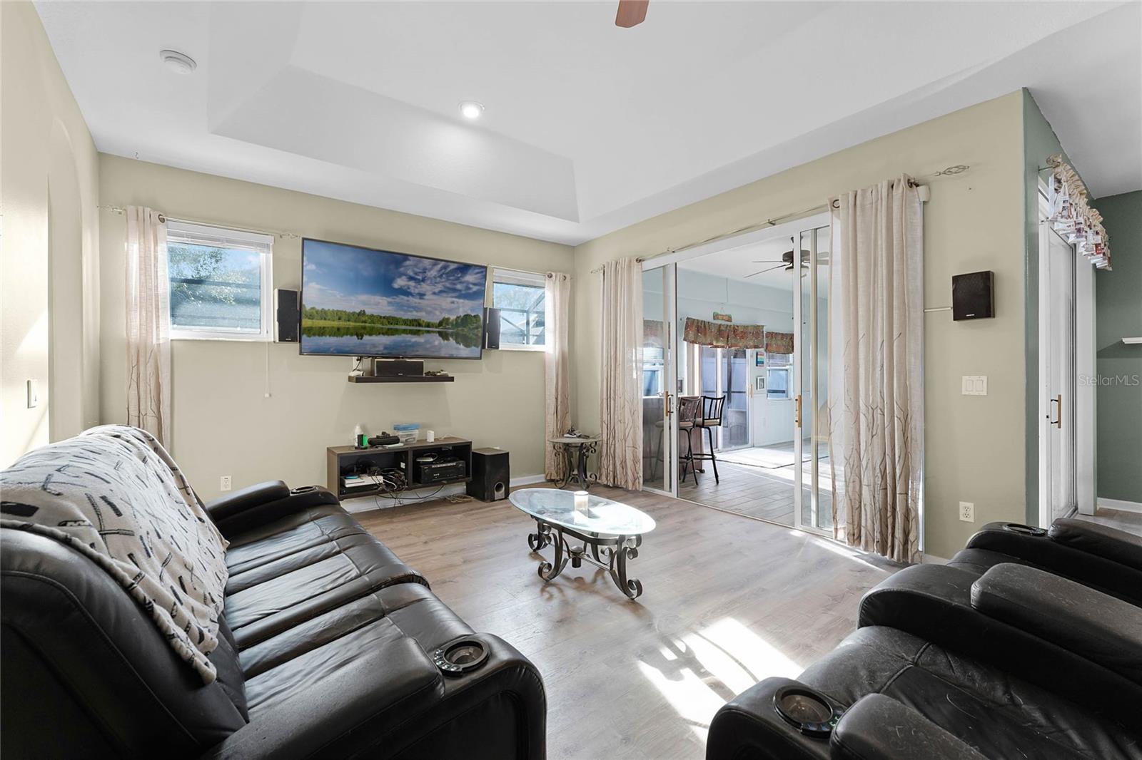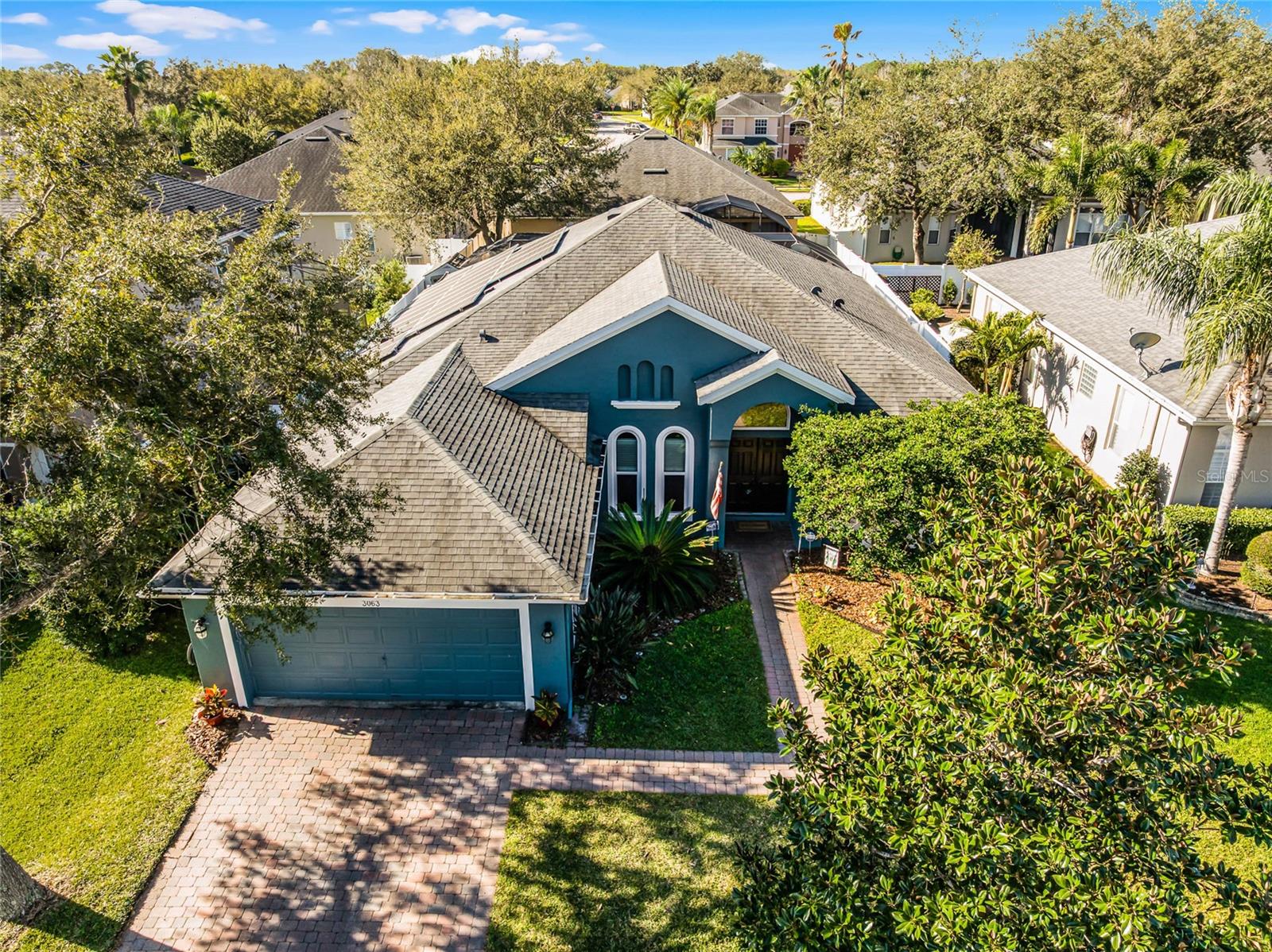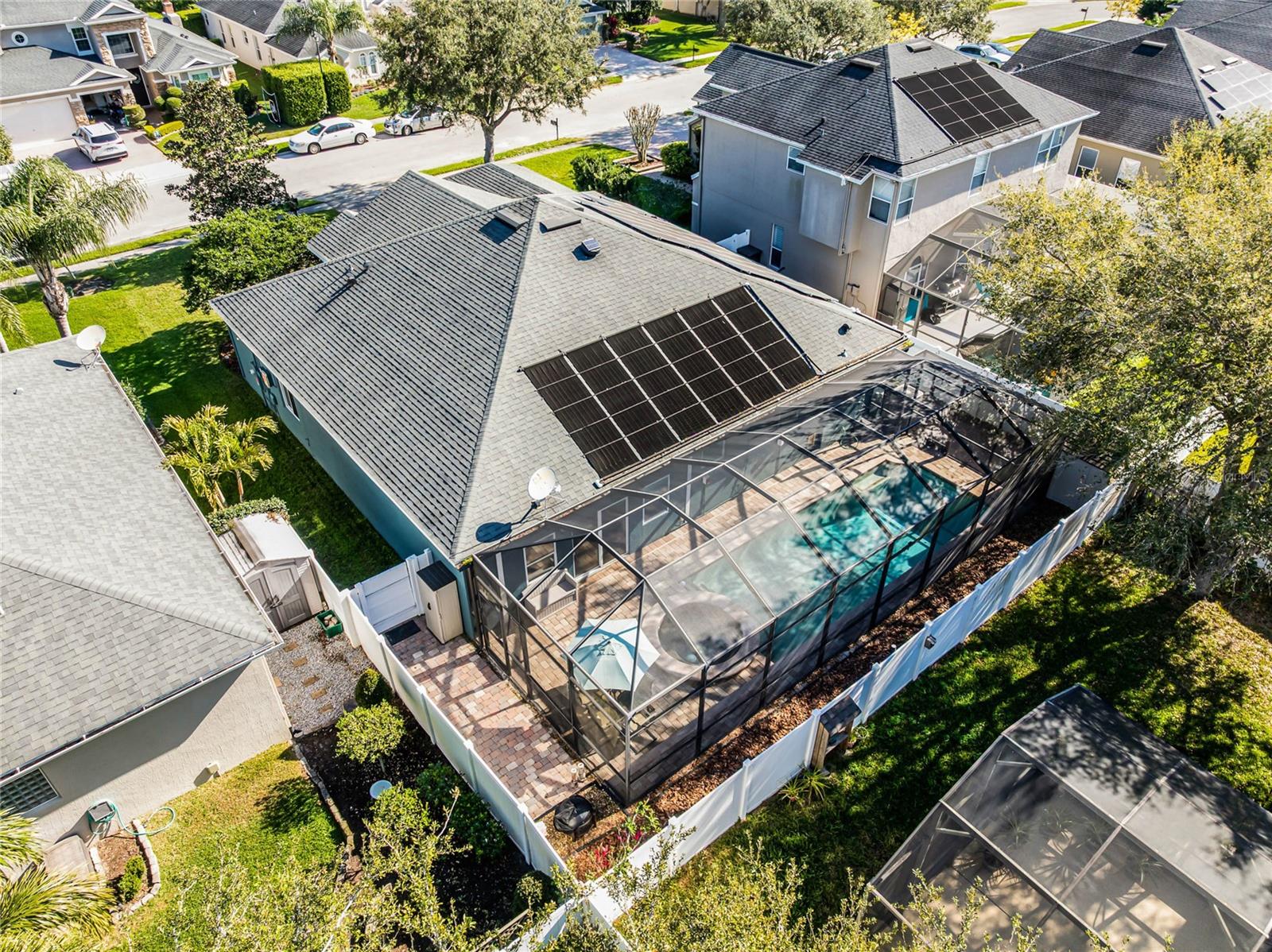 Nestled in the highly sought after community of The Sanctuary, home features FULLY PAID-FOR electrical SOLAR PANELS that will keep your energy costs low and a FULL-HOME GENERATOR for peace of mind during hurricanes. (No leases to assume nor added expense). Other notable upgrades include external WINDOWS REPLACED IN 2023, SMART HOME with Samsung connection ability to the refrigerator, washer and dryer, and ability to lock and unlock the doors and open and close the garage, UPGRADED FLOORING, and TESLA CAR BATTERY CHARGER in the garage. This home features four bedrooms, three bathrooms, and is ready to welcome a new family. Walk through the front door into a spacious, OPEN FLOORPLAN home. Directly to the left of the front door is your formal dining room with large, front-facing window and kitchen access. To the right of the front door is your formal living space that has been converted to an office with French doors for privacy. The foyer opens into the heart of the home – a combination kitchen and family room. With the proximity of these rooms to each other and the openness, this space is ideal for entertaining and large family gatherings. The kitchen has been refreshed with light gray, 42-inch cabinetry, Corian countertops, and NEW SAMSUNG APPLIANCES and is complete with a large closet pantry, dinette, and peninsula/breakfast bar combo. Sliding doors in the dinette and family room open to a large Florida room, extending your living space even further! The home has a TRIPLE-SPLIT FLOORPLAN, allowing for privacy for all members of the family and guests. The master suite is located off the right side of the home and also offers sliding door access to the Florida room and double closets. The en-suite bathroom is complete with his-and-hers vanities, a large shower, and water closet. Two secondary bedrooms and a secondary bathroom are located down the hallway off the front left of the home. Both bedrooms are good size and the secondary bathroom is complete with a single-sink vanity and shower/tub combo. A single bedroom and bathroom are located at the back left of the home, great for MULTI-GENERATIONAL living or guests that are visiting. Outside, you’ll find mature landscaping and FRESH EXTERIOR paint. Out back, your large, HEATED POOL and SPA are surrounded by paver deck, which is great for lounging in the sun or family barbecues. All of this is under SCREEN ENCLOSURE and overlooks a FULLY FENCED backyard that is perfect for letting your pets and little ones run around without worry. The sellers are moving due to a job relovation and will be sad to leave the community that boasts tons of amenities, including COMMUNITY POOL with splash pad, CLUBHOUSE, fitness center, TENNIS and BASKETBALL courts, and playground!