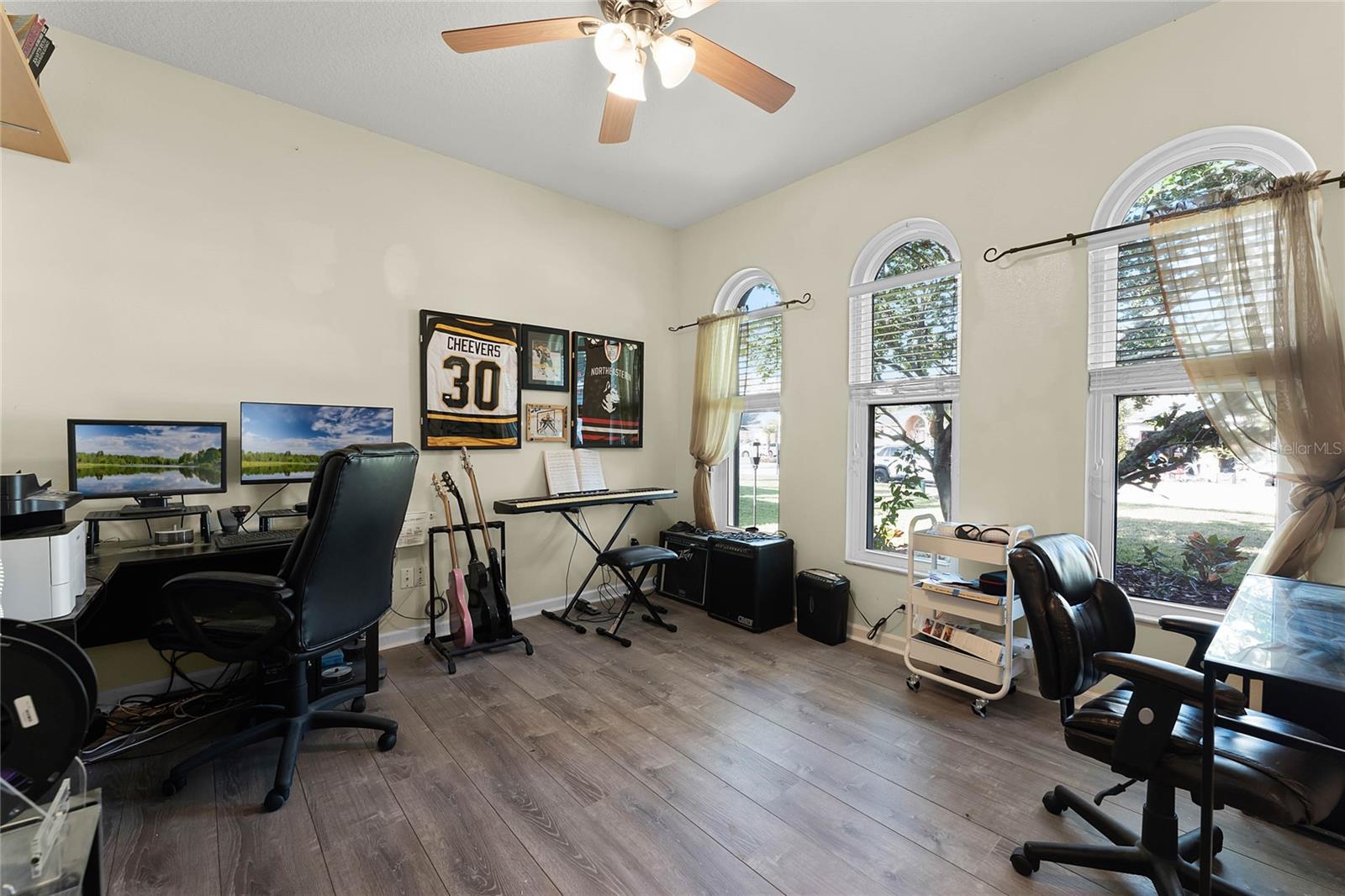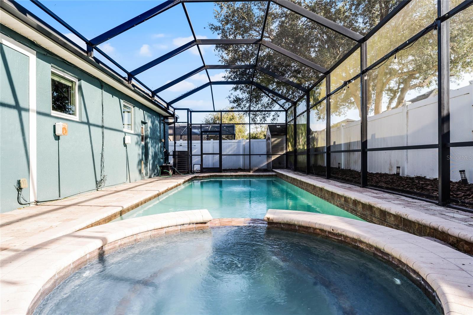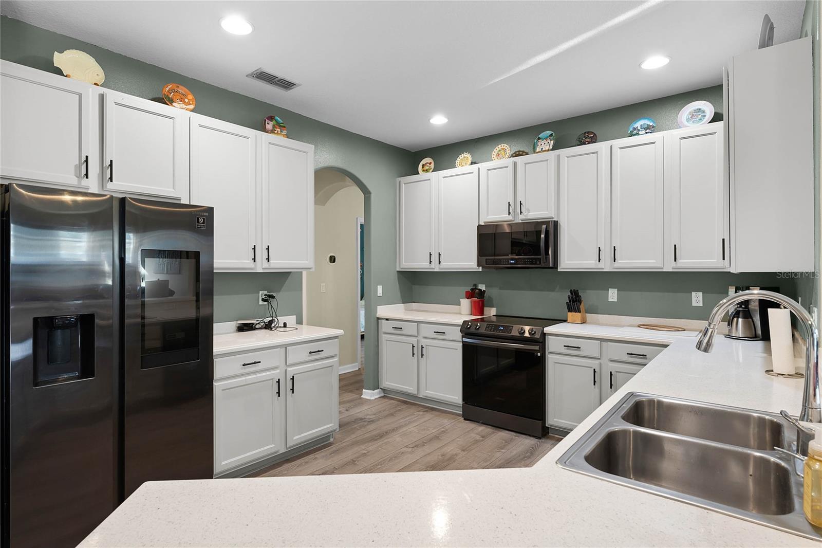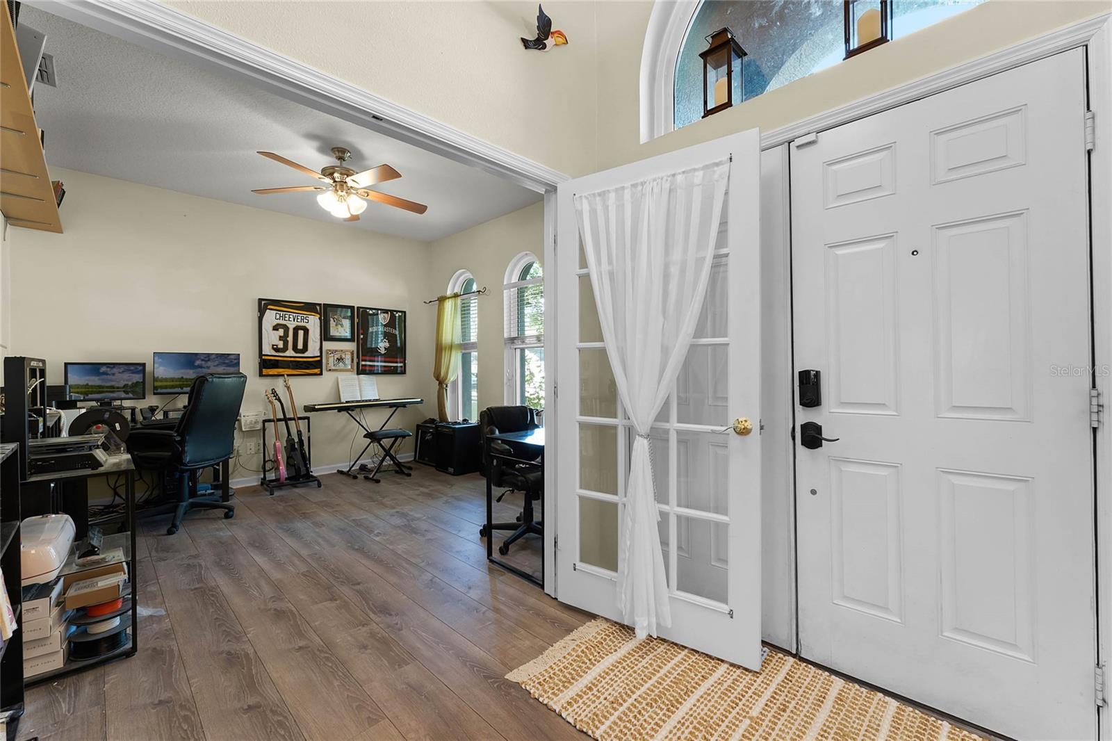 Nestled in the highly sought after community of The Sanctuary, home features FULLY PAID-FOR electrical SOLAR PANELS that will keep your energy costs low and a FULL-HOME GENERATOR for peace of mind during hurricanes. (No leases to assume nor added expense). Other notable upgrades include external WINDOWS REPLACED IN 2023, SMART HOME with Samsung connection ability to the refrigerator, washer and dryer, and ability to lock and unlock the doors and open and close the garage, UPGRADED FLOORING, and TESLA CAR BATTERY CHARGER in the garage. This home features four bedrooms, three bathrooms, and is ready to welcome a new family. Walk through the front door into a spacious, OPEN FLOORPLAN home. Directly to the left of the front door is your formal dining room with large, front-facing window and kitchen access. To the right of the front door is your formal living space that has been converted to an office with French doors for privacy. The foyer opens into the heart of the home – a combination kitchen and family room. With the proximity of these rooms to each other and the openness, this space is ideal for entertaining and large family gatherings. The kitchen has been refreshed with light gray, 42-inch cabinetry, Corian countertops, and NEW SAMSUNG APPLIANCES and is complete with a large closet pantry, dinette, and peninsula/breakfast bar combo. Sliding doors in the dinette and family room open to a large Florida room, extending your living space even further! The home has a TRIPLE-SPLIT FLOORPLAN, allowing for privacy for all members of the family and guests. The master suite is located off the right side of the home and also offers sliding door access to the Florida room and double closets. The en-suite bathroom is complete with his-and-hers vanities, a large shower, and water closet. Two secondary bedrooms and a secondary bathroom are located down the hallway off the front left of the home. Both bedrooms are good size and the secondary bathroom is complete with a single-sink vanity and shower/tub combo. A single bedroom and bathroom are located at the back left of the home, great for MULTI-GENERATIONAL living or guests that are visiting. Outside, you’ll find mature landscaping and FRESH EXTERIOR paint. Out back, your large, HEATED POOL and SPA are surrounded by paver deck, which is great for lounging in the sun or family barbecues. All of this is under SCREEN ENCLOSURE and overlooks a FULLY FENCED backyard that is perfect for letting your pets and little ones run around without worry. The sellers are moving due to a job relovation and will be sad to leave the community that boasts tons of amenities, including COMMUNITY POOL with splash pad, CLUBHOUSE, fitness center, TENNIS and BASKETBALL courts, and playground!