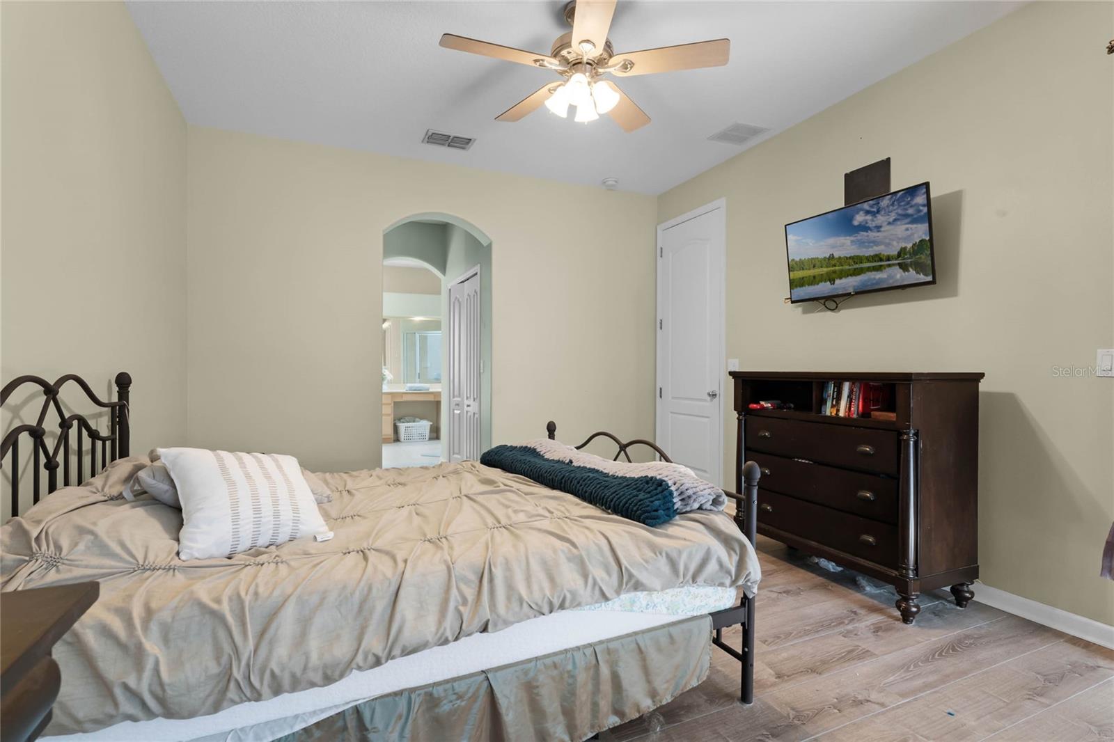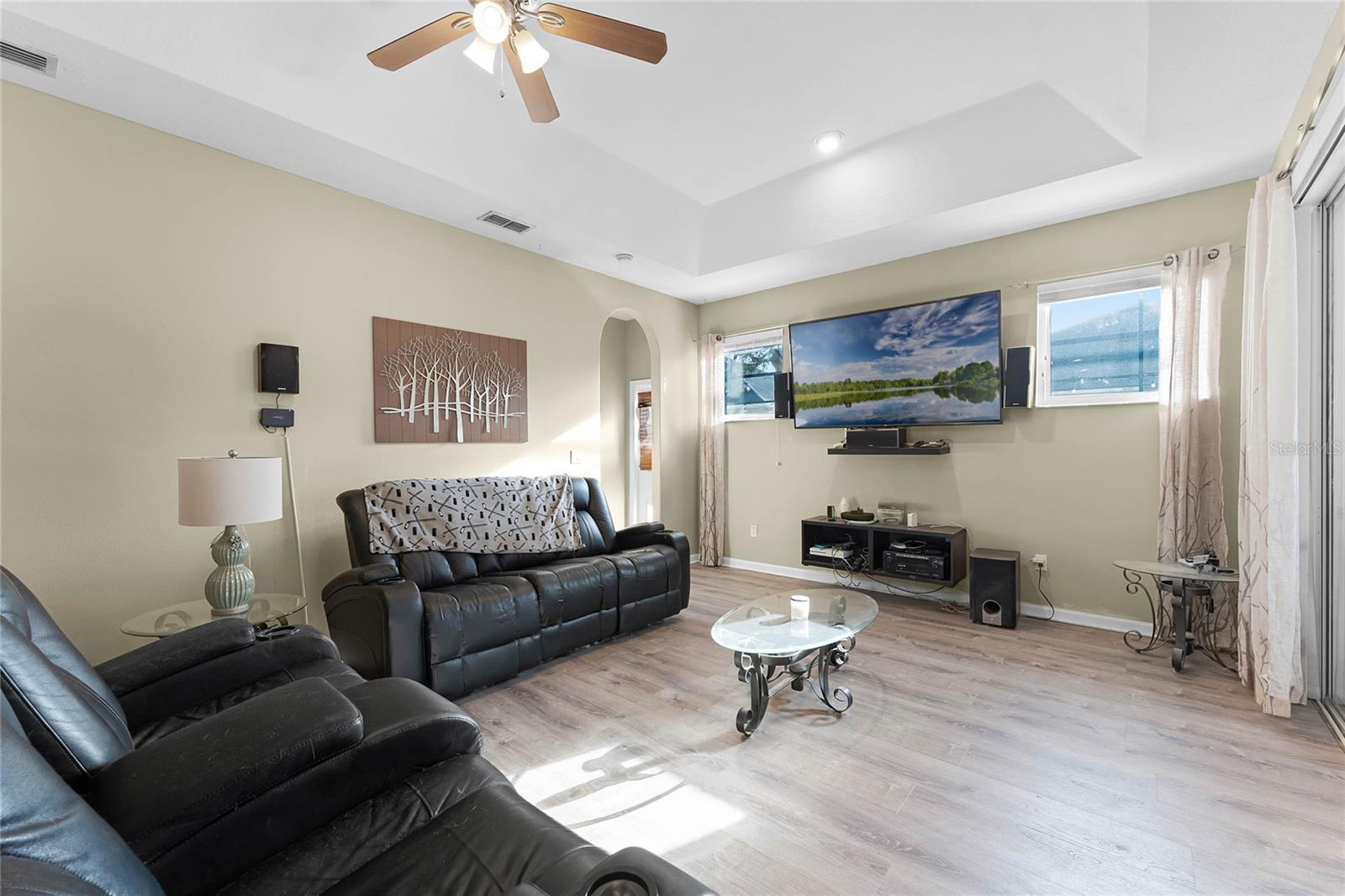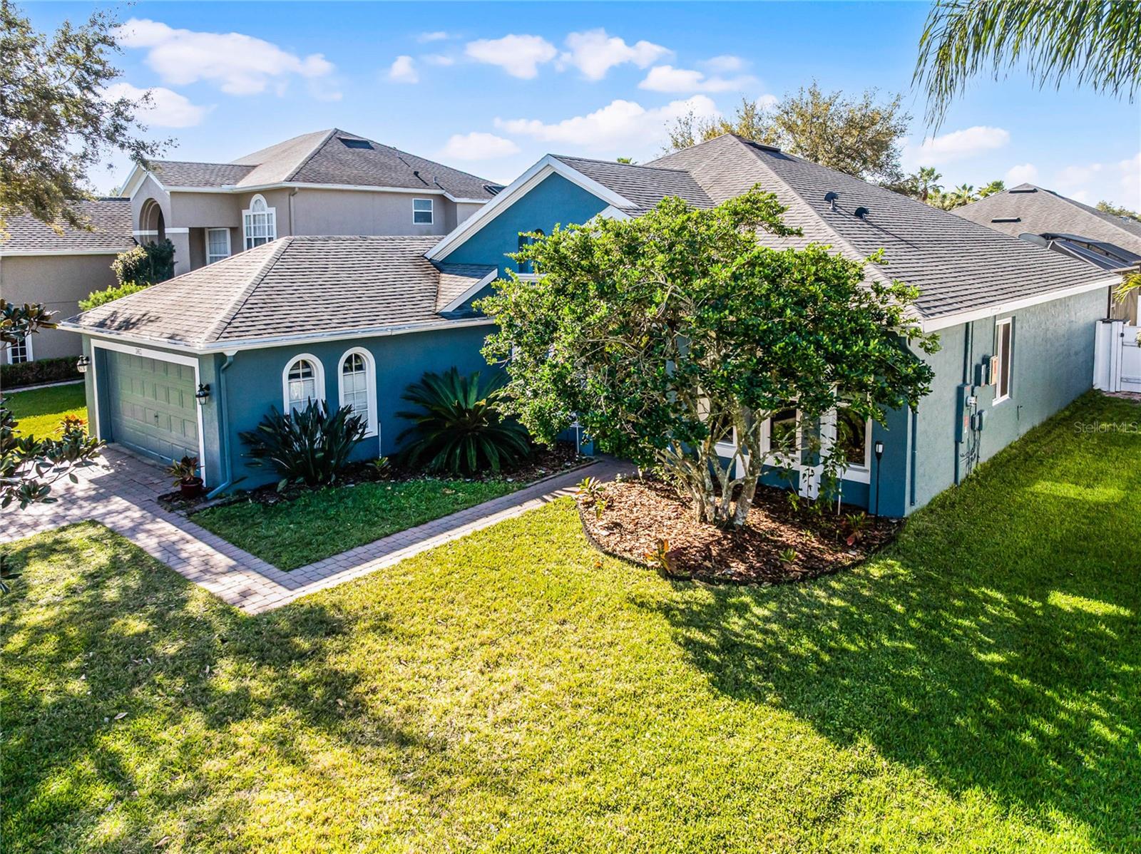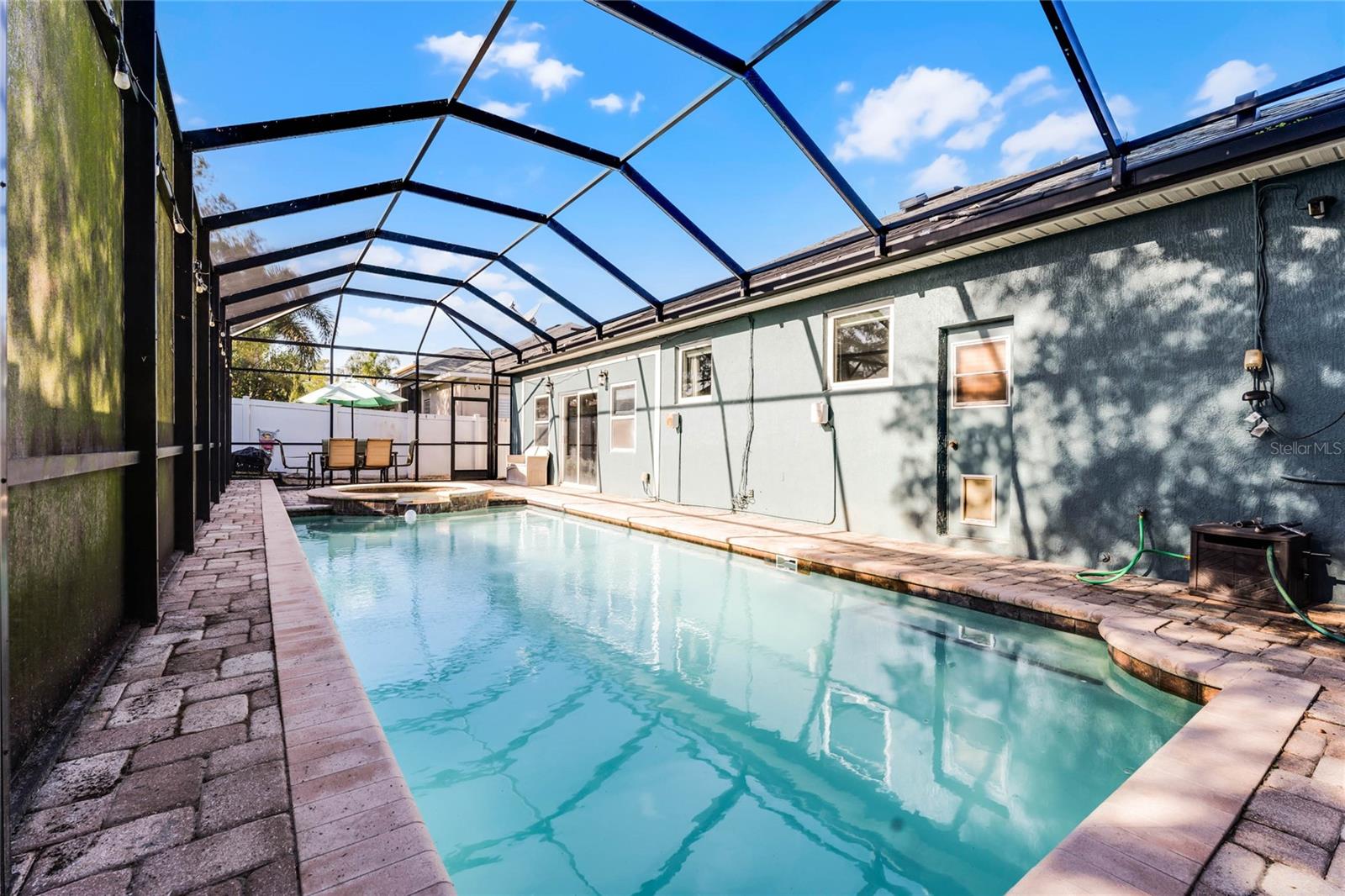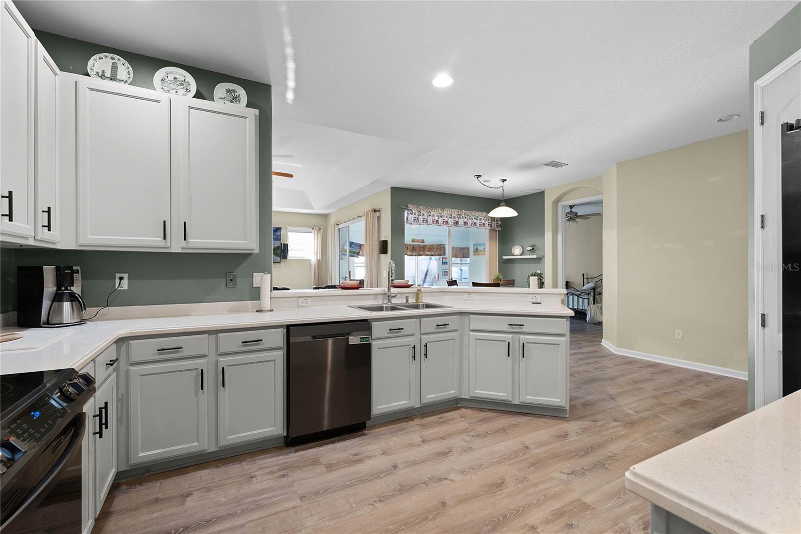 Nestled in the highly sought after community of The Sanctuary, home features FULLY PAID-FOR electrical SOLAR PANELS that will keep your energy costs low and a FULL-HOME GENERATOR for peace of mind during hurricanes. (No leases to assume nor added expense). Other notable upgrades include external WINDOWS REPLACED IN 2023, SMART HOME with Samsung connection ability to the refrigerator, washer and dryer, and ability to lock and unlock the doors and open and close the garage, UPGRADED FLOORING, and TESLA CAR BATTERY CHARGER in the garage. This home features four bedrooms, three bathrooms, and is ready to welcome a new family. Walk through the front door into a spacious, OPEN FLOORPLAN home. Directly to the left of the front door is your formal dining room with large, front-facing window and kitchen access. To the right of the front door is your formal living space that has been converted to an office with French doors for privacy. The foyer opens into the heart of the home – a combination kitchen and family room. With the proximity of these rooms to each other and the openness, this space is ideal for entertaining and large family gatherings. The kitchen has been refreshed with light gray, 42-inch cabinetry, Corian countertops, and NEW SAMSUNG APPLIANCES and is complete with a large closet pantry, dinette, and peninsula/breakfast bar combo. Sliding doors in the dinette and family room open to a large Florida room, extending your living space even further! The home has a TRIPLE-SPLIT FLOORPLAN, allowing for privacy for all members of the family and guests. The master suite is located off the right side of the home and also offers sliding door access to the Florida room and double closets. The en-suite bathroom is complete with his-and-hers vanities, a large shower, and water closet. Two secondary bedrooms and a secondary bathroom are located down the hallway off the front left of the home. Both bedrooms are good size and the secondary bathroom is complete with a single-sink vanity and shower/tub combo. A single bedroom and bathroom are located at the back left of the home, great for MULTI-GENERATIONAL living or guests that are visiting. Outside, you’ll find mature landscaping and FRESH EXTERIOR paint. Out back, your large, HEATED POOL and SPA are surrounded by paver deck, which is great for lounging in the sun or family barbecues. All of this is under SCREEN ENCLOSURE and overlooks a FULLY FENCED backyard that is perfect for letting your pets and little ones run around without worry. The sellers are moving due to a job relovation and will be sad to leave the community that boasts tons of amenities, including COMMUNITY POOL with splash pad, CLUBHOUSE, fitness center, TENNIS and BASKETBALL courts, and playground!