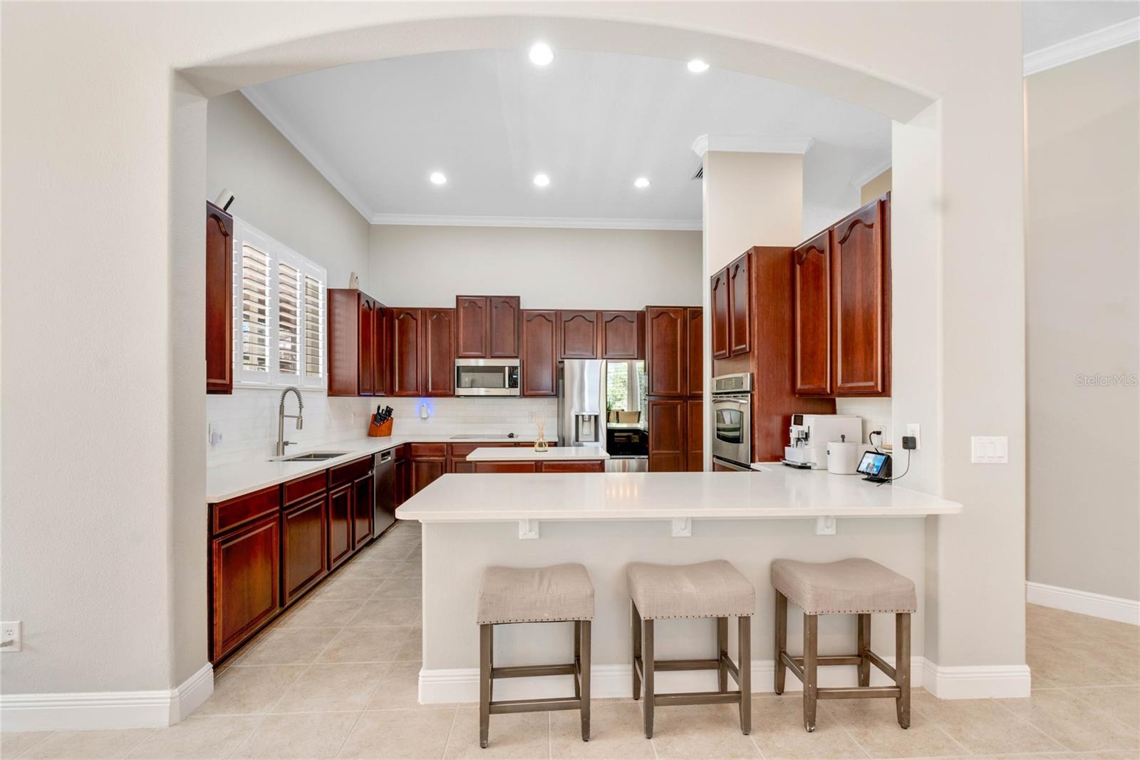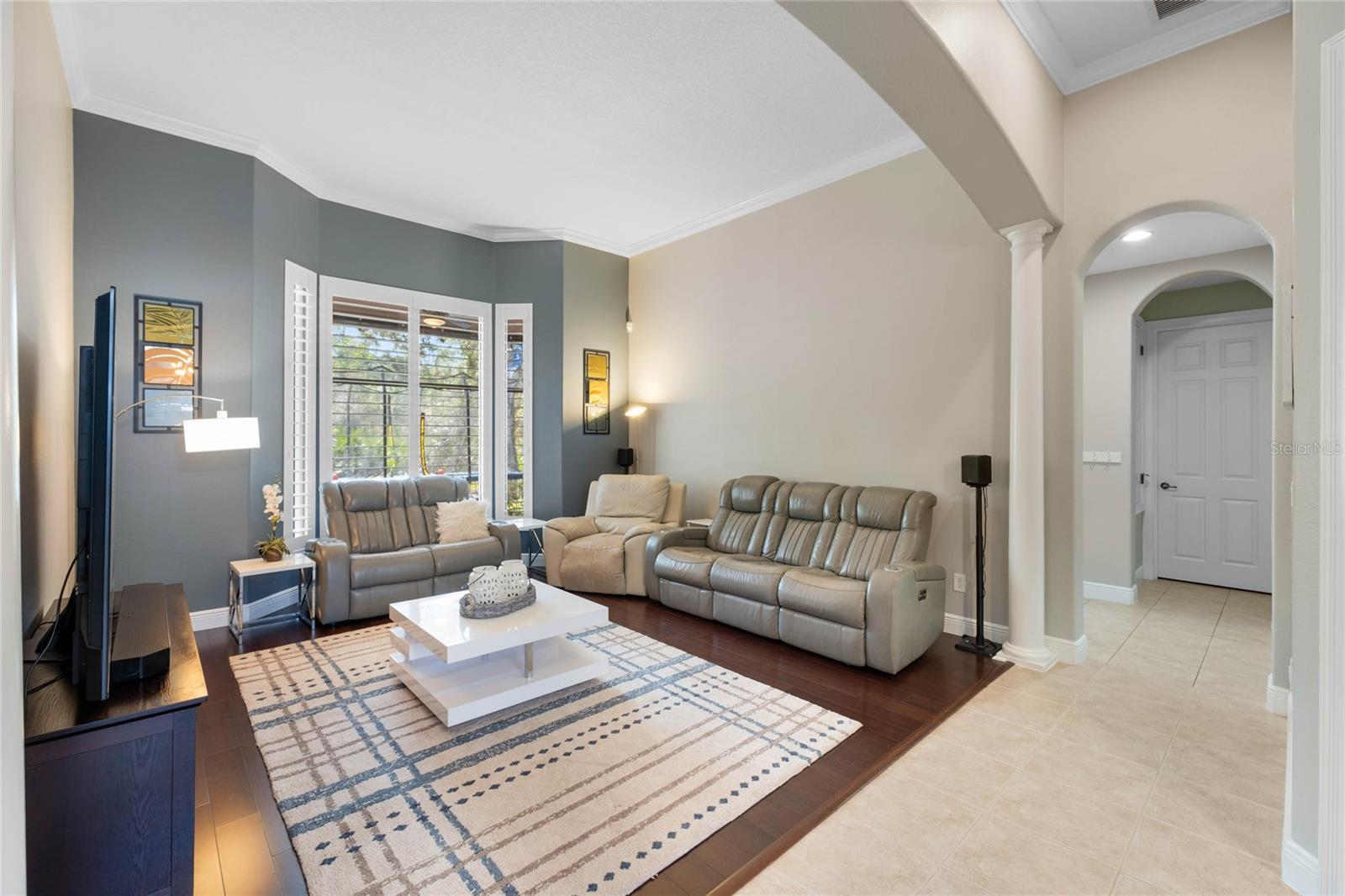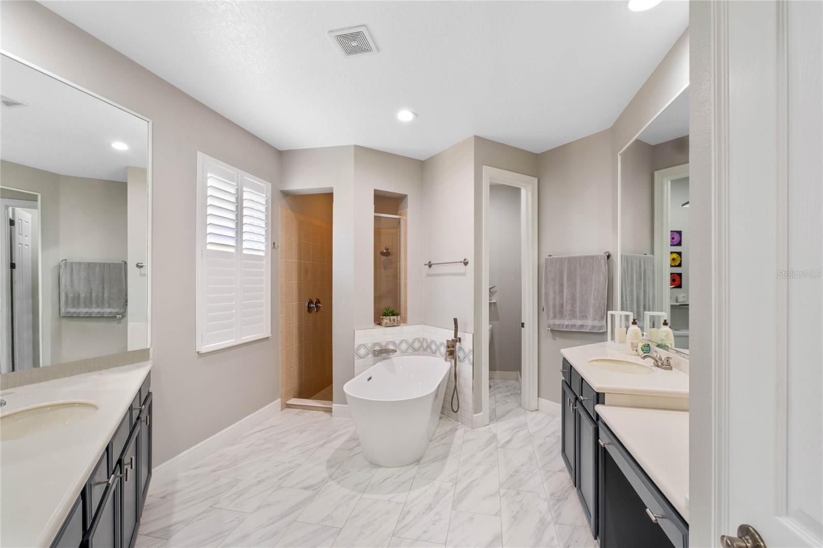 BEAUTIFUL BREEZES AND EXCEPTIONAL VIEWS IN THIS STUNNING "MAYFAIR" MODEL HOME LOVINGLY MAINTAINED ON A CONSERVATION LOT! An oversized brick paver driveway and walkways with pretty landscaping welcome you to your new chapter of serenity. There’s plenty of space to enjoy everyday living & entertaining in this open & generously sized 4 bedroom, 3 bath with an office/study and a 3 car garage offering 3,096 sq. ft. of elegant finishes. A brand new and magnificent kitchen delivers function & good looks with quartz counter tops, a large kitchen island made easy for the entertainer, a convenient breakfast bar, custom sink and upgraded lighting, a new LG Refrigerator including a speciality ice maker, a new Bosch Benchmark microwave and Bosch dishwasher, impressive 42” cabinetry with crown moldings and a marble backsplash, plenty of pantry space and a nicely sized eat in nook. The family room opens to the kitchen and is light and bright due to the windows overlooking the large backyard and conservation area allowing natural light in and creating a cozy atmosphere. The outdoor porch is screened with retractable screens (2024)- all yours to enjoy privately or with a crowd. Thoughtfully set far from the busy family area, you'll enter a spacious master suite through double doors with a large sitting area, a walk in closet and an impressive bathroom complete and newly renovated with a custom backsplash and flooring(2023), dual sinks & best of all, an oversized Clawfoot tub for luxuriating soaks. In addition this home offers three nicely sized bedrooms with an office and ensures ample personal space for everyone to work, play & rest. A simply stunning home built with the most exquisite luxuries. Additional extras to include; New roof (2019), New Tailwind Smart garage doors, New exterior doors (front and side entry-2019), New floors with Engineered Wood (2019), Plantation Shutters throughout (2019), New toilets (2019), New Rheem master suite AC (2019), New gutters (2019), New fire alarms (2019), Updated security system with contacts on every window and door (2019), New Samsung washer and dryer, New Smart Rheem water heater (2019), Full interior and exterior painting (2019), Crown molding added throughout (2019), New lighting fixtures and ceiling fans (2023), French drains added along both sides of home and driveway (2022), Tesla charging station installed (2022), New Daikin main AC with UV lighting and Smart safety switching and new drainage line (2023), Paver driveway and patio cleaned and sealed (2024), plenty of storage, impressive volume ceilings, plant shelves, tray ceilings and ceramic tile in all traffic areas. Cherry on Top features to include; Smart Home upgrades with Kasa switches, Hue lighting bulbs, an Ecobee thermostat, Rachio irrigation, doorbell and door locks! Conveniently located in the Sanctuary in a fabulous community with an oversized swimming pool, splash pad, fitness center, basketball courts and pickleball. Imagine ending your day watching the sun set over the glistening water and seeing beautiful wildlife. See this beautiful, move-in ready, model home & enjoy Florida style living at its best!